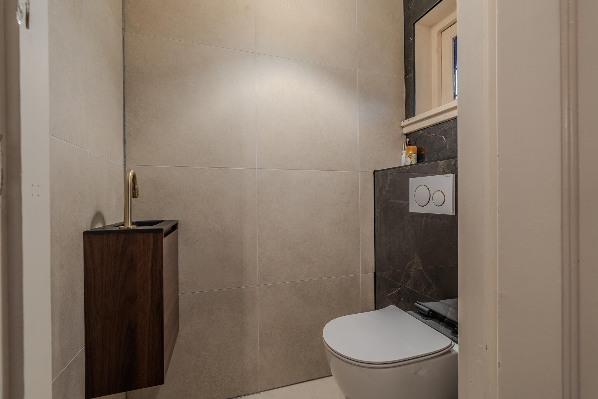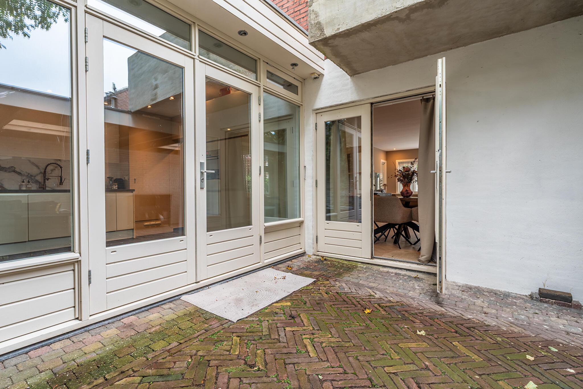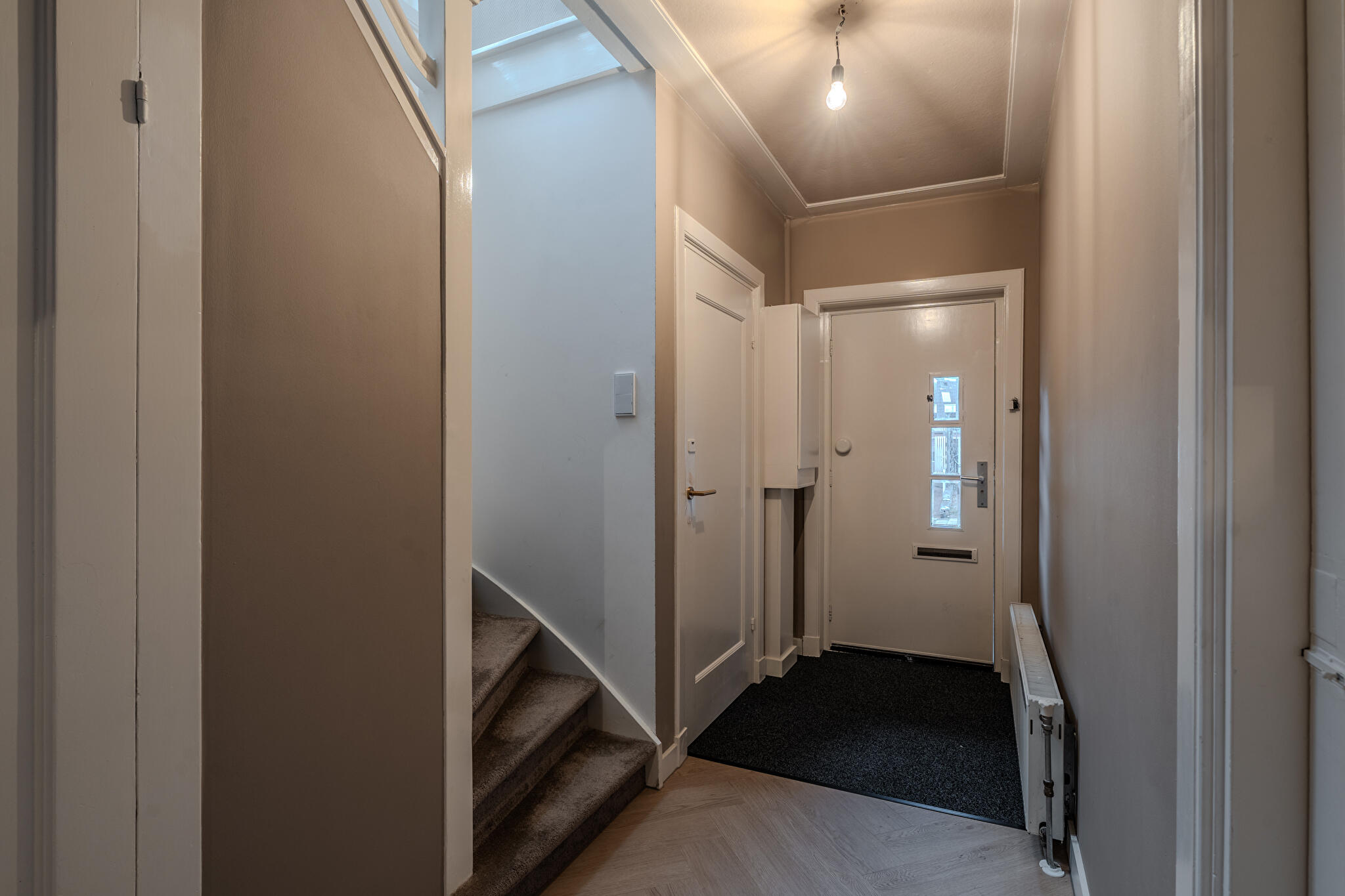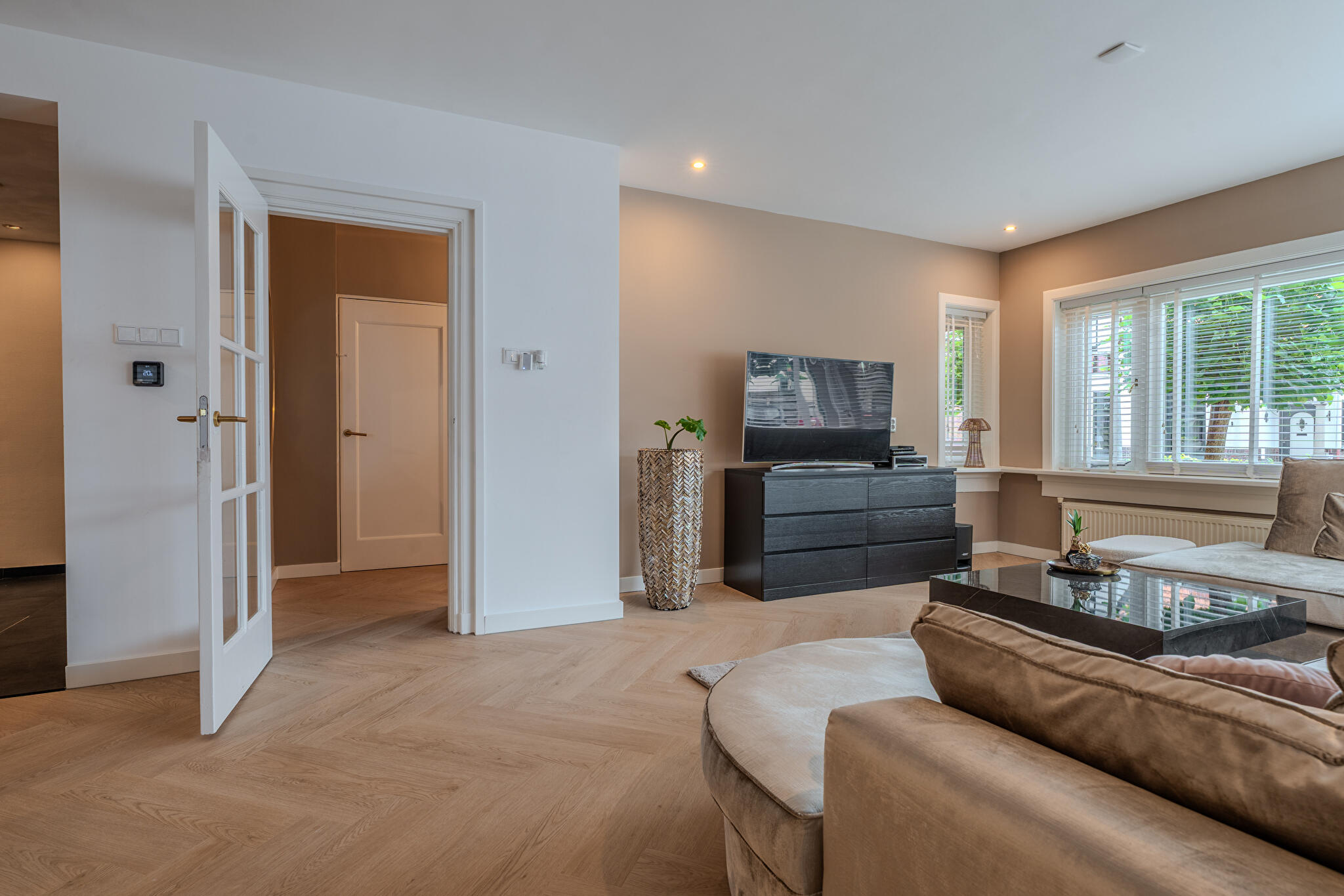 Begane grond: overdekt entree aan voorzijde van de woning, ruime hal, kelder en trapopgang naar de verdieping voorzien van karakteristieke glas-in-loodramen die zorgen voor veel sfeer en lichtinval. Moderne toiletruimte voorzien van wandcloset en fonteintje, royale, sfeervolle woonkamer voorzien van airconditioning en openslaande deuren, moderne hoekopgestelde (woon) keuken voorzien van diverse inbouwapparatuur en openslaande deuren die direct toegang geven tot de tuin met overkapping.