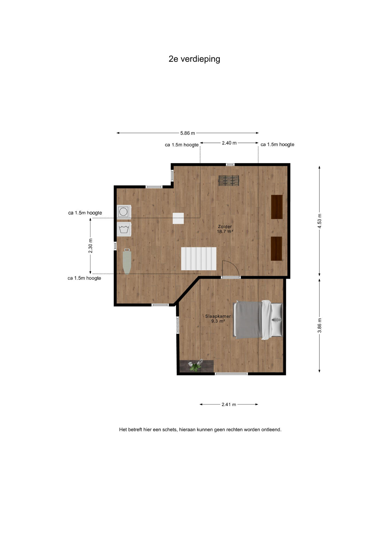 Tweede verdieping: via vaste trap bereikbaar, ruime verdieping met vierde slaapkamer, aansluitingen voor witgoed en volop extra bergruimte en dakramen.