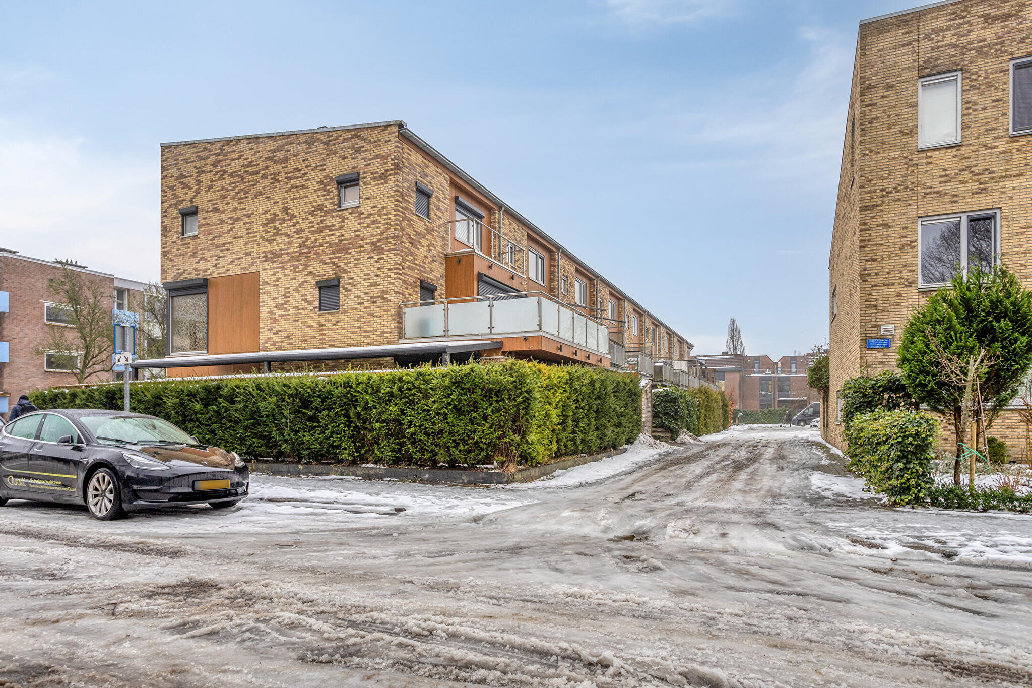 Aan de achterzijde van de woning bevindt zich de inpandige garage, bereikbaar via een royale oprit en een praktische carport en eigen parkeerplaats (extra parkeerplaatsen op het besloten binnenplein). Voor gezinnen met kinderen is er een speelveld op het binnenterrein, waar de kleintjes veilig kunnen spelen en genieten van hun eigen buitenruimte.