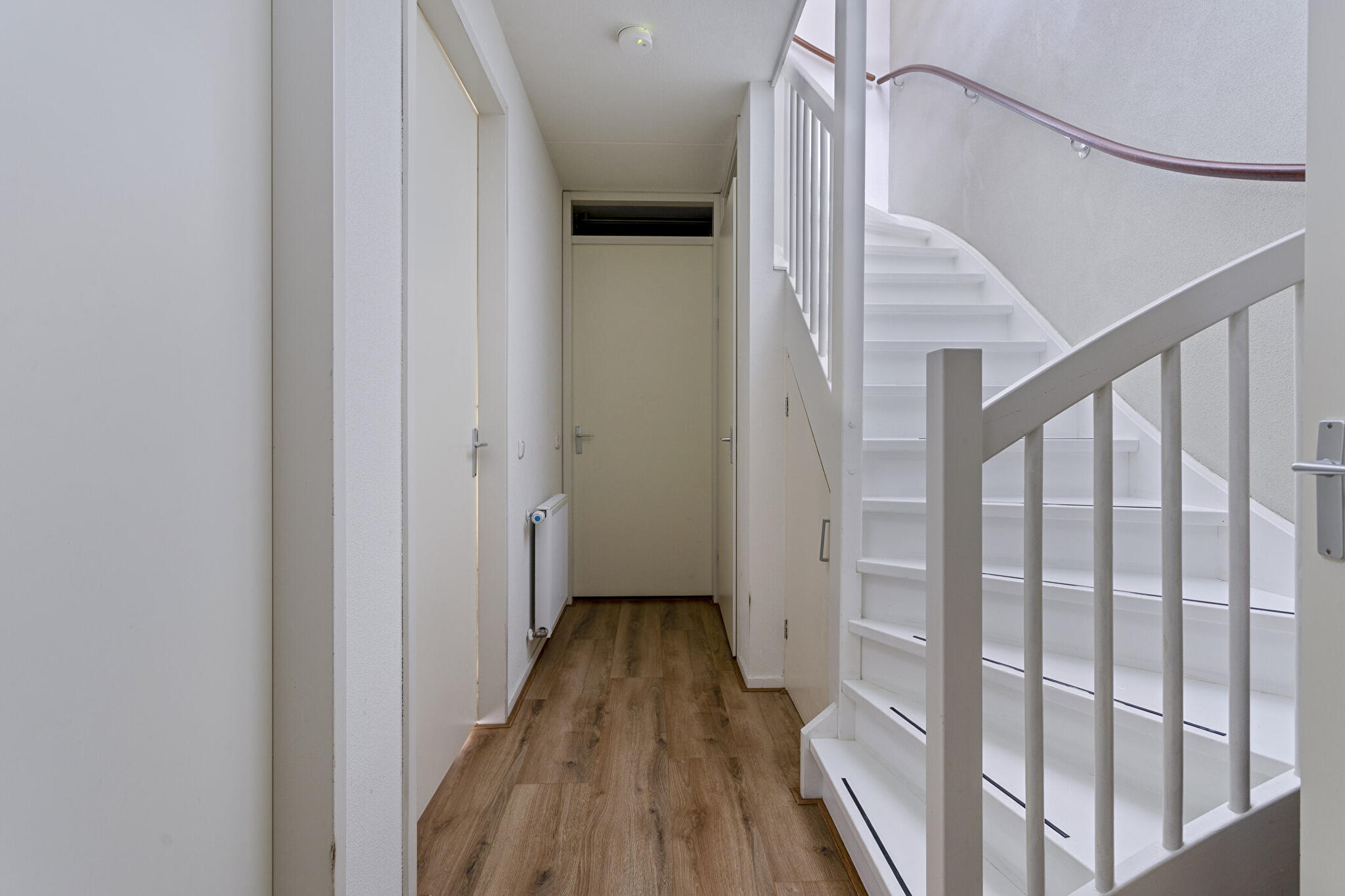 Begane grond: entree/hal, meterkast en trapopgang naar de verdieping, toiletruimte voorzien van wandcloset en fonteintje, bijkeuken met witgoedaansluiting, slaap-/ werkkamer en inpandige garage.