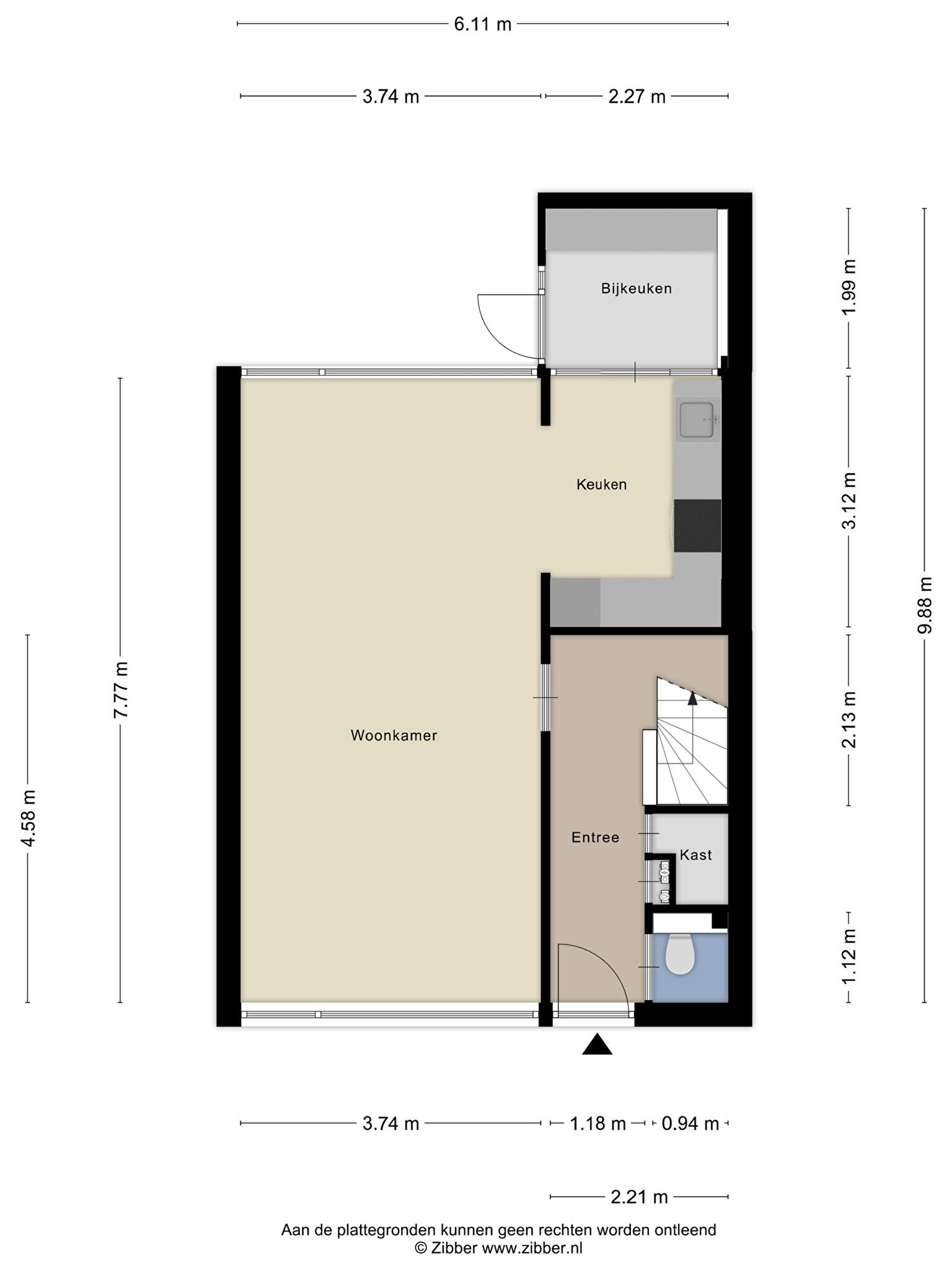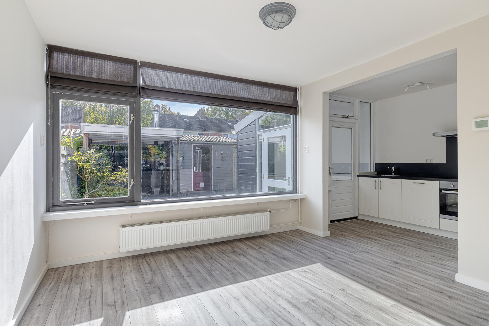 Begane grond: ruime hal/entree met trapopgang, vaste kast en moderne toiletruimte met wandcloset, royale woonkamer met veel lichtinval, open verbinding met de moderne keuken voorzien van hoekopgestelde keukeninrichting en diverse inbouwapparatuur, bijkeuken met bergruimte en toegang tot de achtertuin.