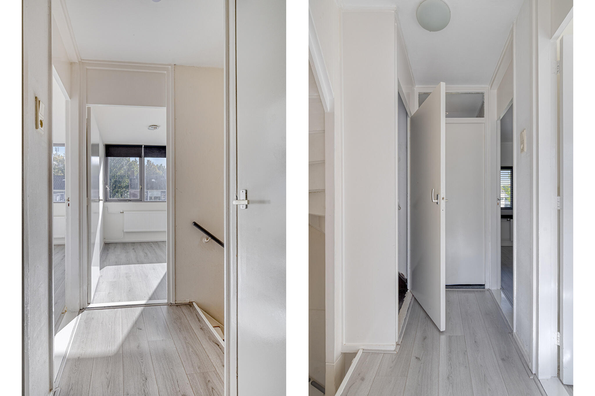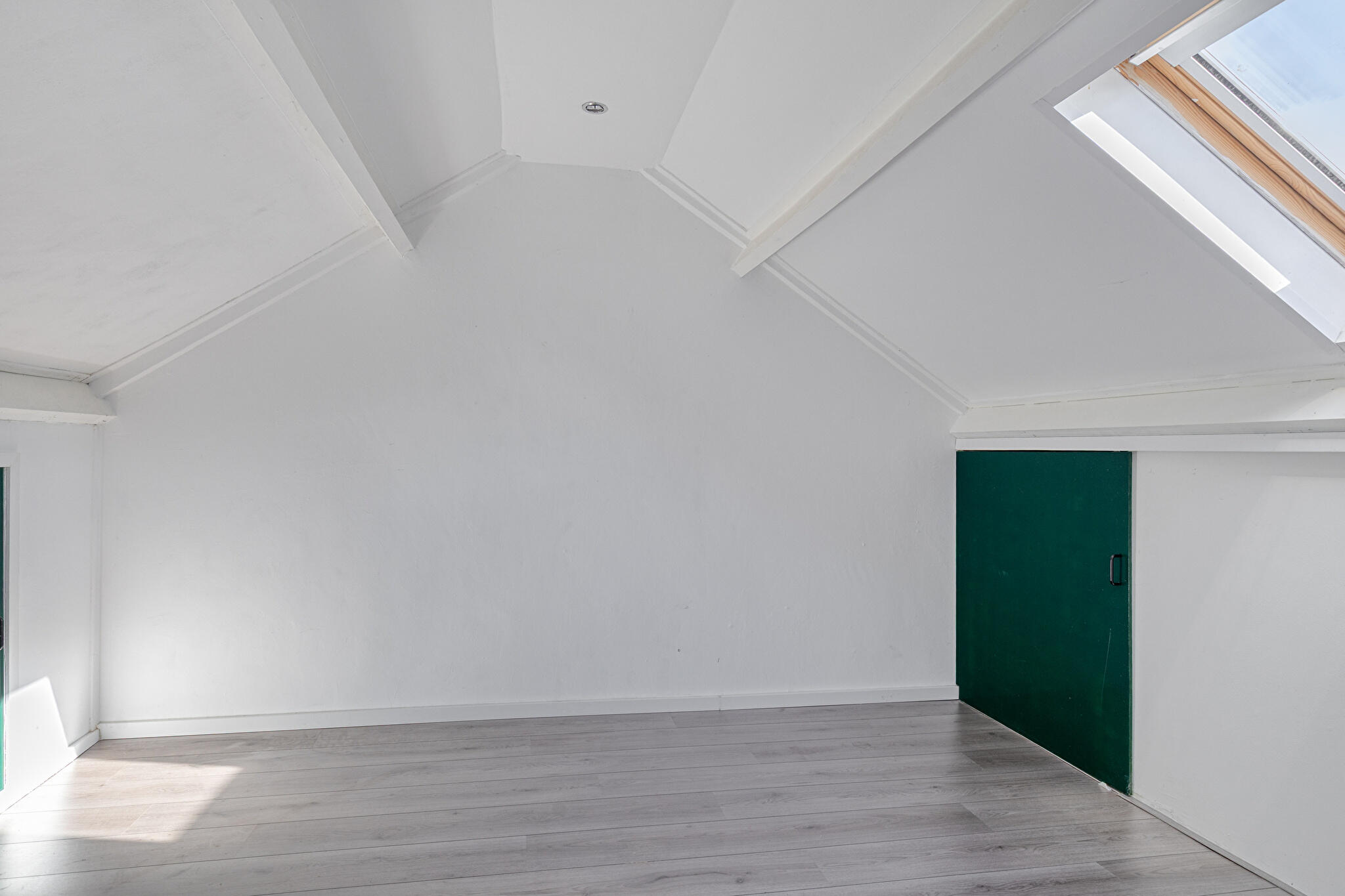 Tweede verdieping: via vaste trap te bereiken, grote overloop met witgoedaansluitingen en voldoende wasruimte, 4e slaapkamer met dakraam en veel bergruimte achter de knieschotten.