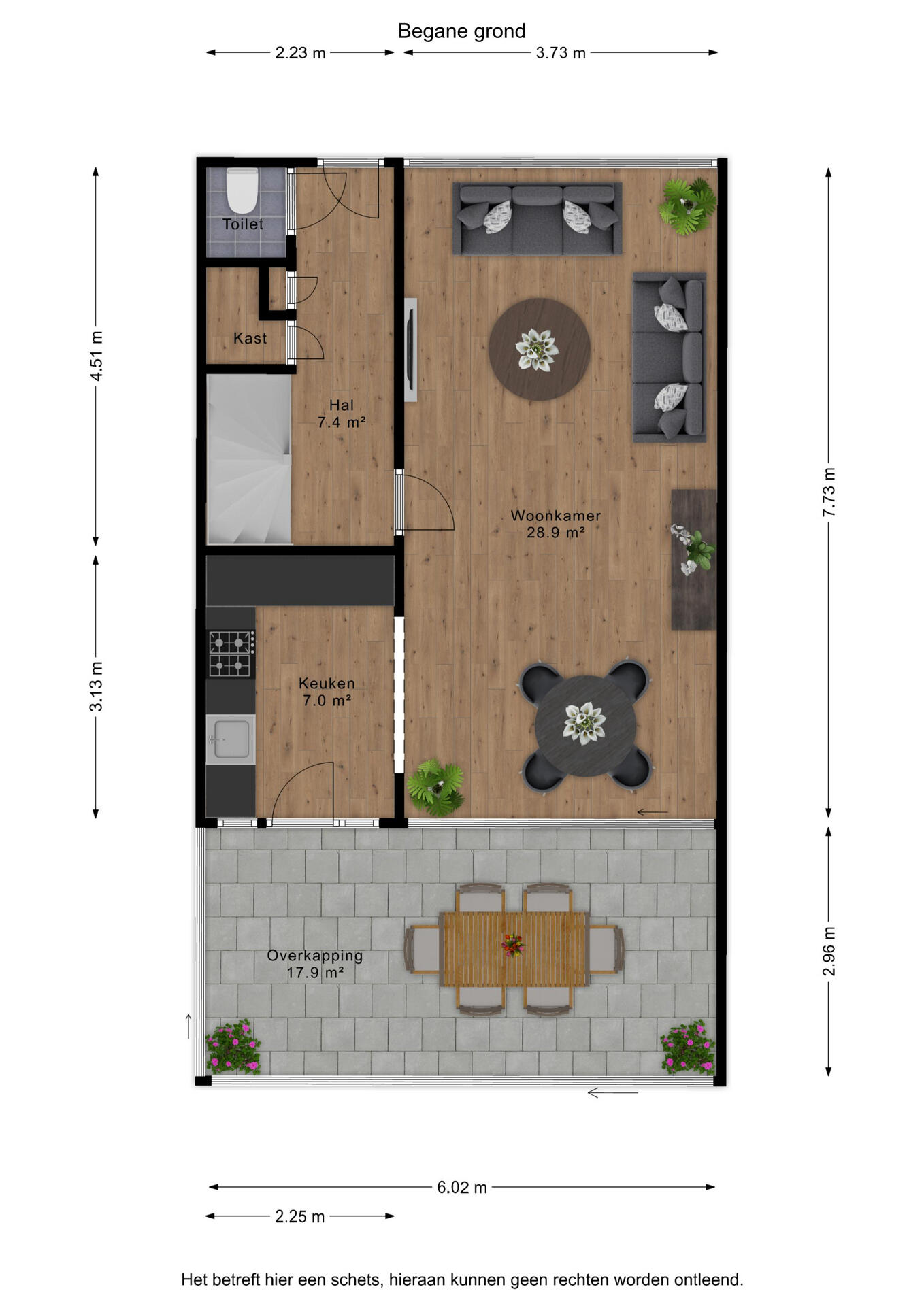 - deels kunststof kozijnen en kunststof achterdeur;