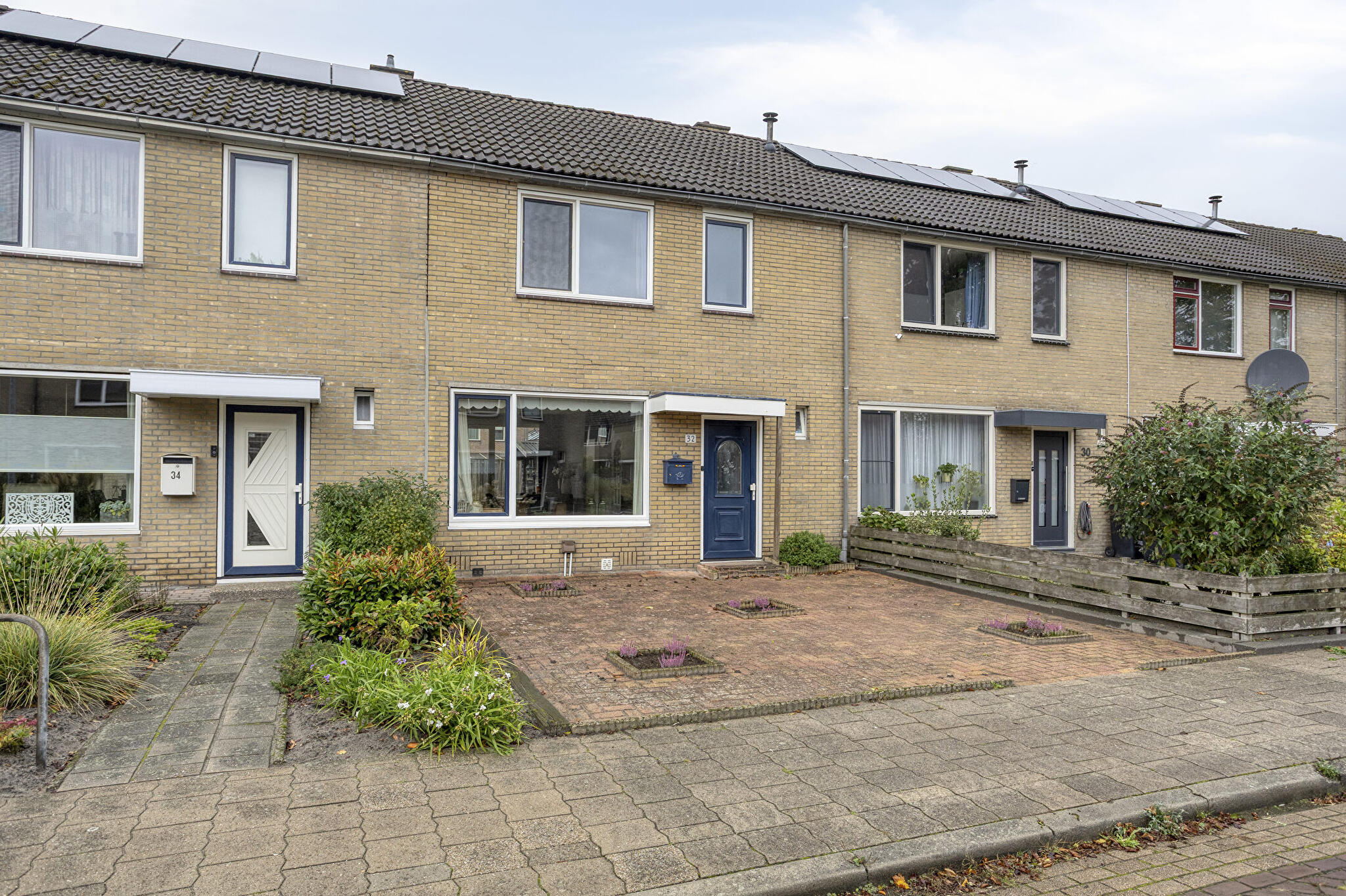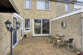 De onderhoudsarme achtertuin op het westen is voorzien van een achterom en een houten tuinhuis, ideaal voor opslag.