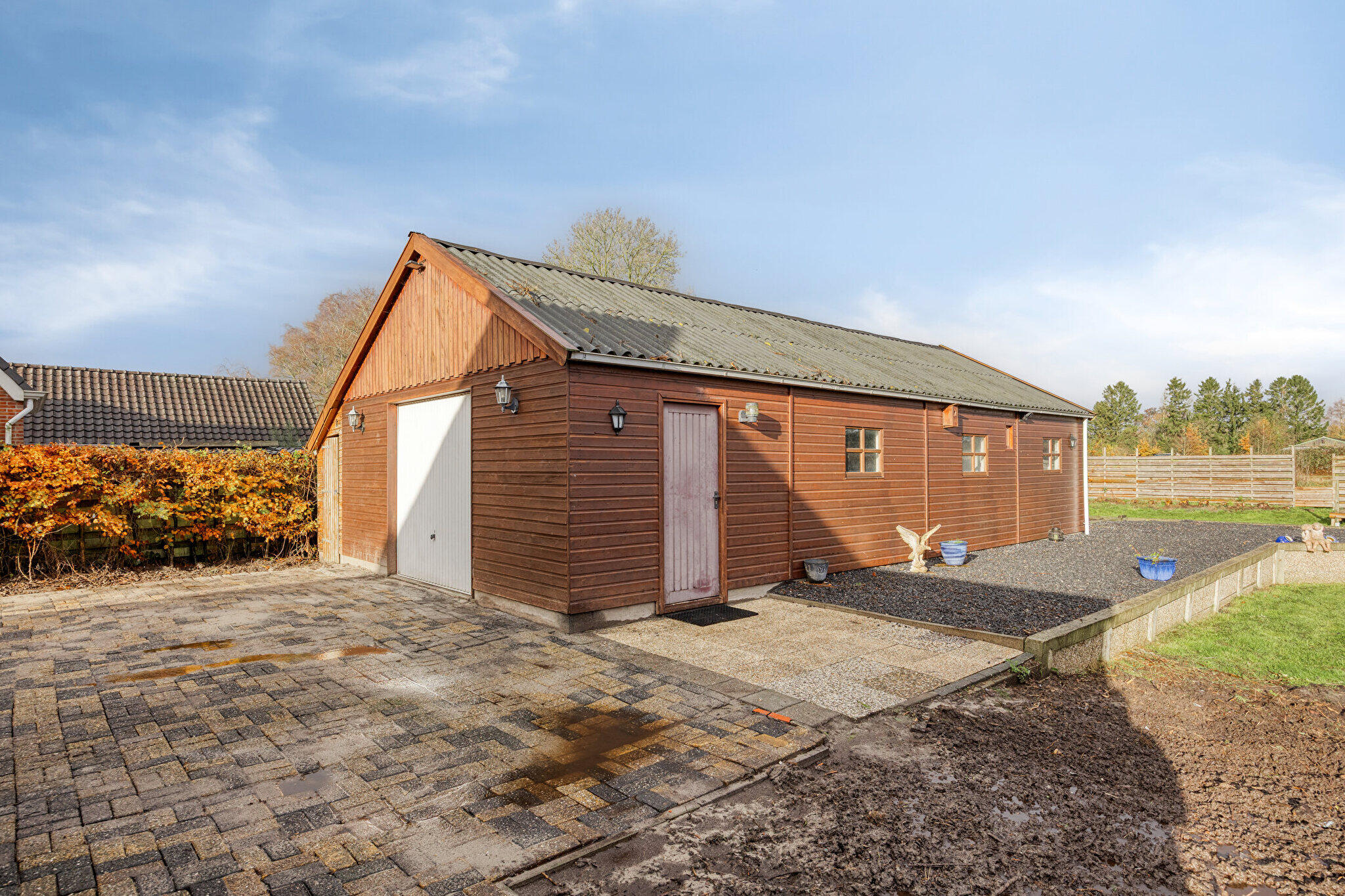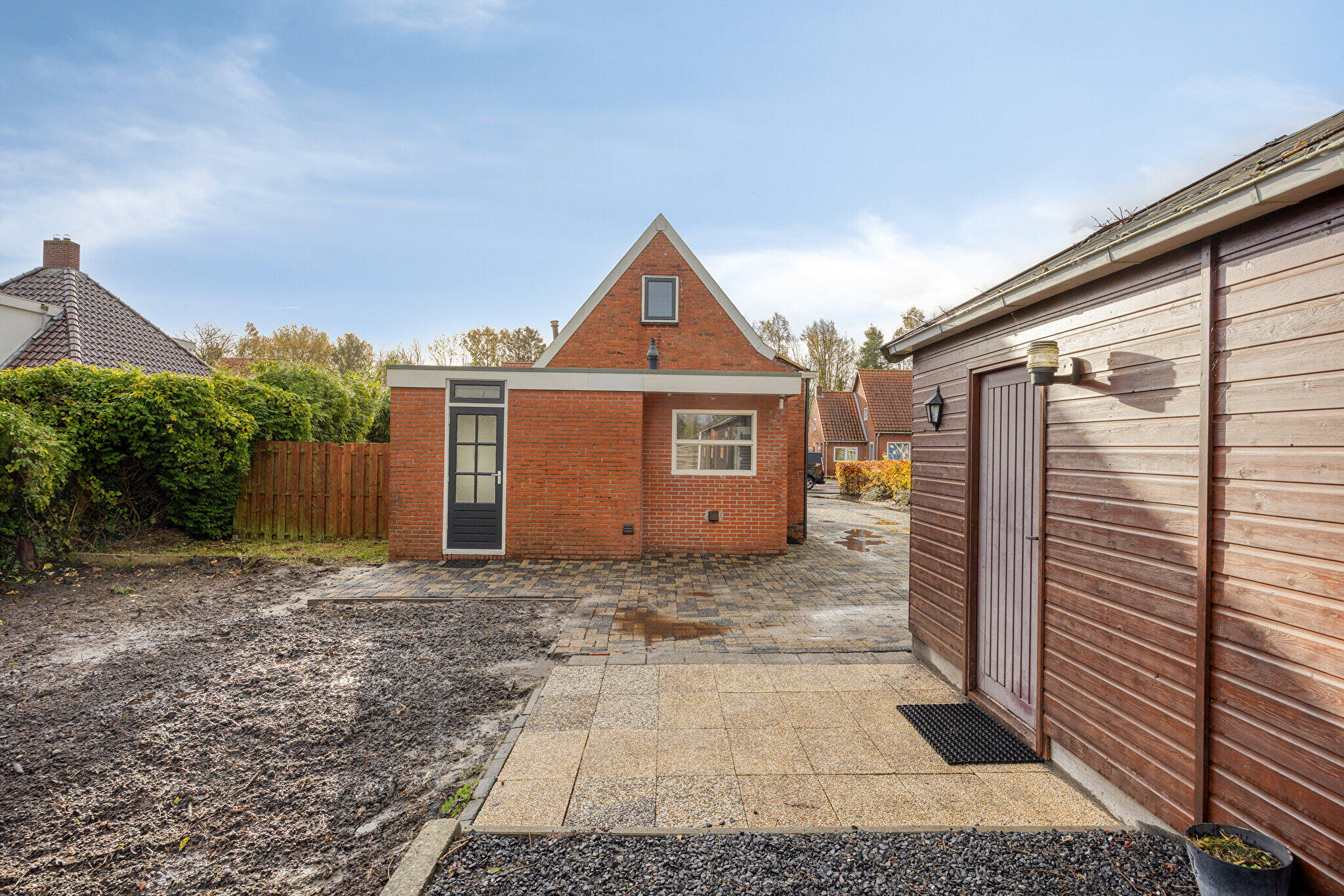 Aan rustige weg, aan de rand van het dorp en nabij meerdere parken gelegen, vrijstaand woonhuis met ruime vrijstaande houten garage (geschikt voor meerdere doeleinden). De woning staat op een groot perceel en heeft een diepe tuin met vrij uitzicht en meerdere zonneterrassen.