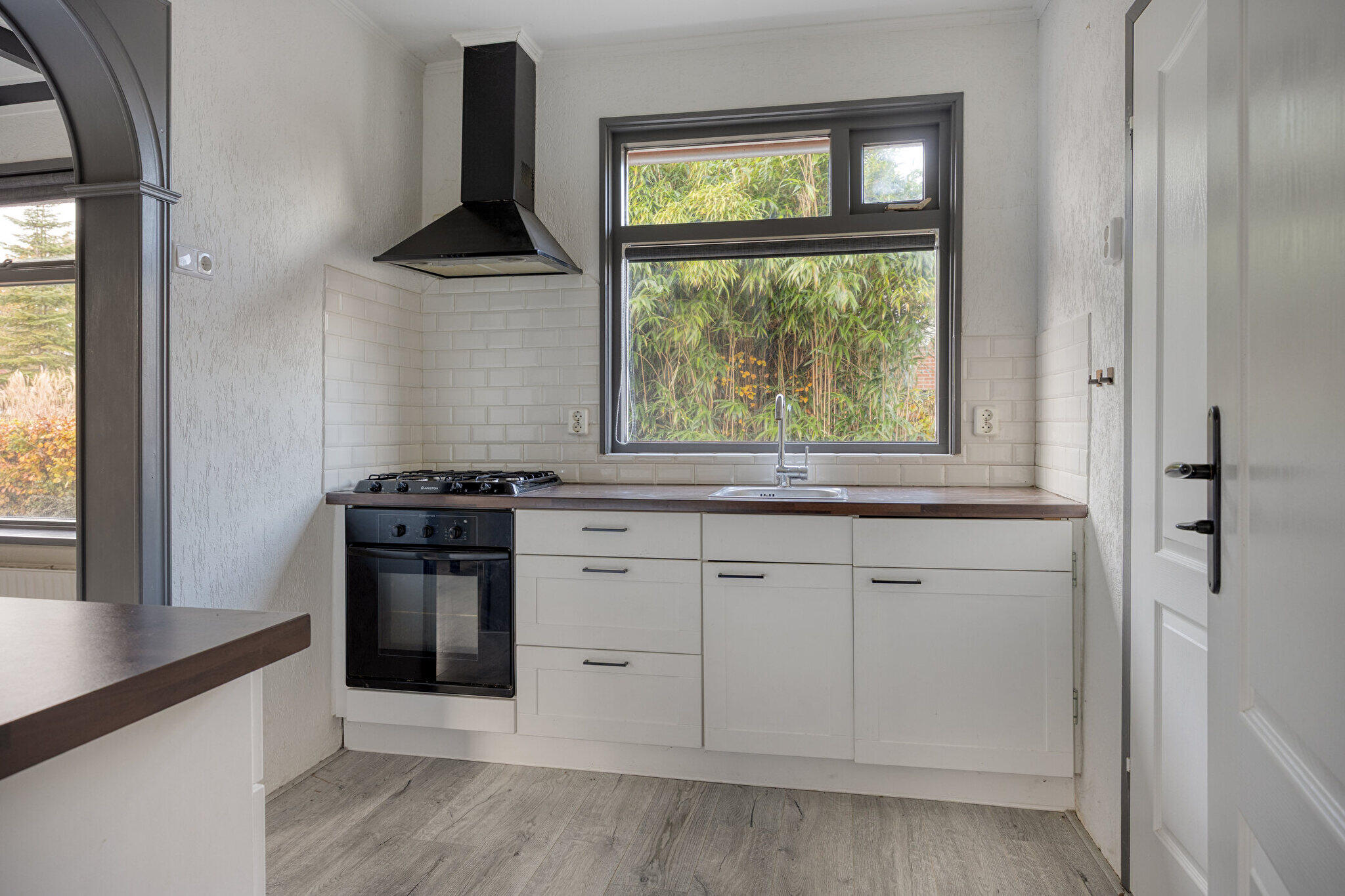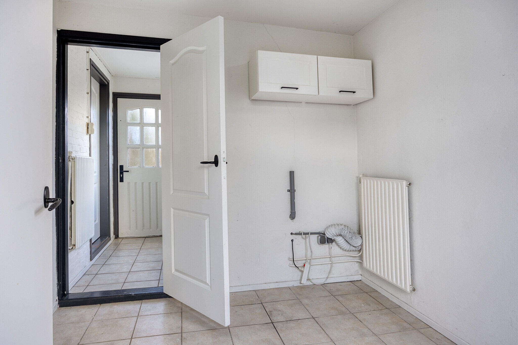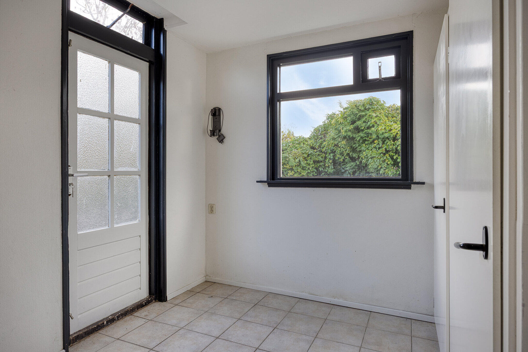 Begane grond: overdekte entree, hal met vaste kast, royale woon-/eetkamer met erker en veel ramen, keuken met keukeninrichting voorzien van inbouwapparatuur, badkamer met douchecabine, toilet en vaste wastafel met meubel, bergingsruimte met vaste kasten, witgoedaansluitingen en achterentree (eventueel ook geschikt voor slaapkamer), bijkeuken met eveneens witgoedaansluitingen en zijentree.