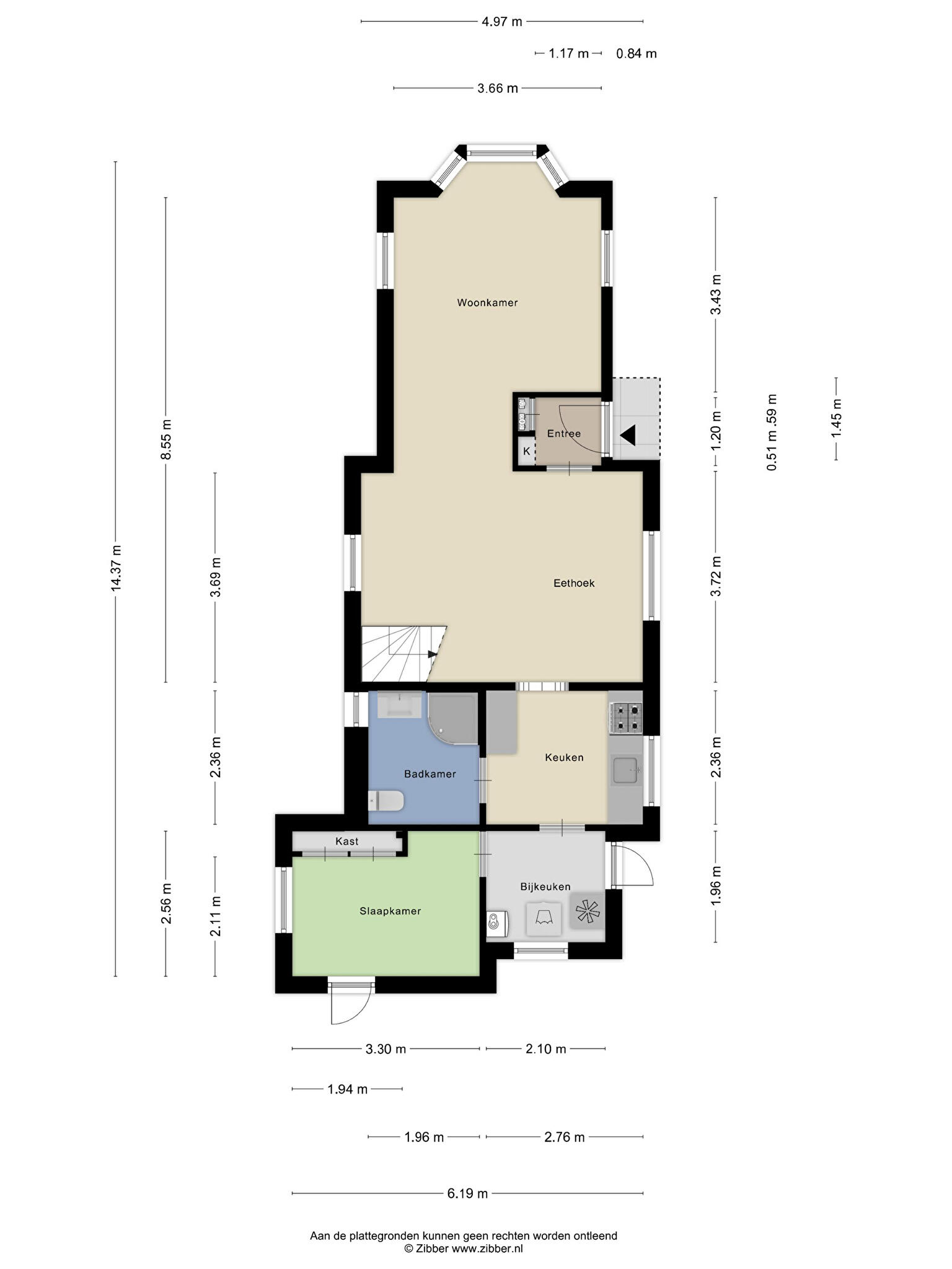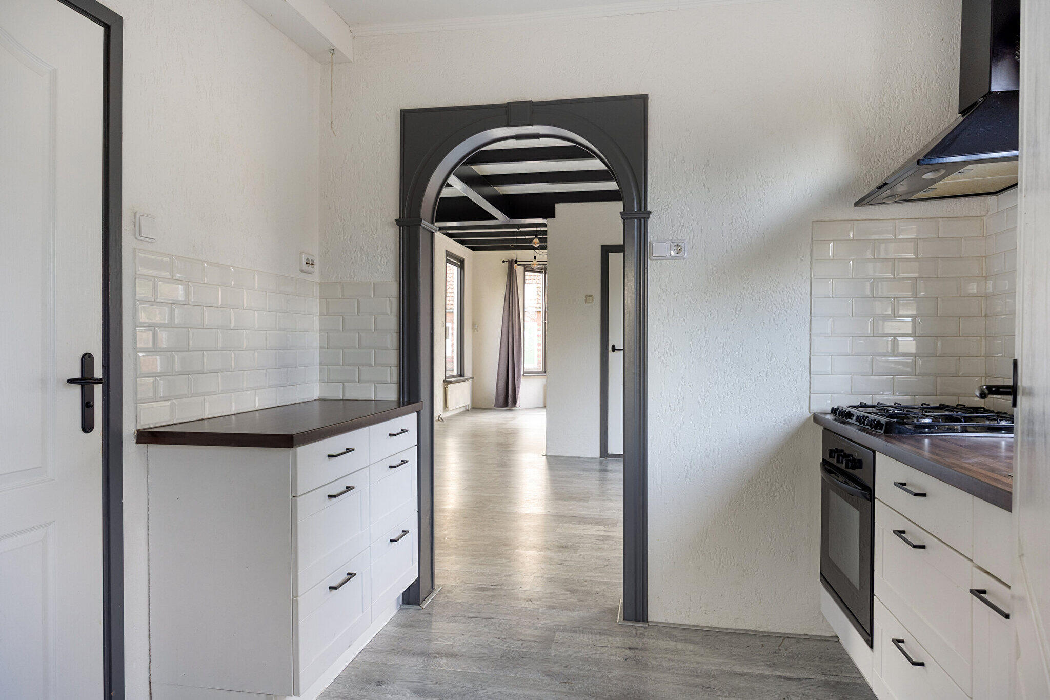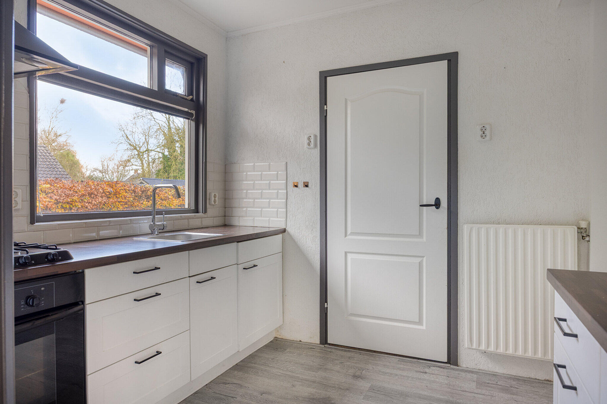 Begane grond: overdekte entree, hal met vaste kast, royale woon-/eetkamer met erker en veel ramen, keuken met keukeninrichting voorzien van inbouwapparatuur, badkamer met douchecabine, toilet en vaste wastafel met meubel, bergingsruimte met vaste kasten, witgoedaansluitingen en achterentree (eventueel ook geschikt voor slaapkamer), bijkeuken met eveneens witgoedaansluitingen en zijentree.