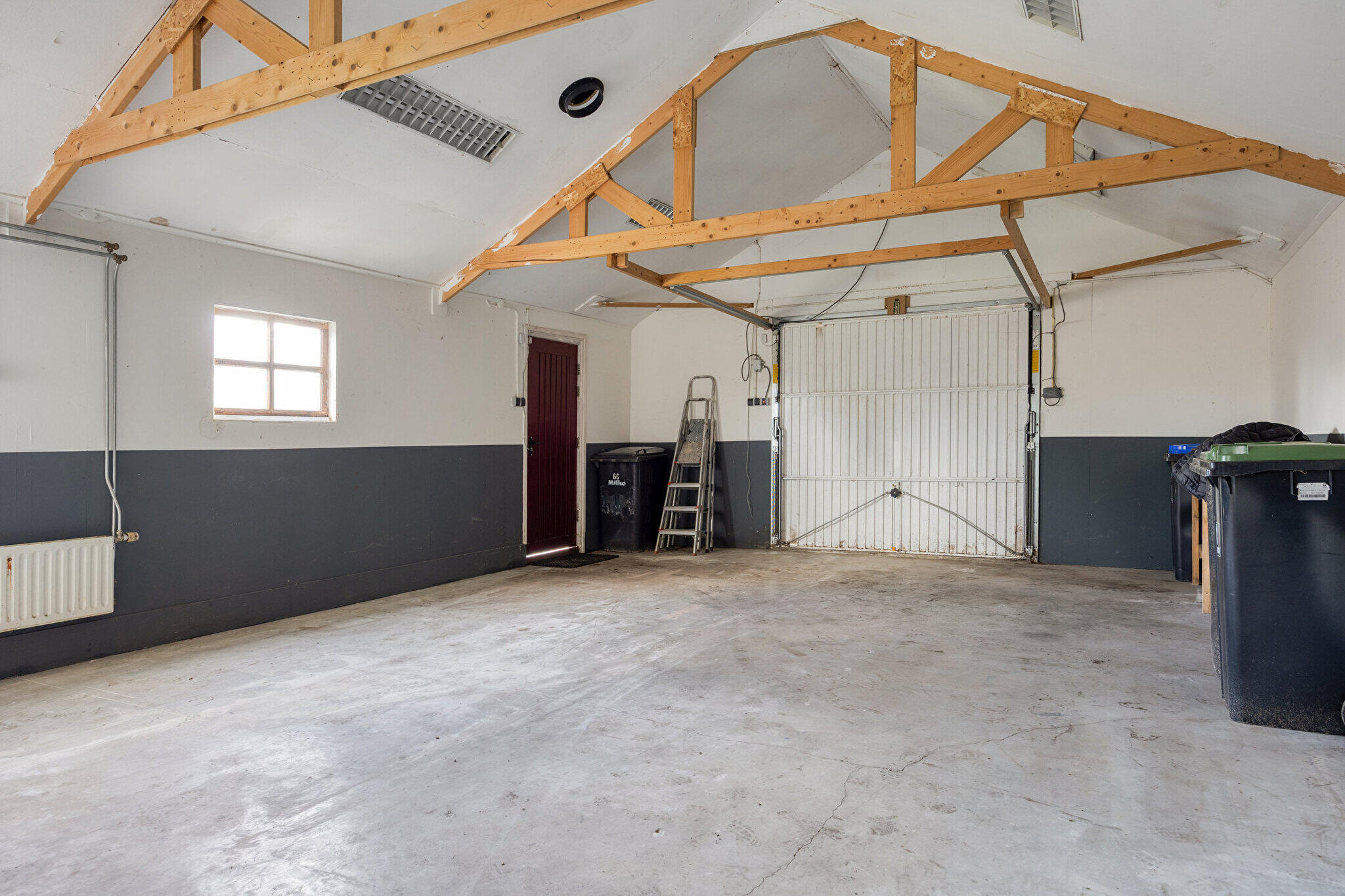 De garage is voorzien van toilet en keukeninrichting, kantoorruimte en separate ruimte (garage geheel voorzien van verwarming, water en elektra), alsmede aangrenzende bergingsruimte.