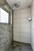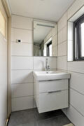 Eerste verdieping: overloop met kast-/wasruimte, totaal 3 slaapkamers, waarvan 2 met vaste kasten, badkamer (met elektrische vloerverwarming) voorzien van inloopdouche en vaste wastafel met meubel.