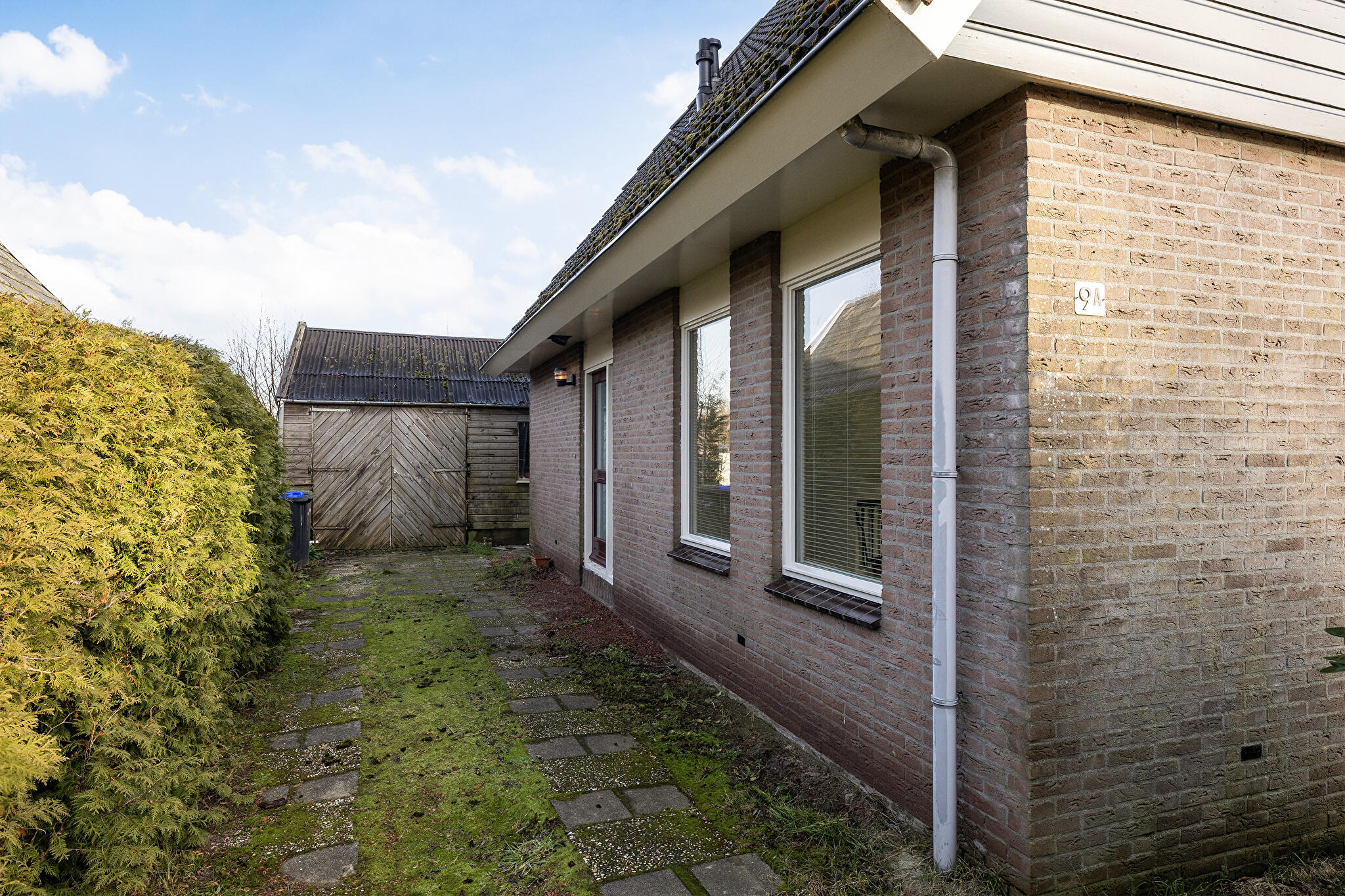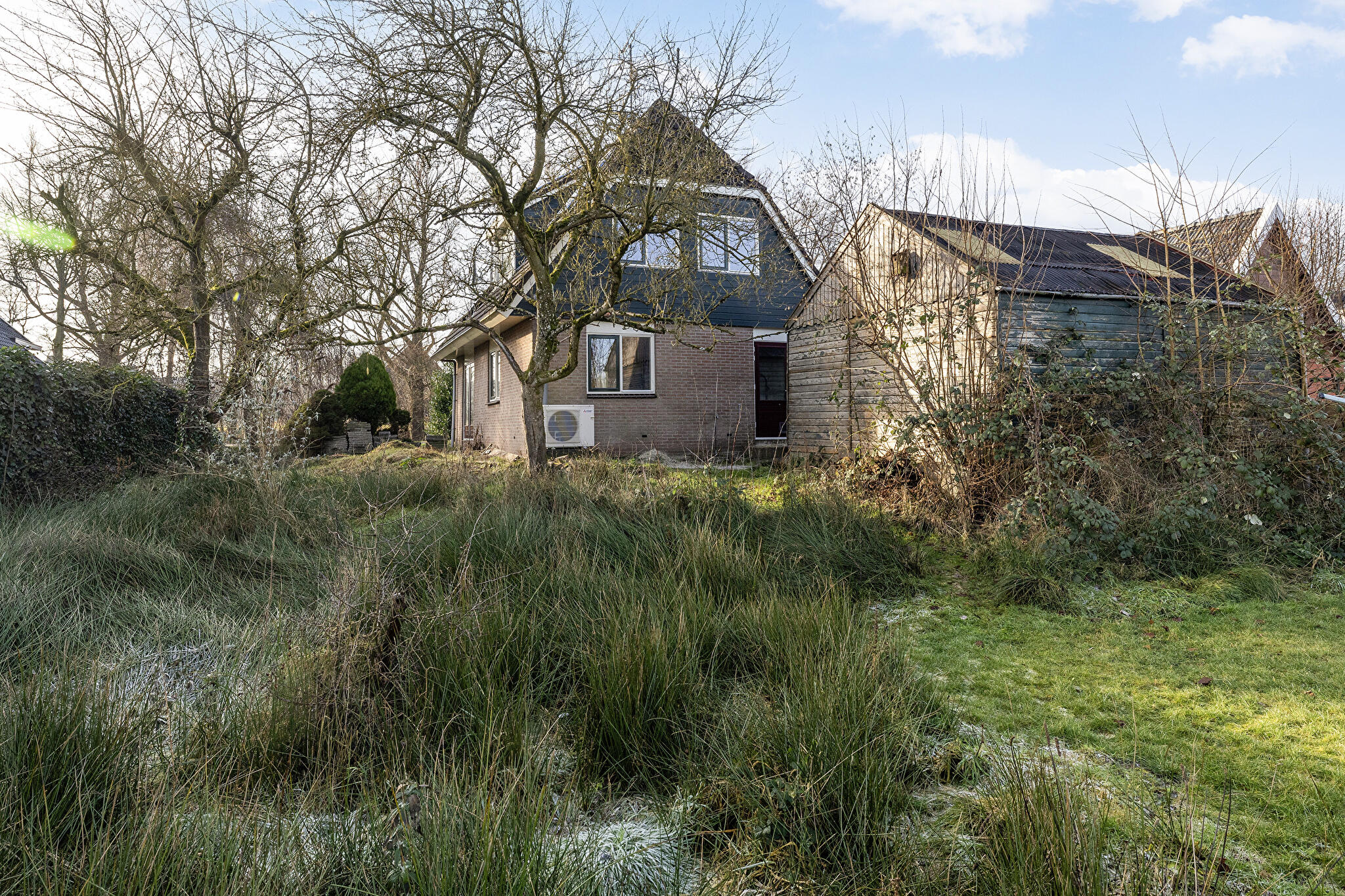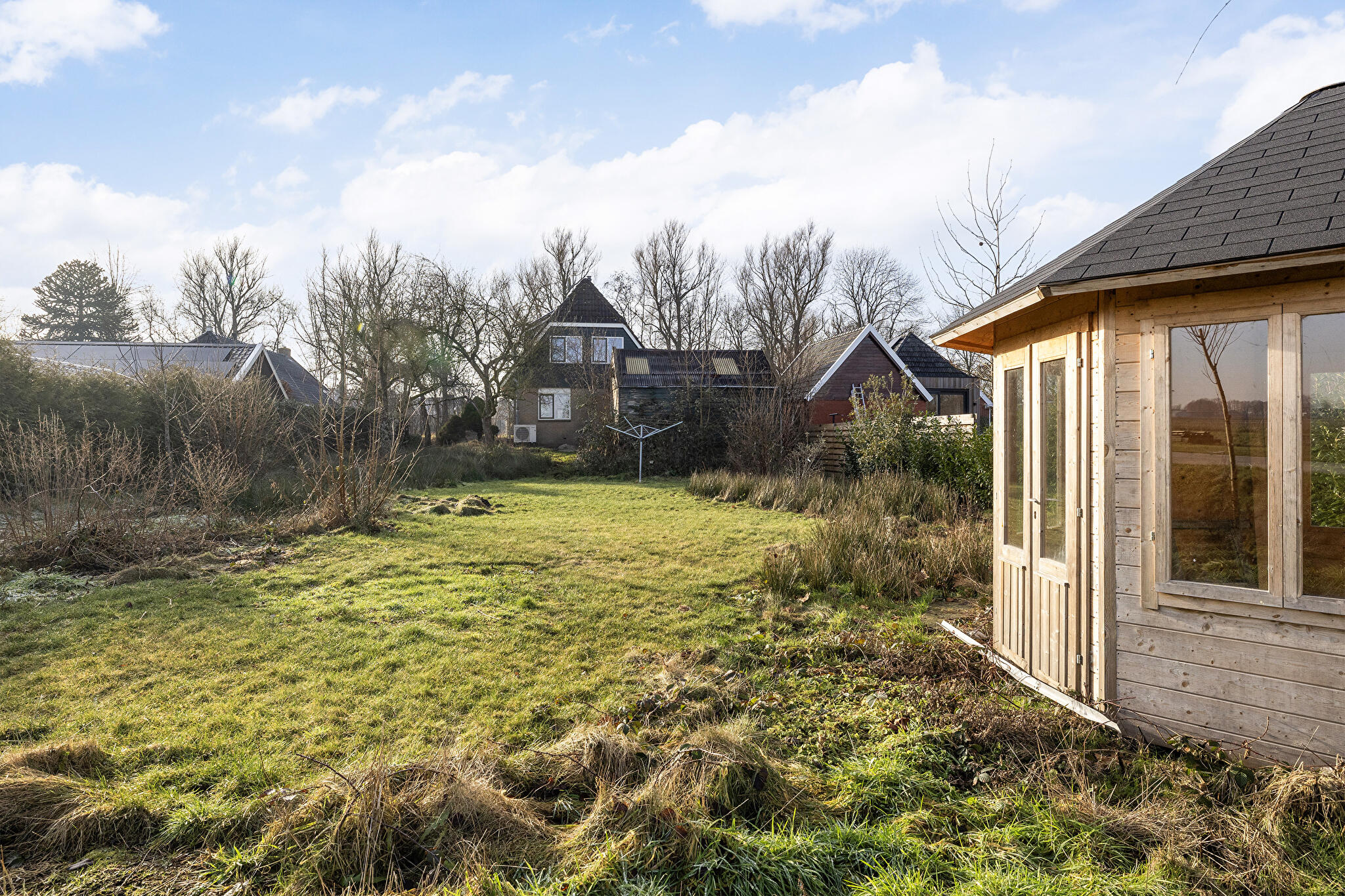 - vrijstaande houten garage en vrijstaand tuinhuis;