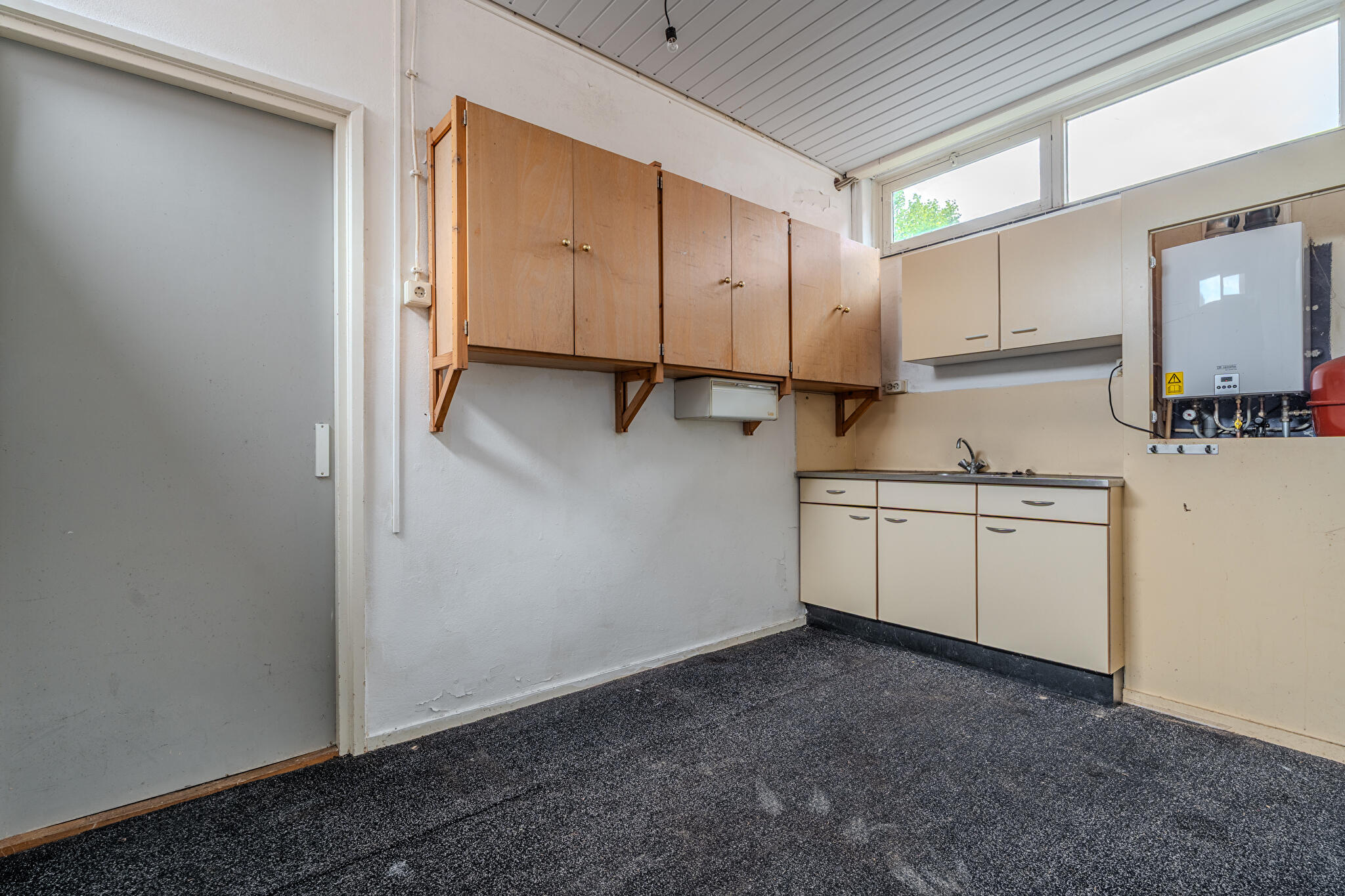 2) Bedrijfsruimte 1; voorheen een peuterspeelzaal. Deze ruimte heeft een oppervlakte van ca. 100 m2 bestaande uit kantoor en groot leslokaal alsmede sanitair en keuken voorziening.