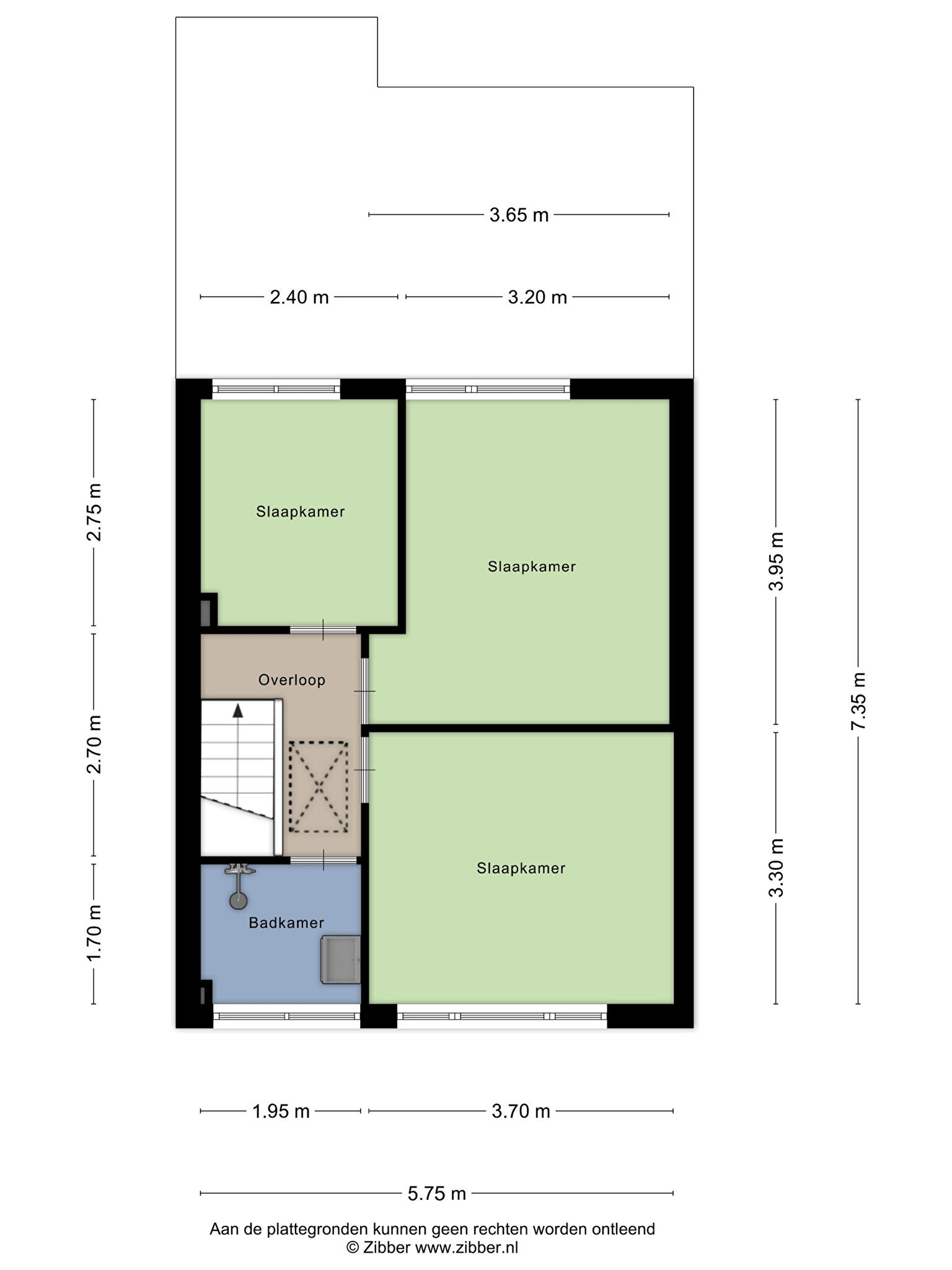 Vliering: middels vlizotrap bereikbaar, bergruimte.