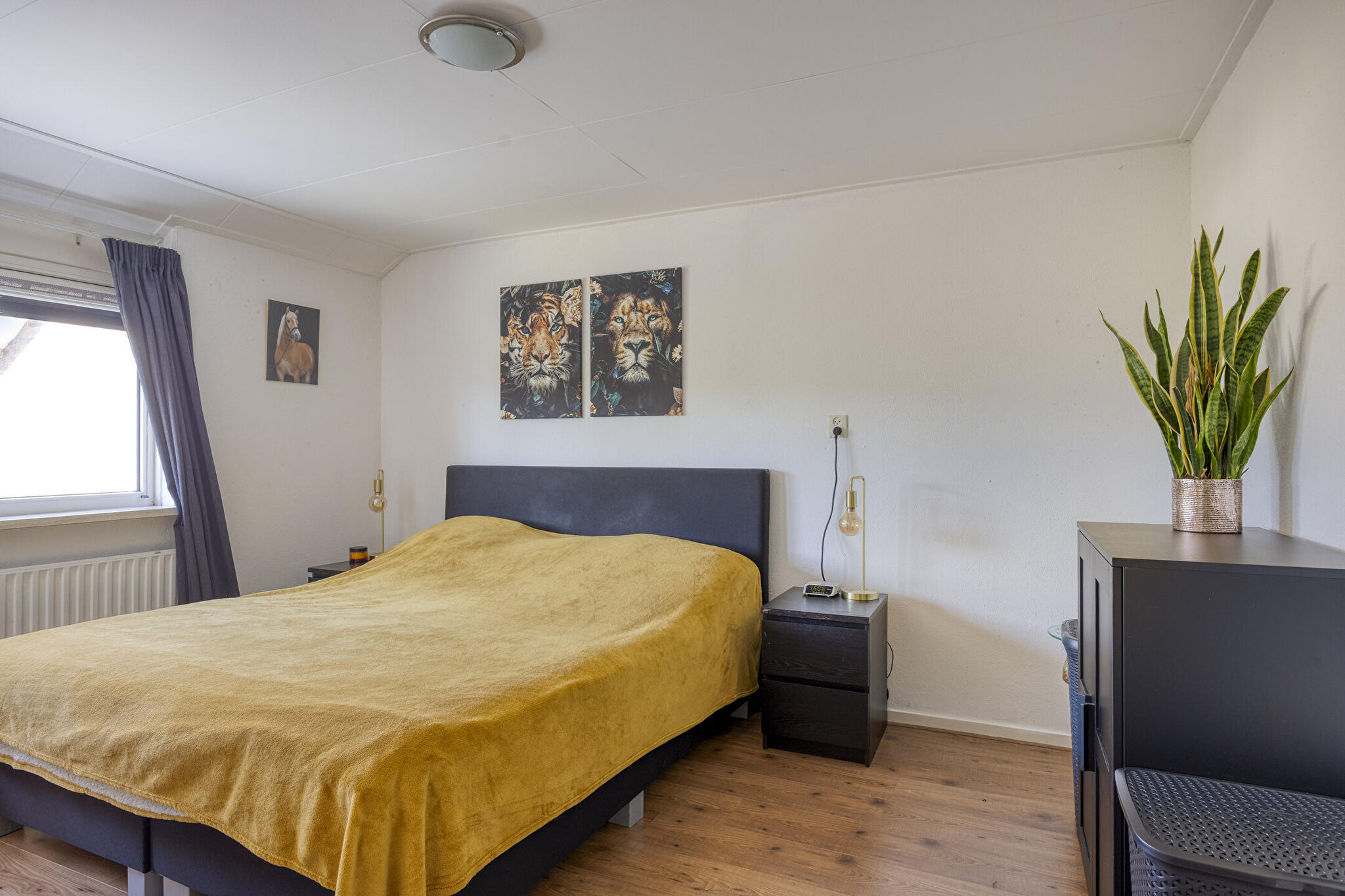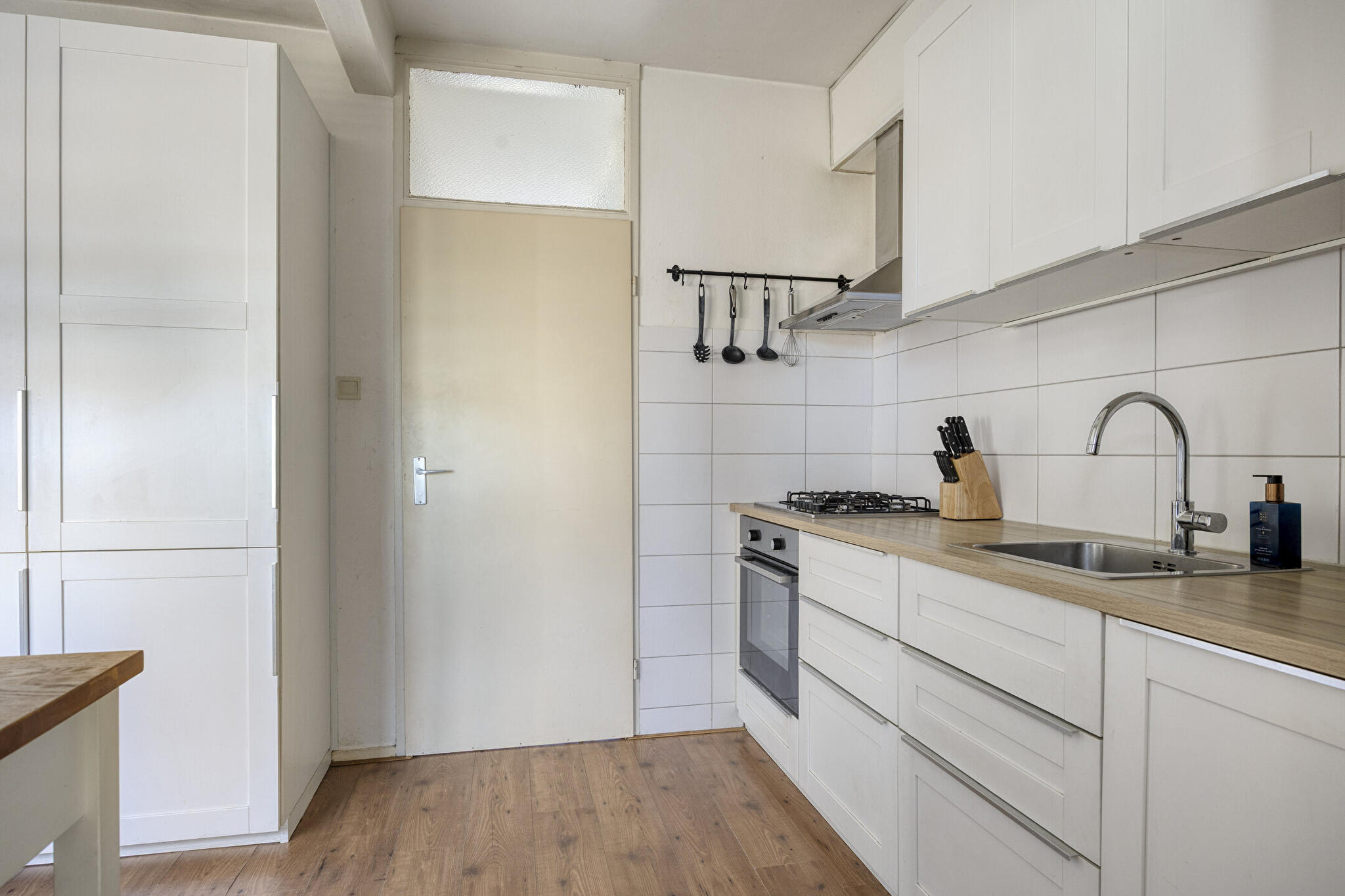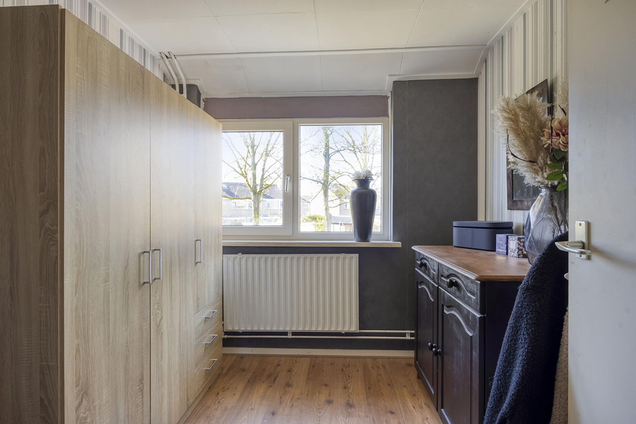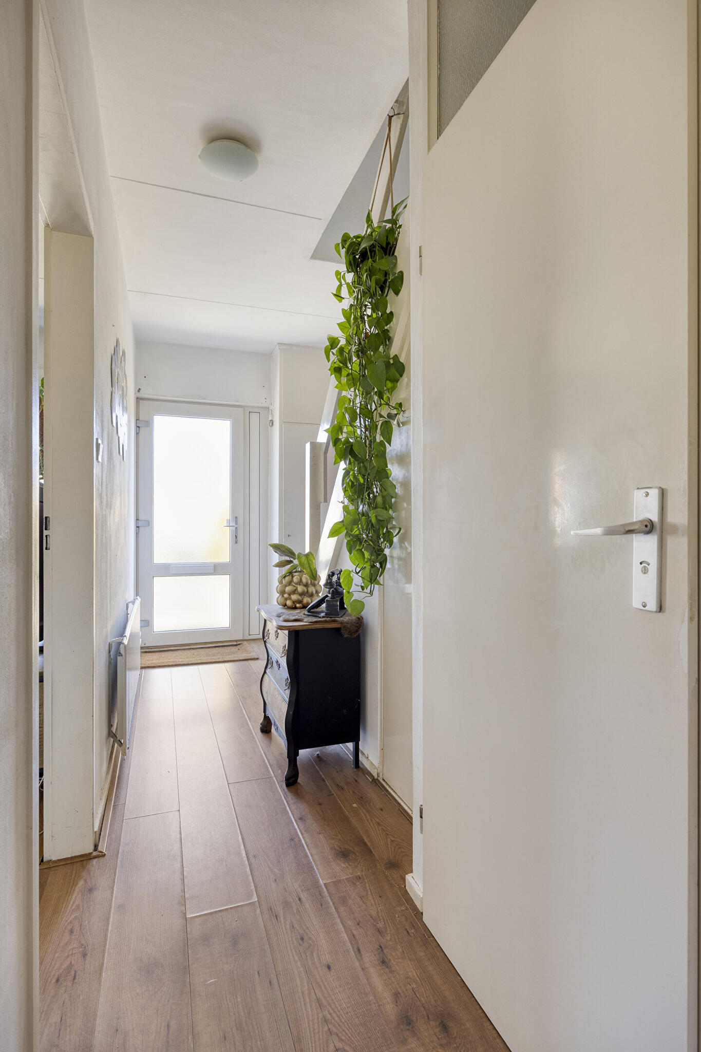 Begane grond: entree/hal, toiletruimte met fonteintje, trapopgang naar de verdieping, lichte doorzonkamer met nette laminaatvloer. De praktische keuken is voorzien van vaatwasser, oven, gasfornuis en afzuigsysteem. Vanuit de keuken loopt u de ruime berging in, ideaal voor hobby, klus of extra opslag, met directe toegang tot het terras met overkapping – perfect voor gezellige buitenmomenten.