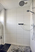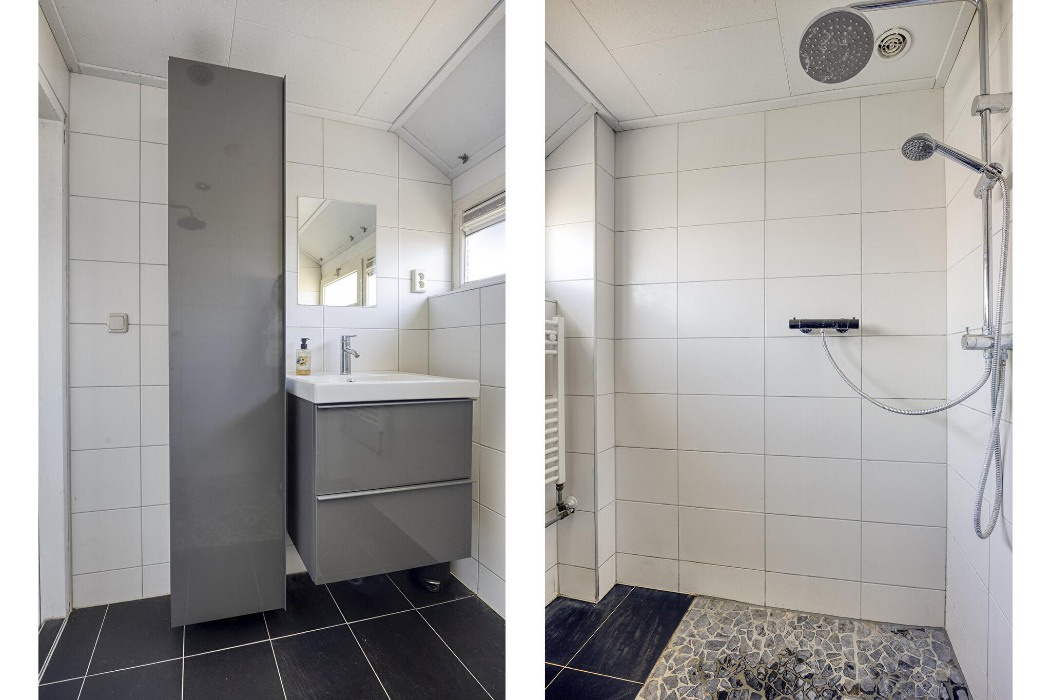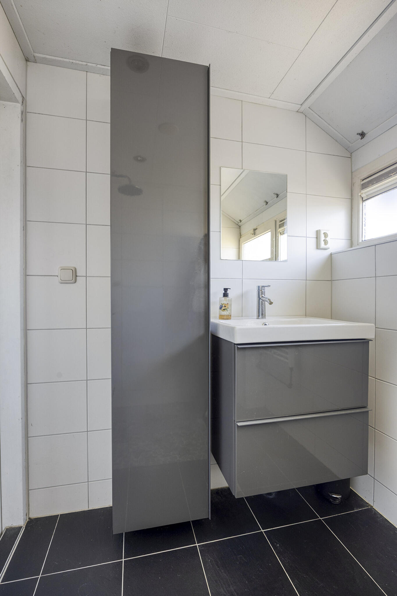 Eerste verdieping: overloop, totaal 3 ruime en nette slaapkamers en een badkamer voorzien van inloopdouche, wastafel met meubel en designradiator.
