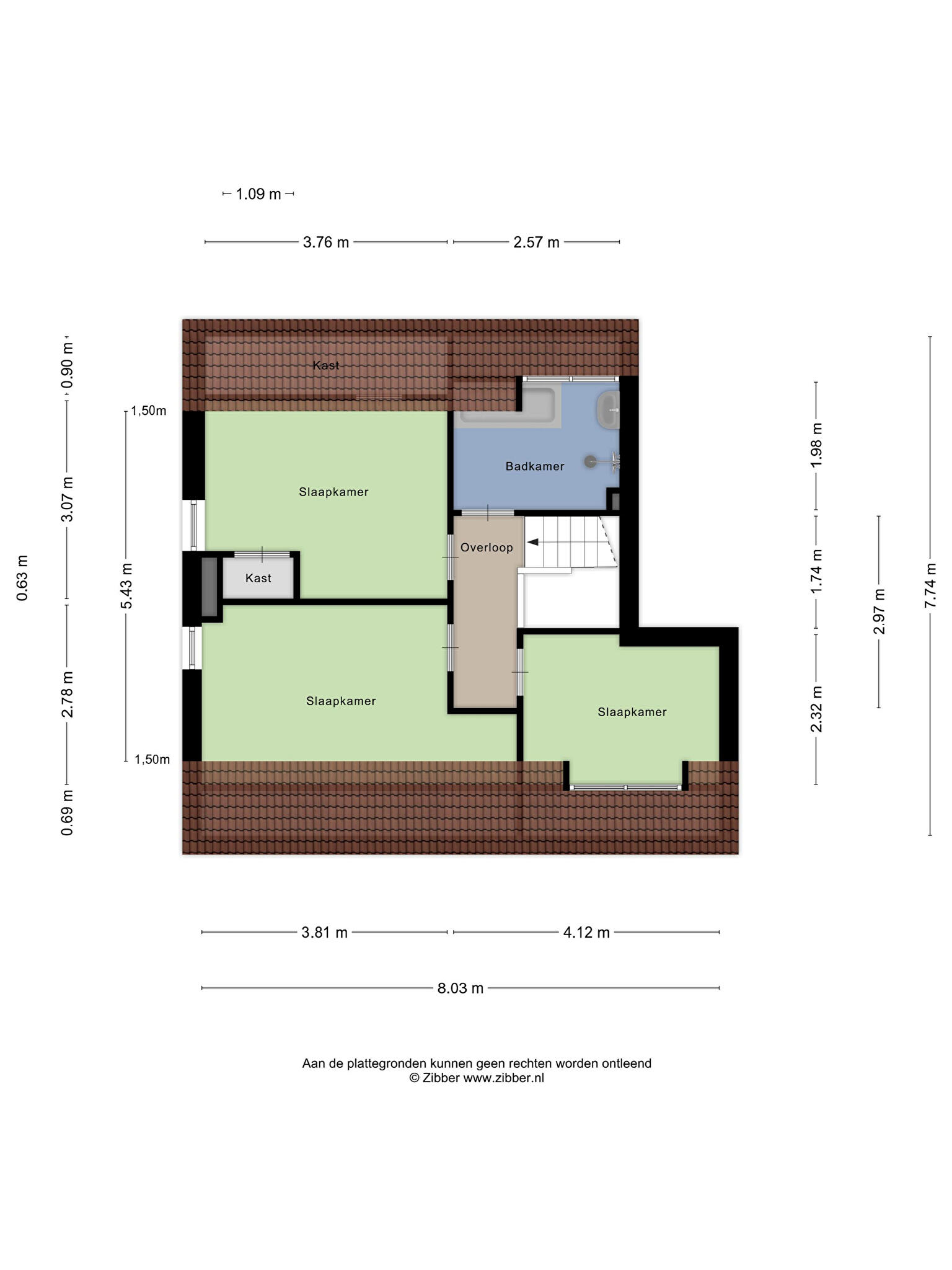 Eerste verdieping: overloop, totaal drie slaapkamers, waarvan één met vaste kastruimte en knieschotten, dakkapel aan de achterzijde, badkamer voorzien van ligbad, douche en wastafel.