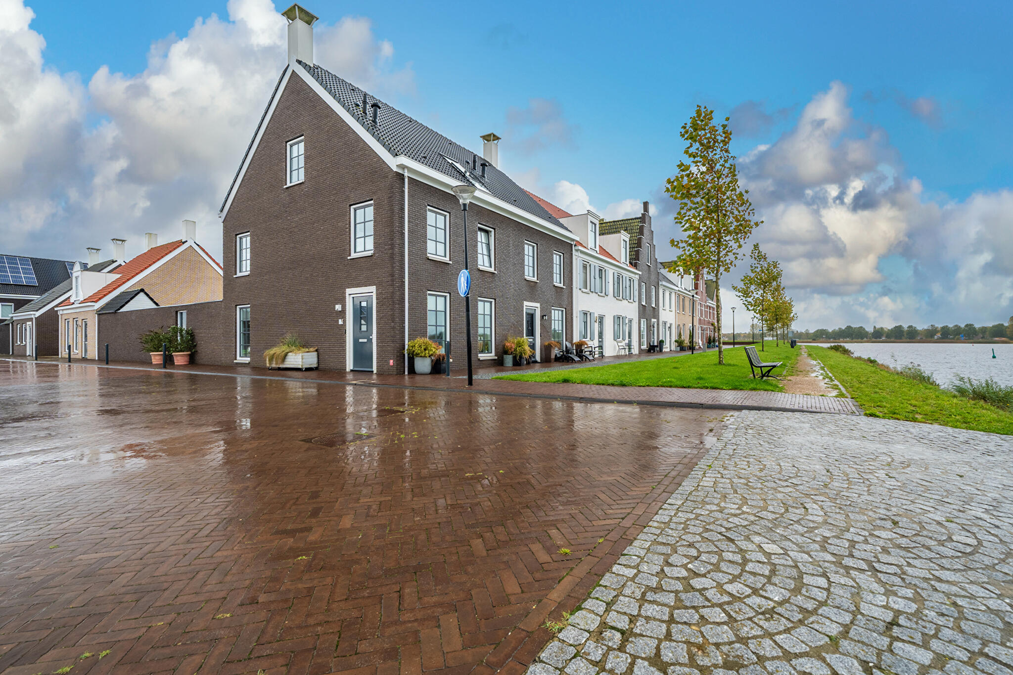 Aan water, aan rustige weg, in woonwijk, vrij uitzicht, open ligging, aan vaarwater