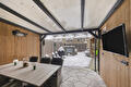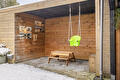 - achtertuin met heater en moderne stenen haard;