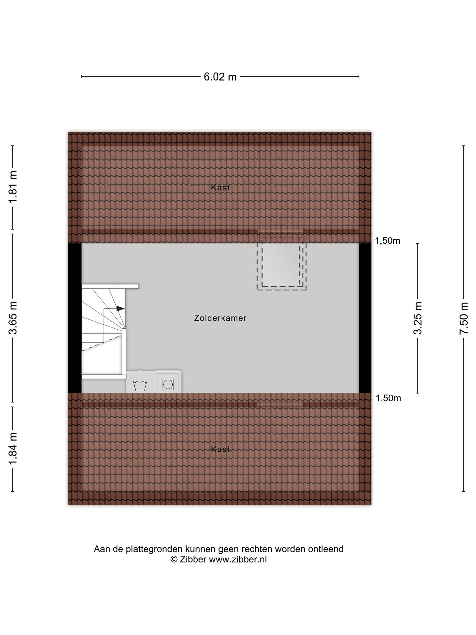 Tweede verdieping: te bereiken middels een vaste trap, bergzolder met dakraam, witgoedaansluitingen en veel ruimte achter de knieschotten. Deze ruimte biedt mogelijkheden tot het realiseren van een extra slaapkamer.