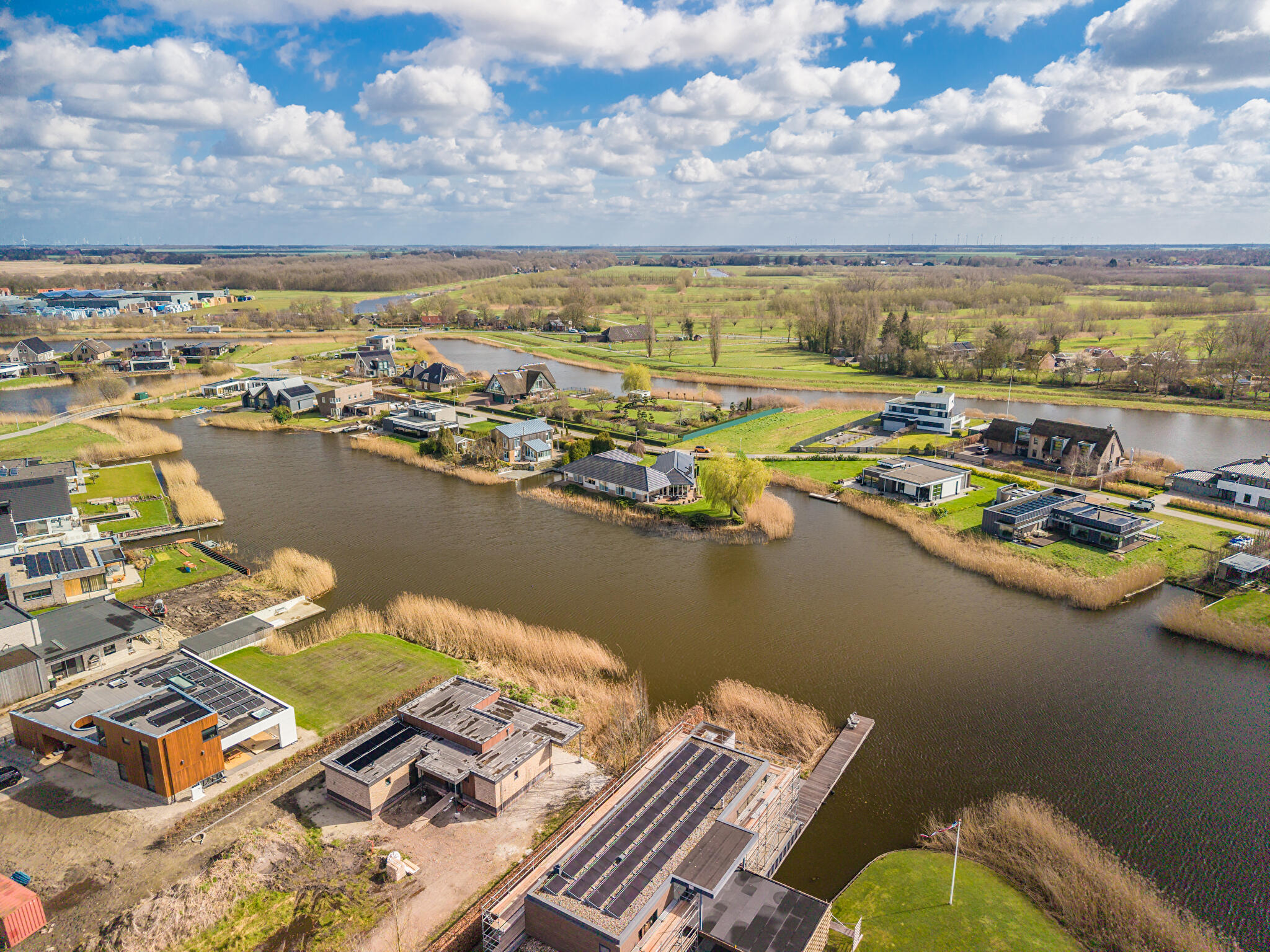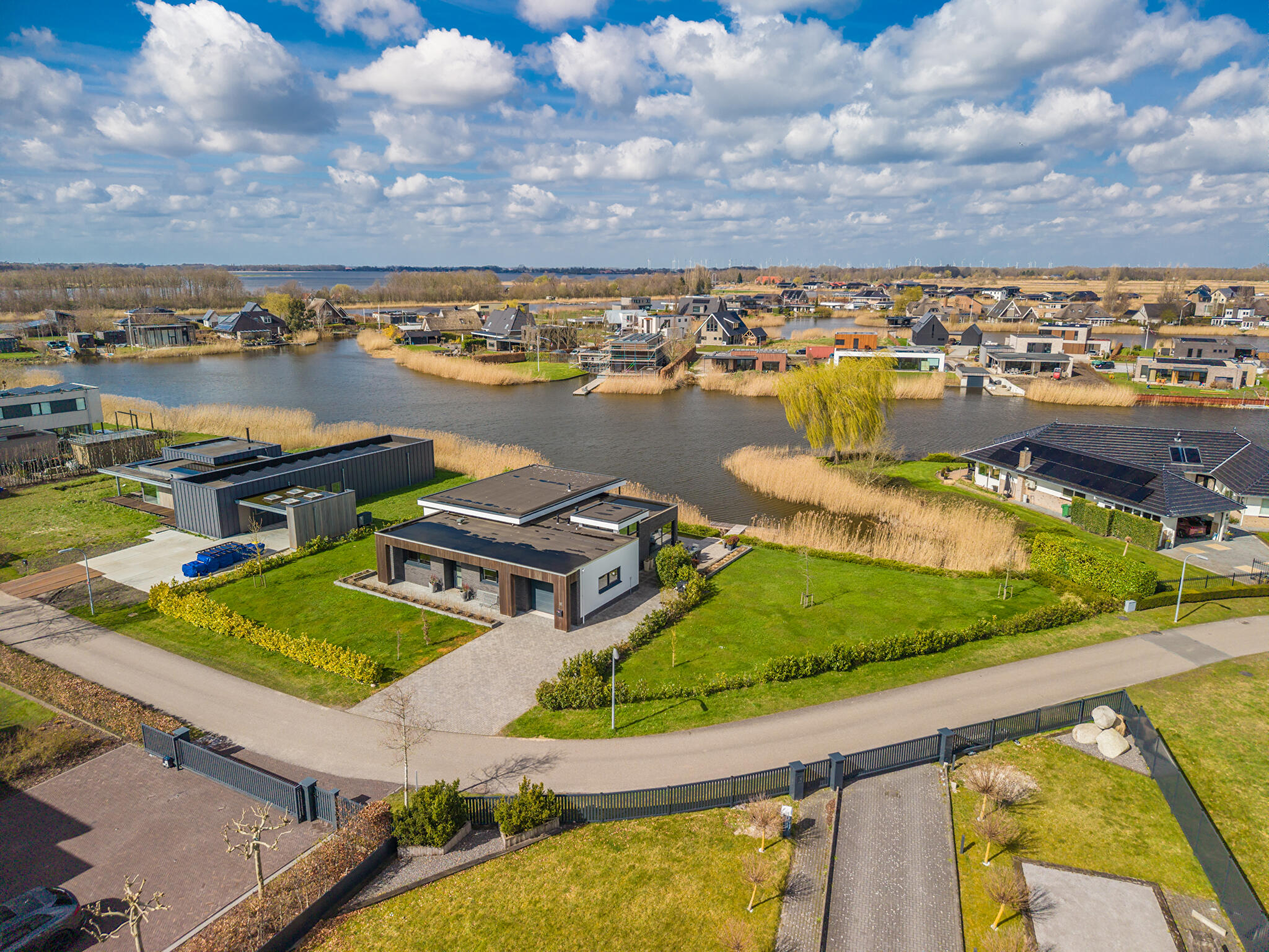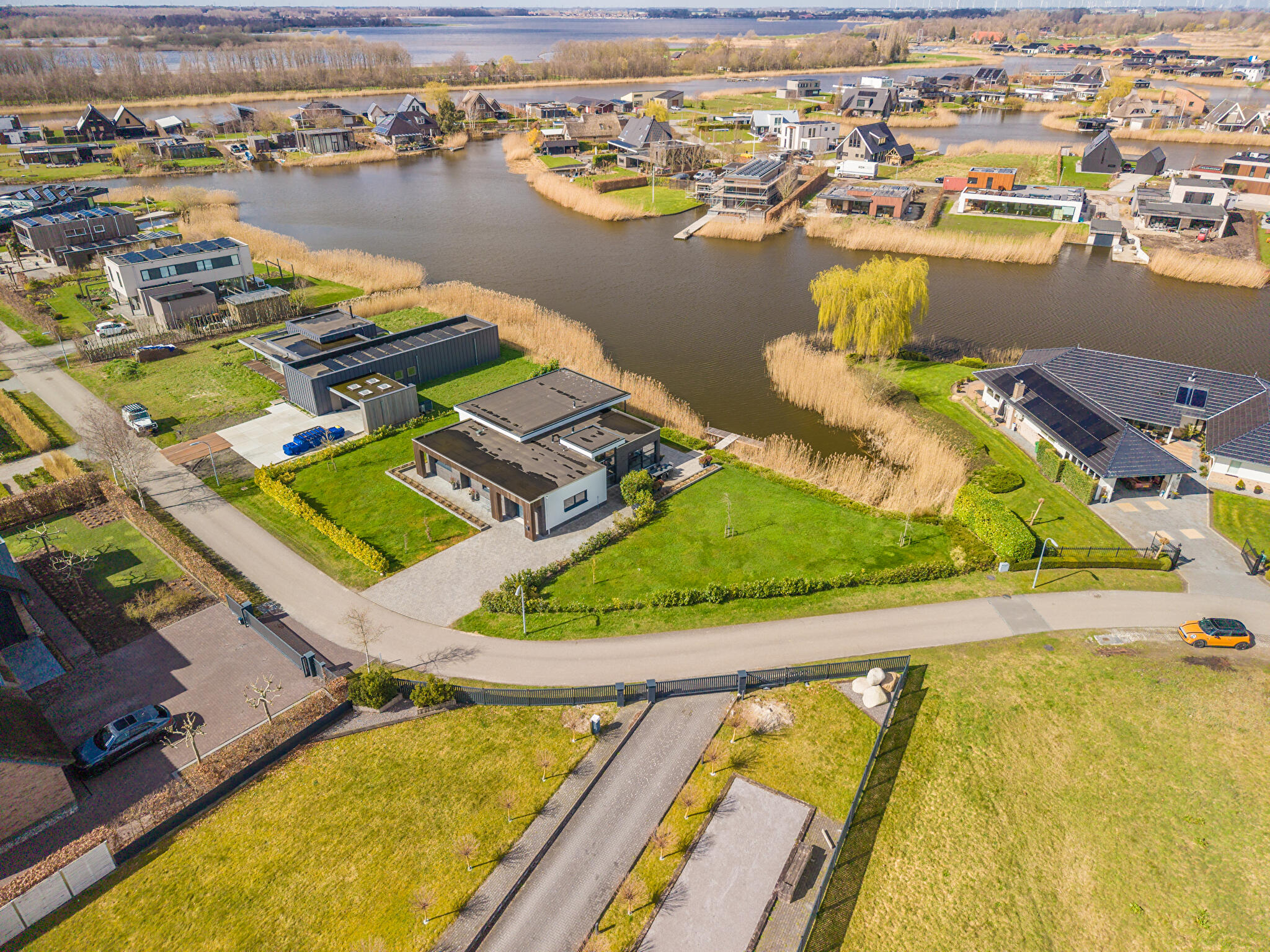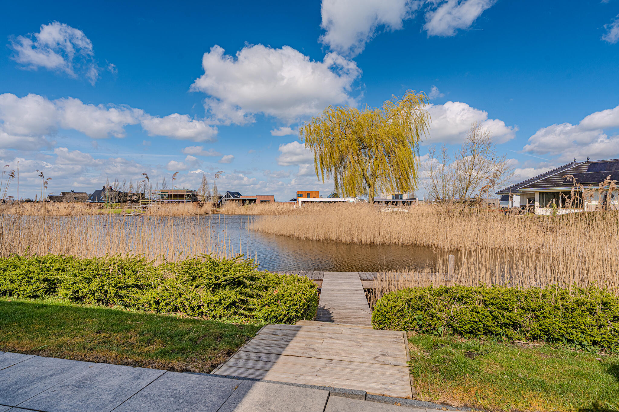 Aan water, aan rustige weg, in woonwijk, vrij uitzicht, aan vaarwater