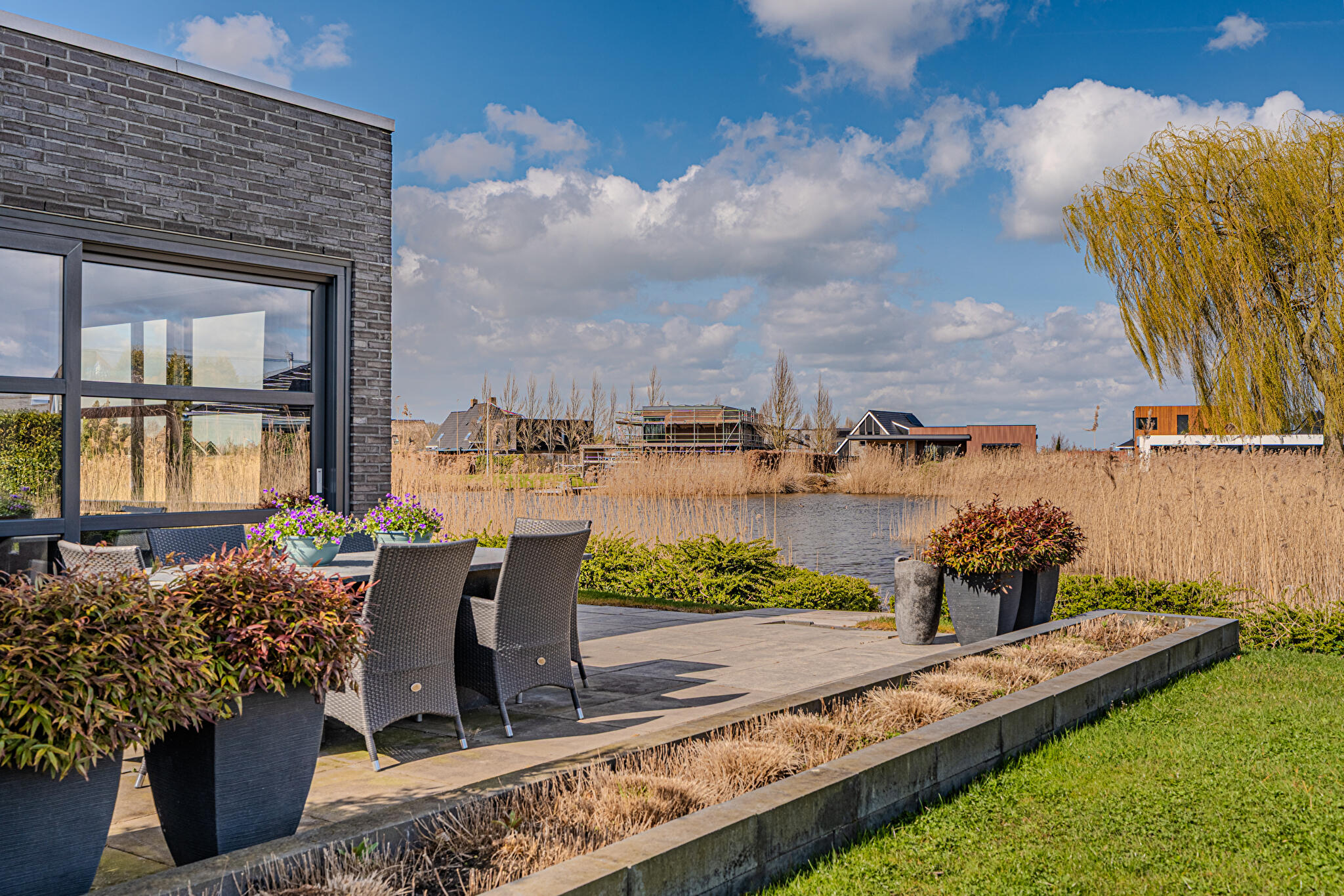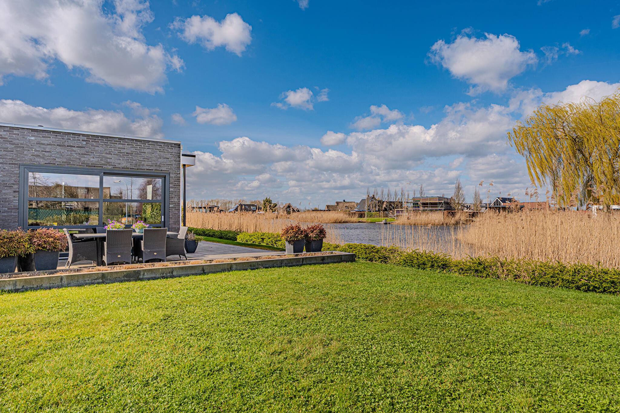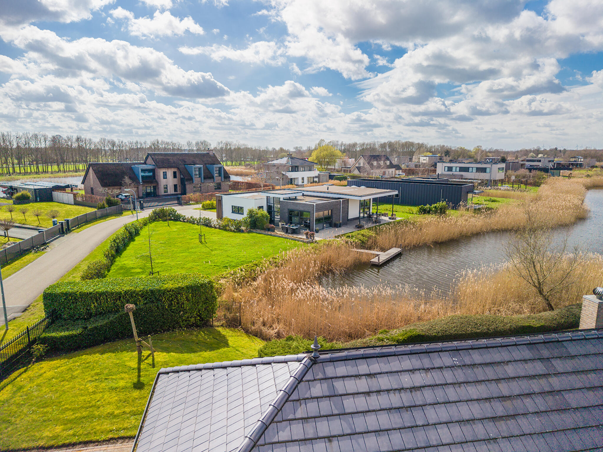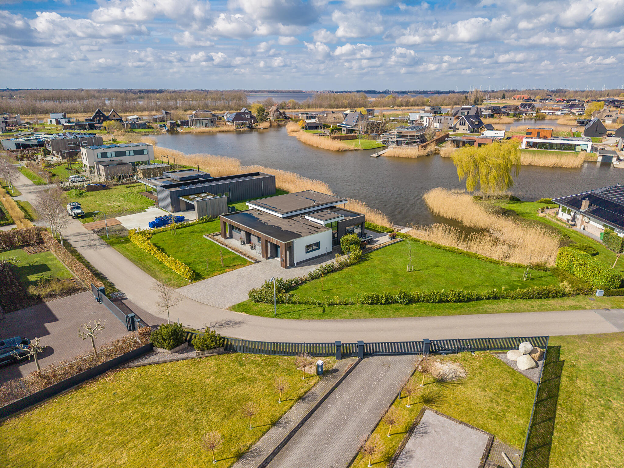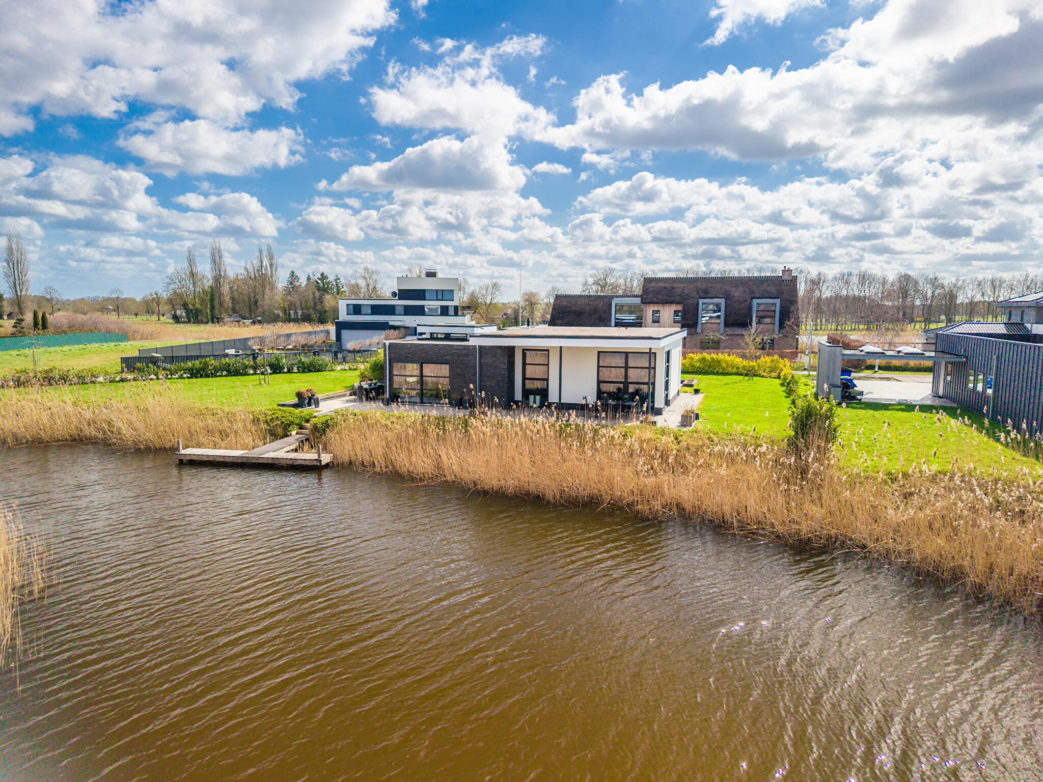 Aan water, aan rustige weg, in woonwijk, vrij uitzicht, aan vaarwater