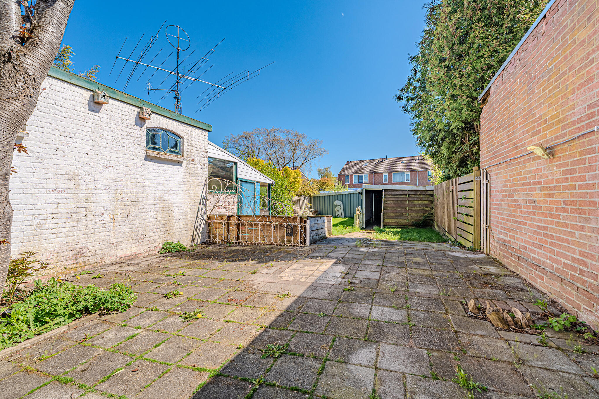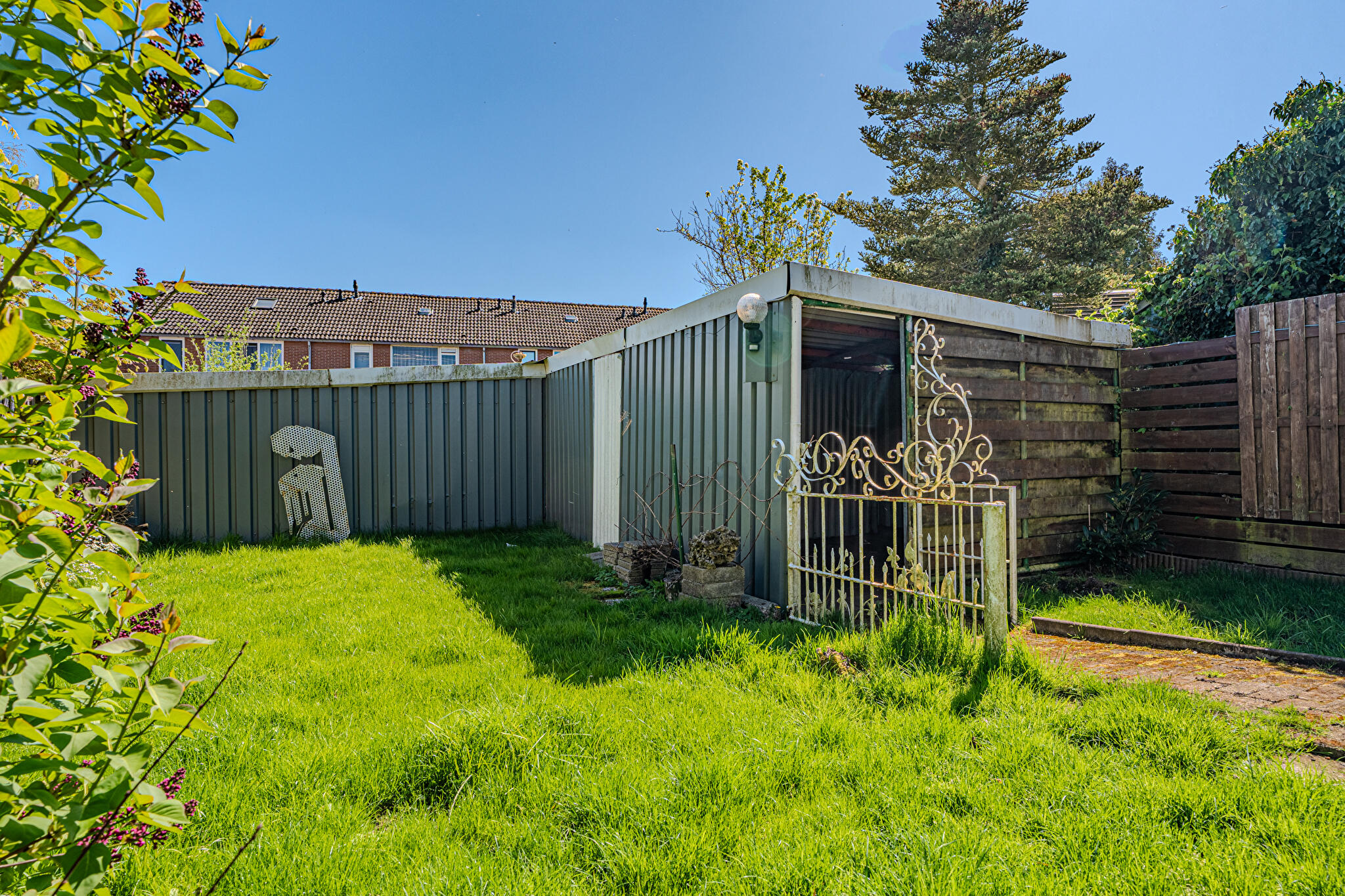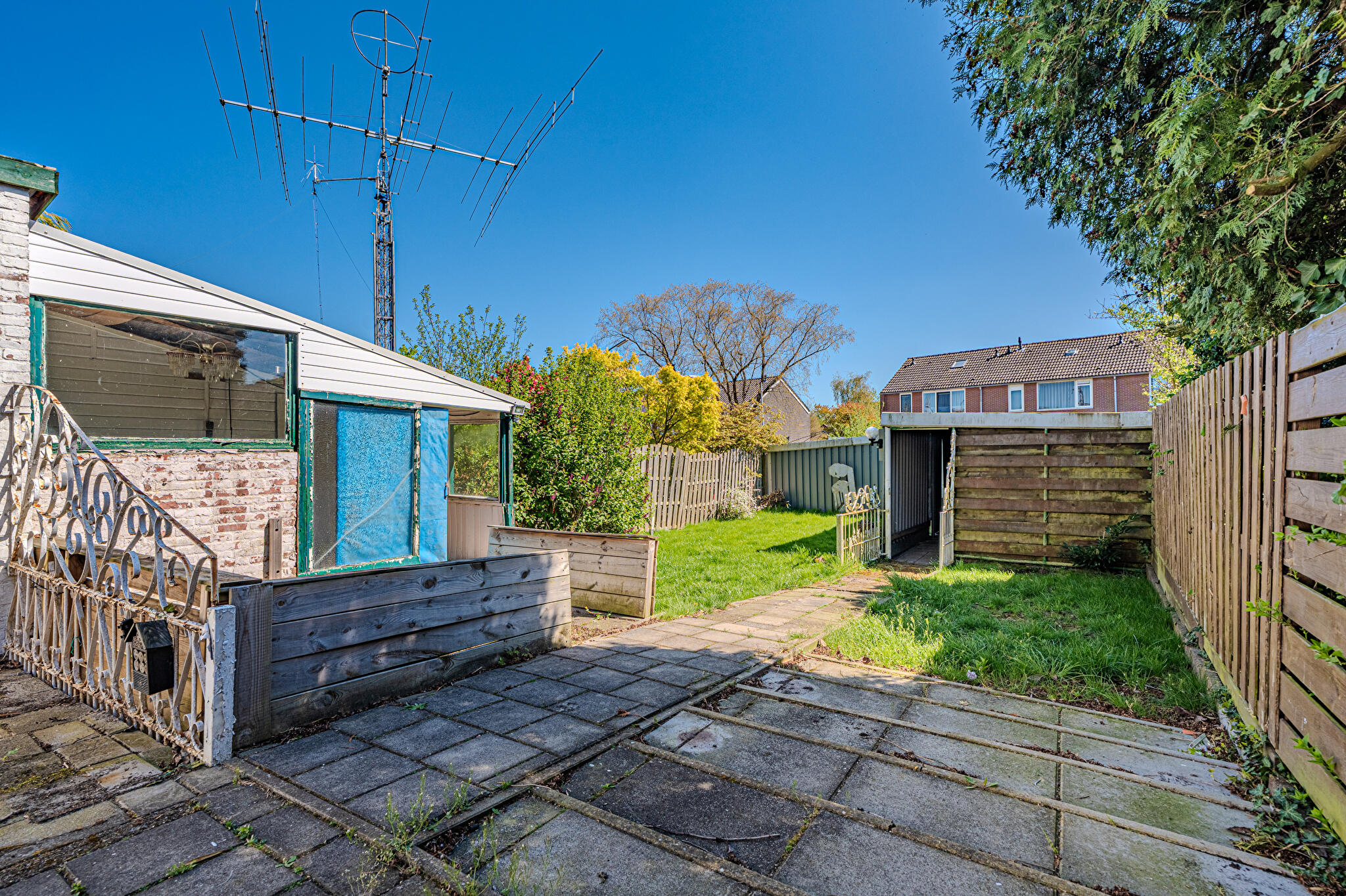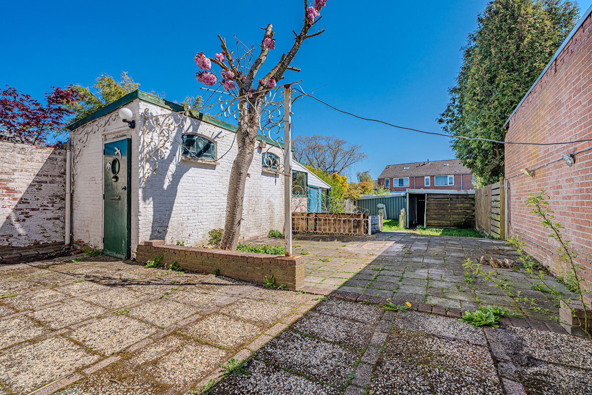 Buiten: ruime, zonnige achtertuin op het zuidoosten met volop mogelijkheden.