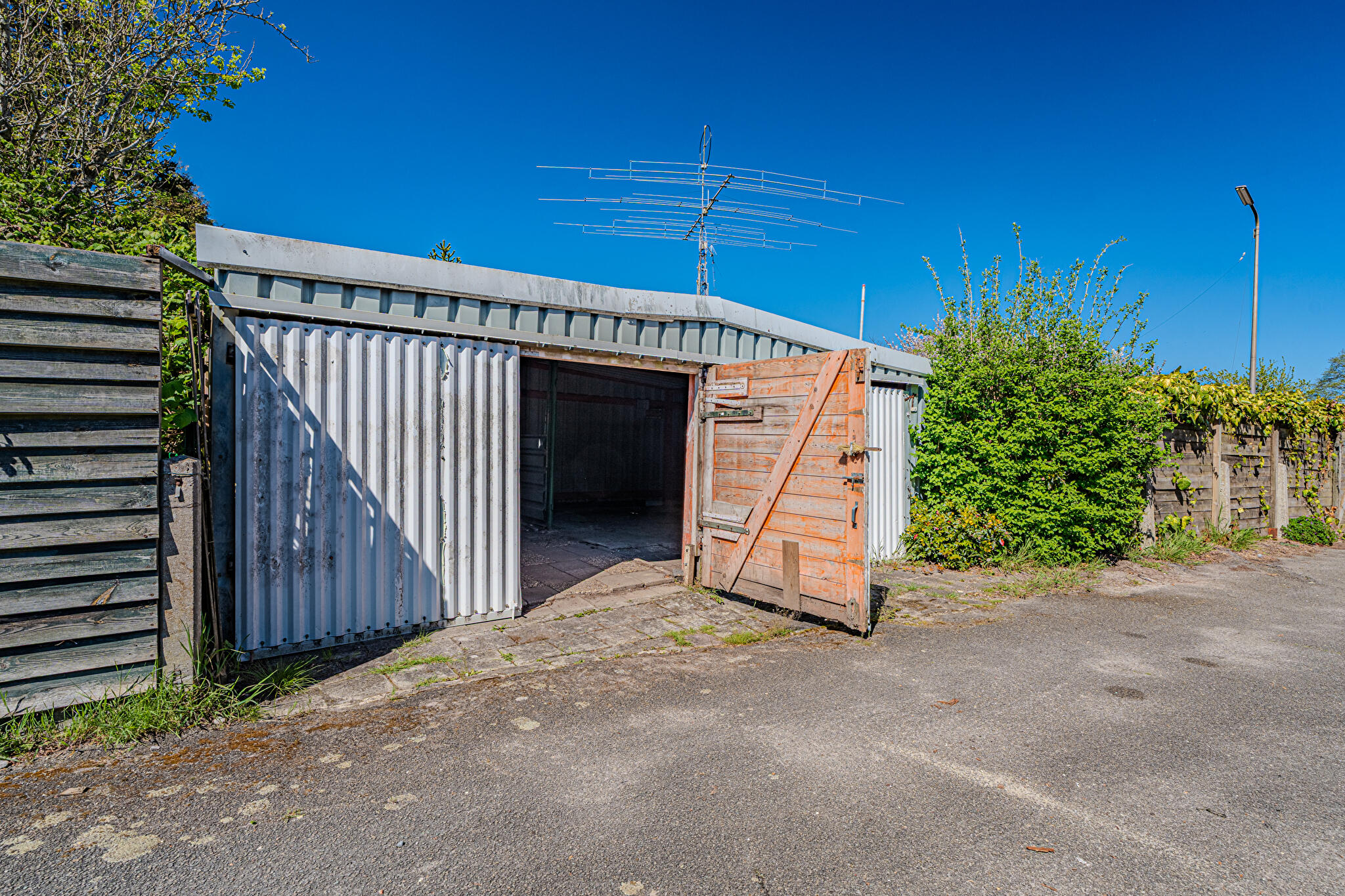 • vrijstaande garage van damwandprofielen, bereikbaar via de Heuvelstraat;