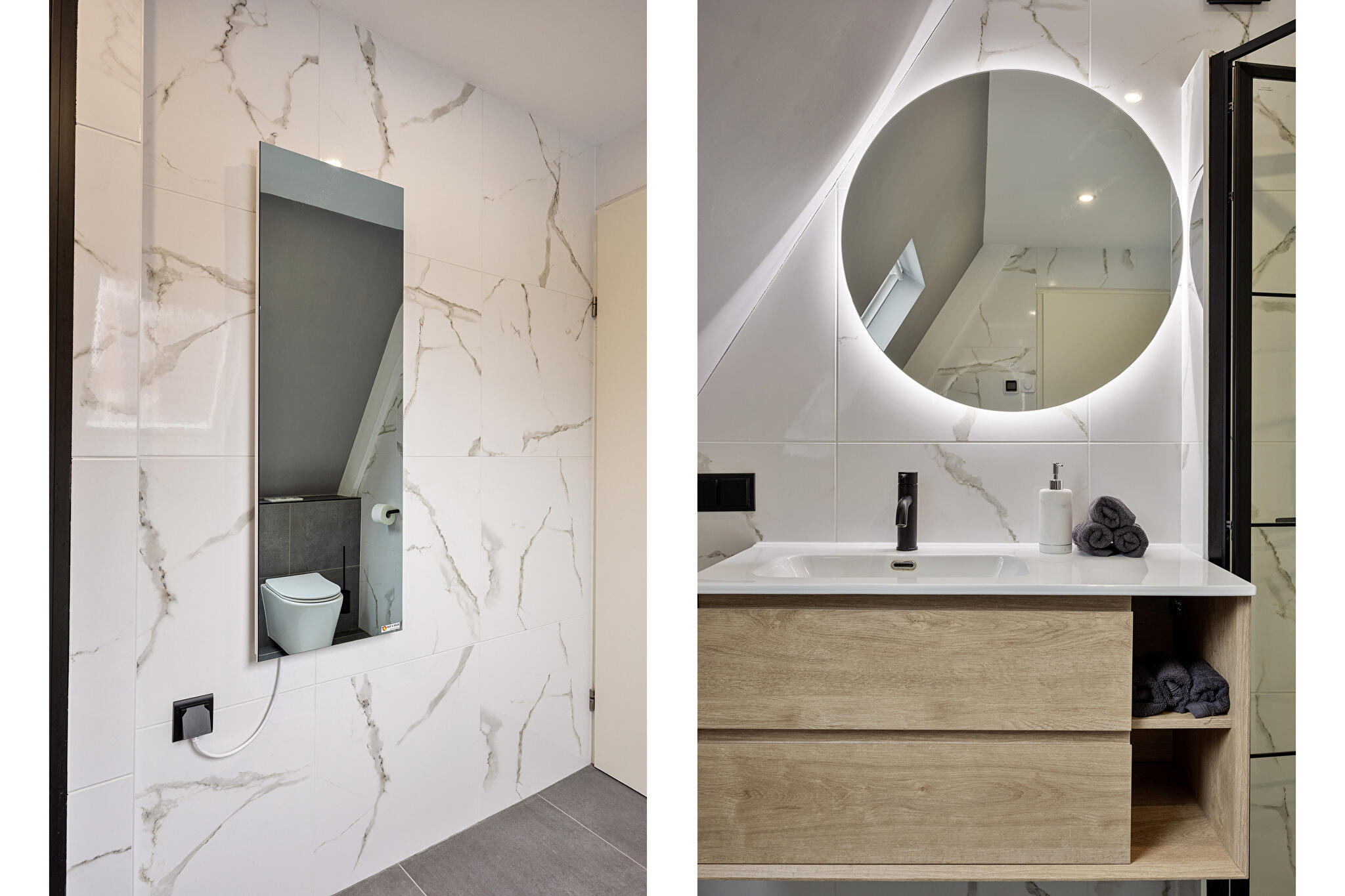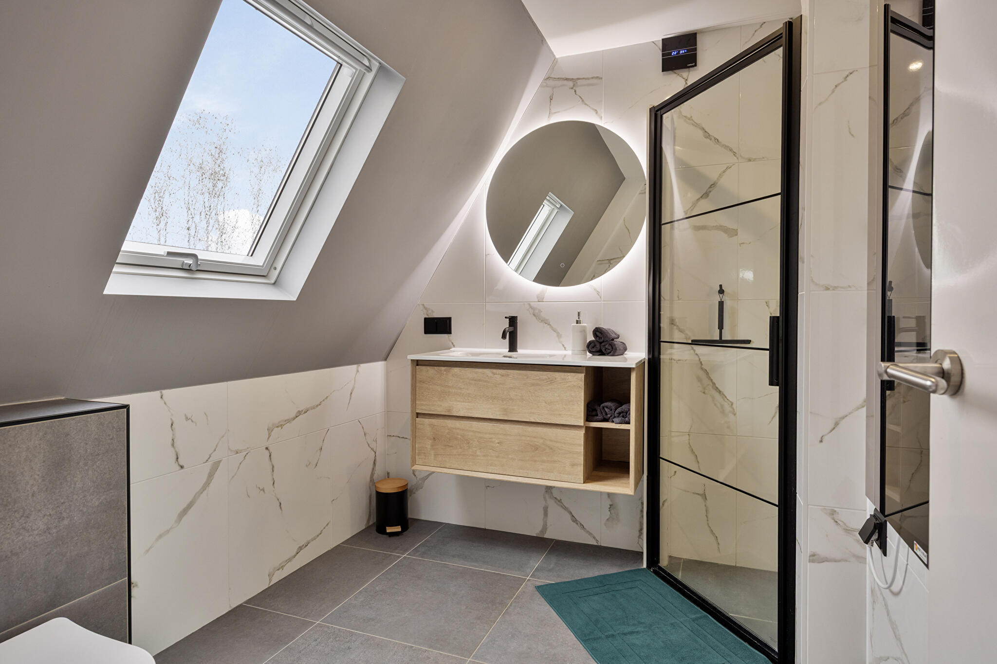 - badkamer op de verdieping is voorzien van vloerverwarming en infraroodpaneel;