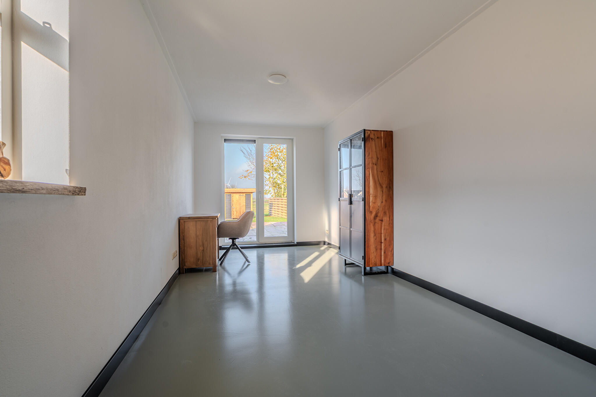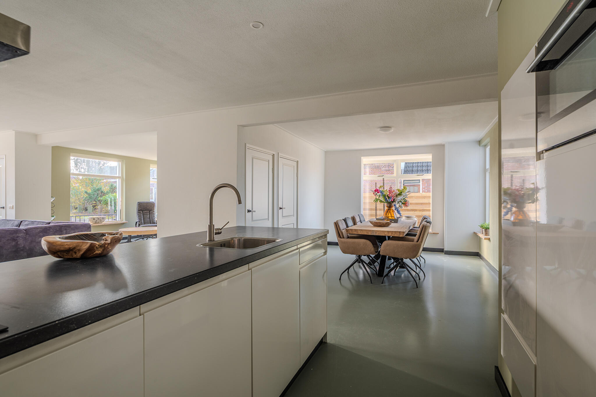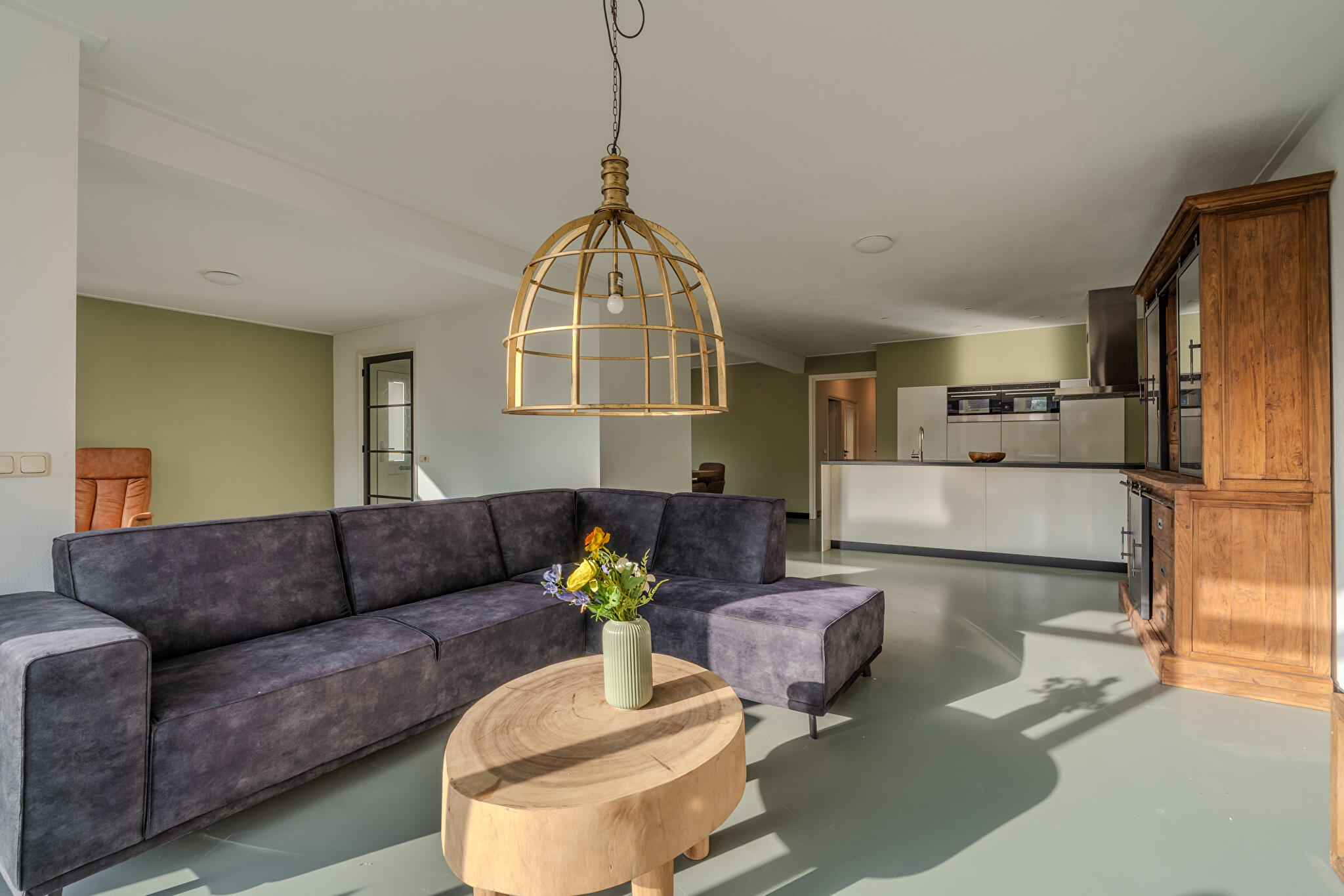 De gehele benedenverdieping is voorzien van een nieuwe, strakke vloer met vloerverwarming en een strakke wandafwerking.