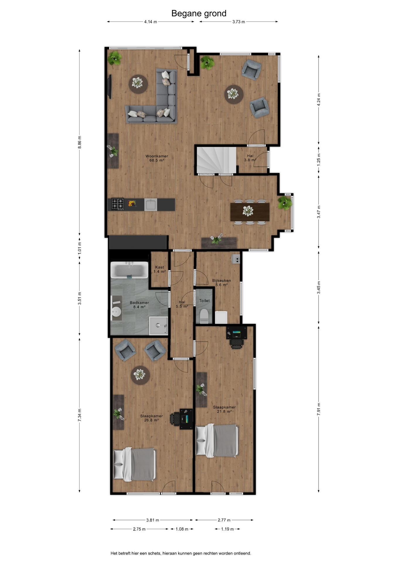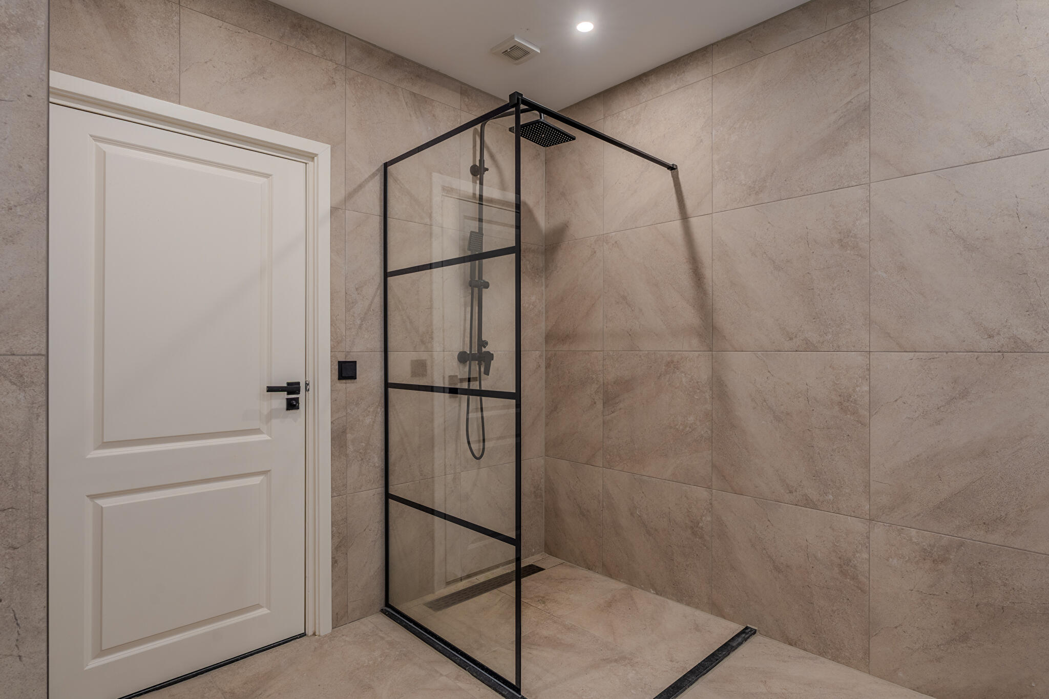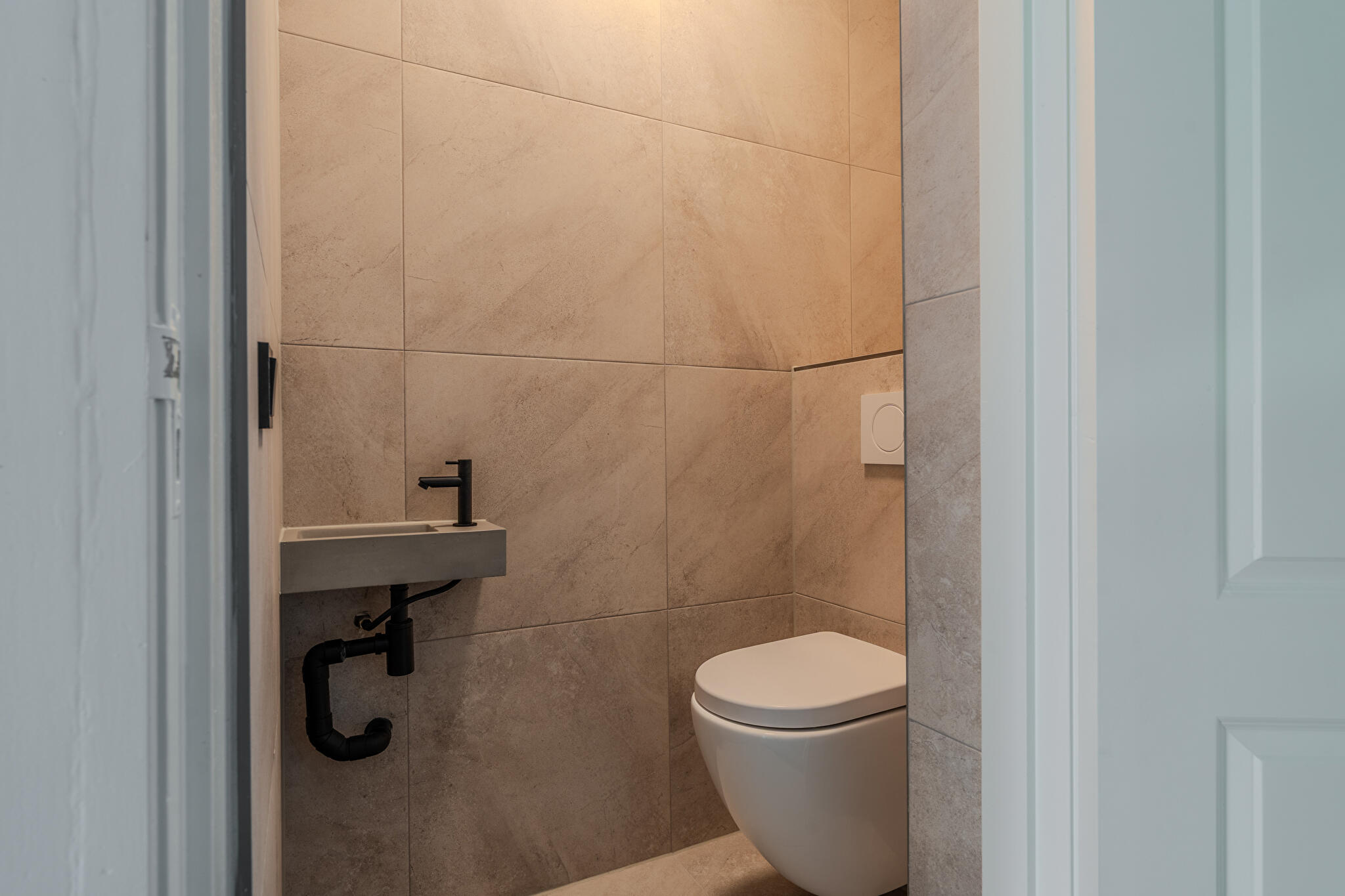 De gehele benedenverdieping is voorzien van een nieuwe, strakke vloer met vloerverwarming en een strakke wandafwerking.