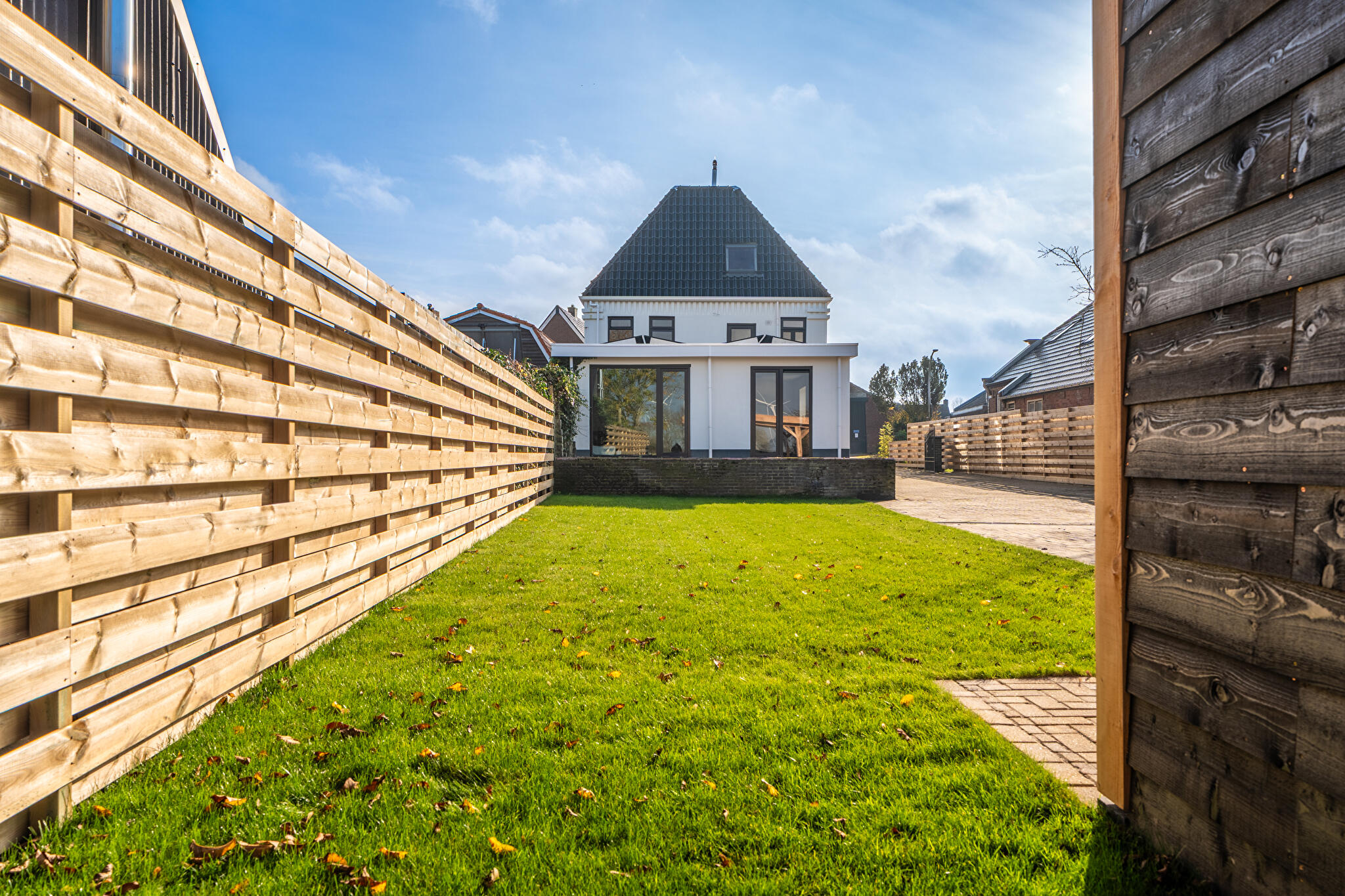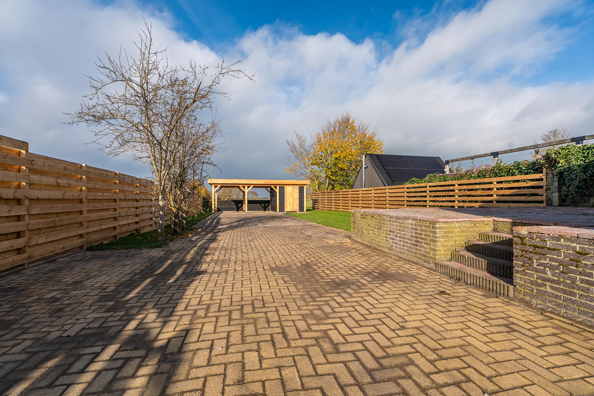 Buitenruimte: de oprit biedt plaats aan meerdere auto’s. De verzorgde achtertuin met gazon en ruime overkapping met schuurtje ligt op het zonnige zuiden en biedt volop privacy. Hier geniet je van rust, ruimte en een prachtig vrij uitzicht.