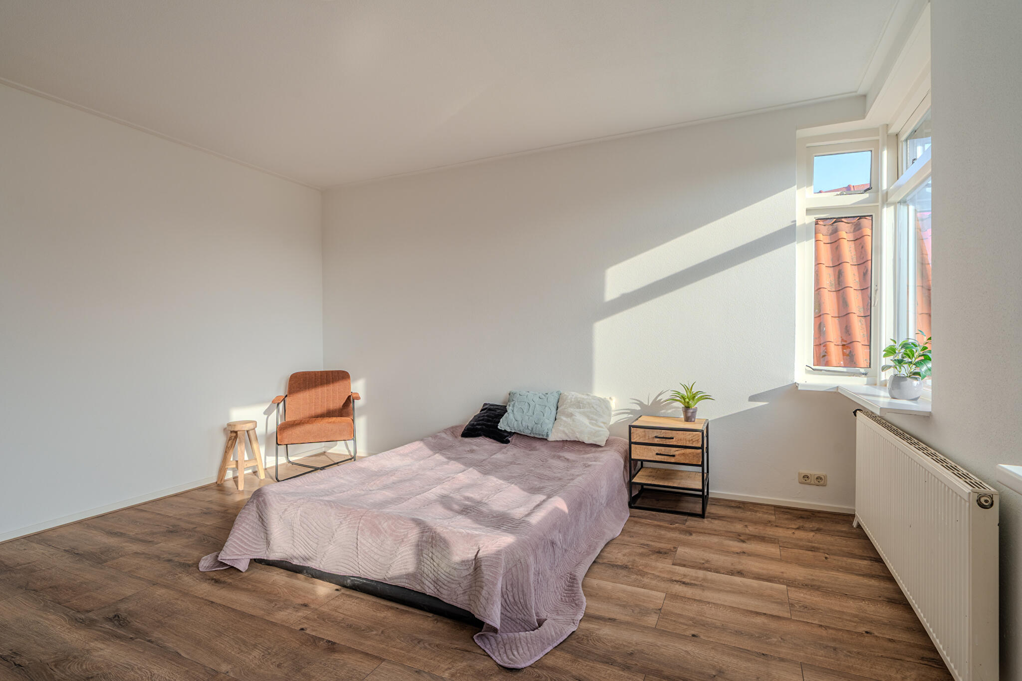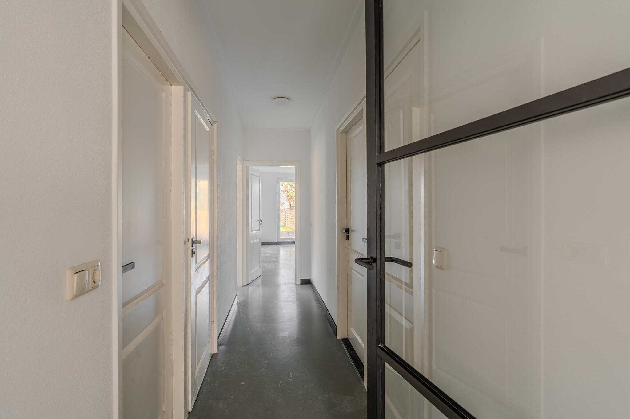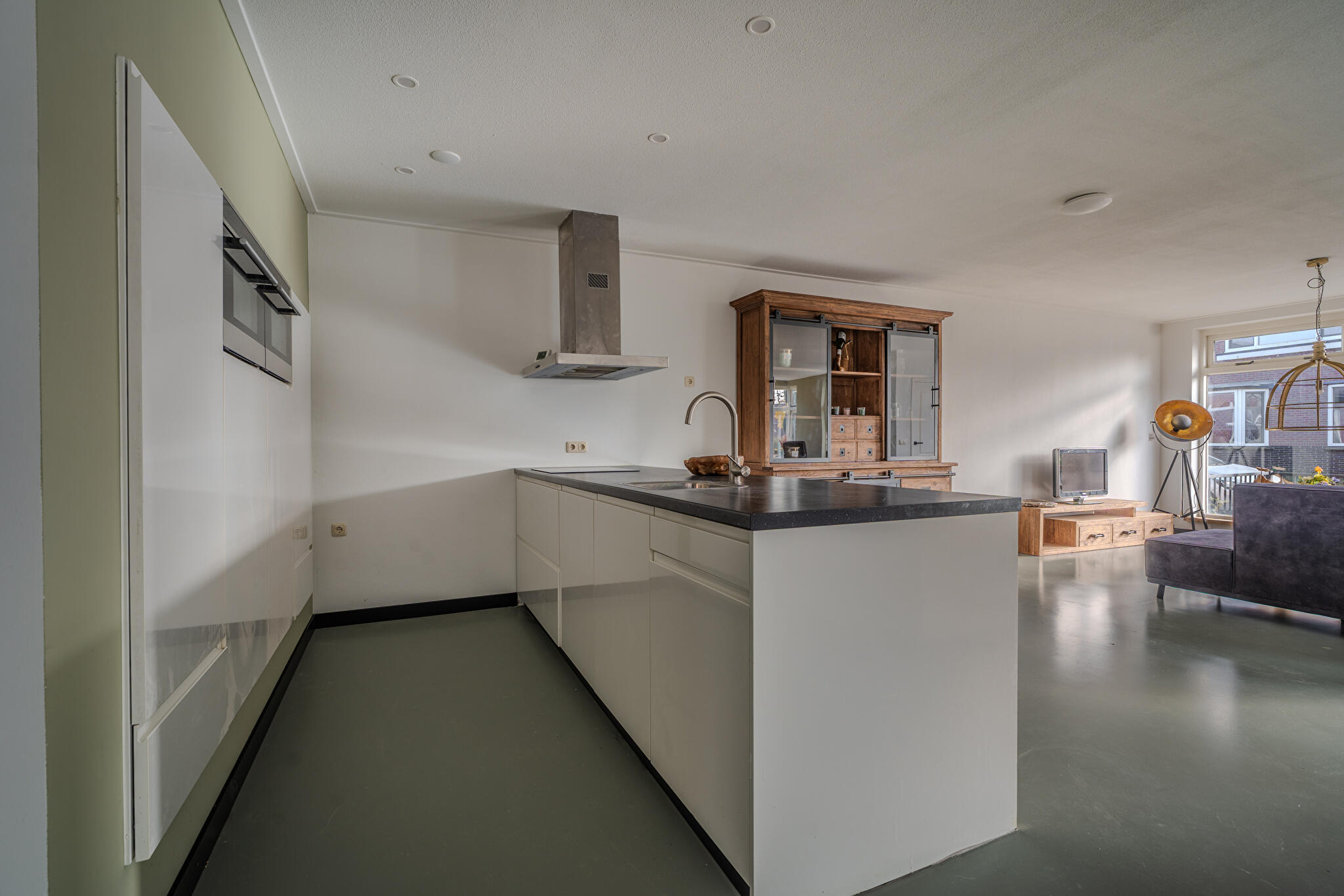 Begane grond: zijentree/hal met trapopgang naar de eerste verdieping en toegang tot de kelder. Lichte woonkamer voorzien van een strakke moderne vloer, moderne open keuken voorzien van luxe inbouwapparatuur en een gezellige eethoek. Aansluitend is de praktische bijkeuken bereikbaar met witgoedaansluiting, toiletruimte en tussenhal. Op de begane grond bevinden zich 2 slaapkamers met direct toegang tot het terras en diepe tuin, een geheel vernieuwde badkamer (2025) voorzien van ligbad, inloopdouche en stijlvol meubel met waskom, separaat toiletruimte met wandcloset en fonteintje.