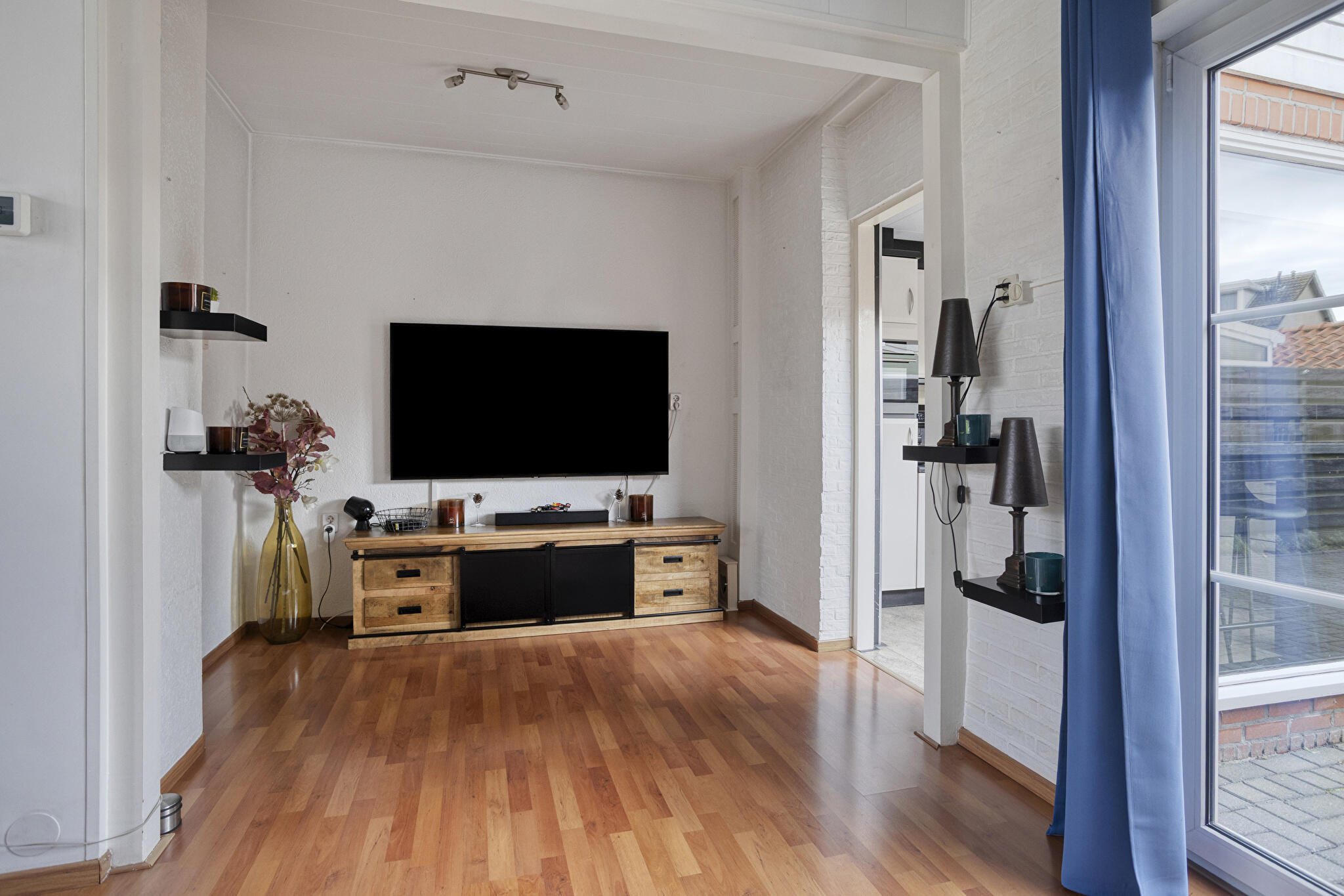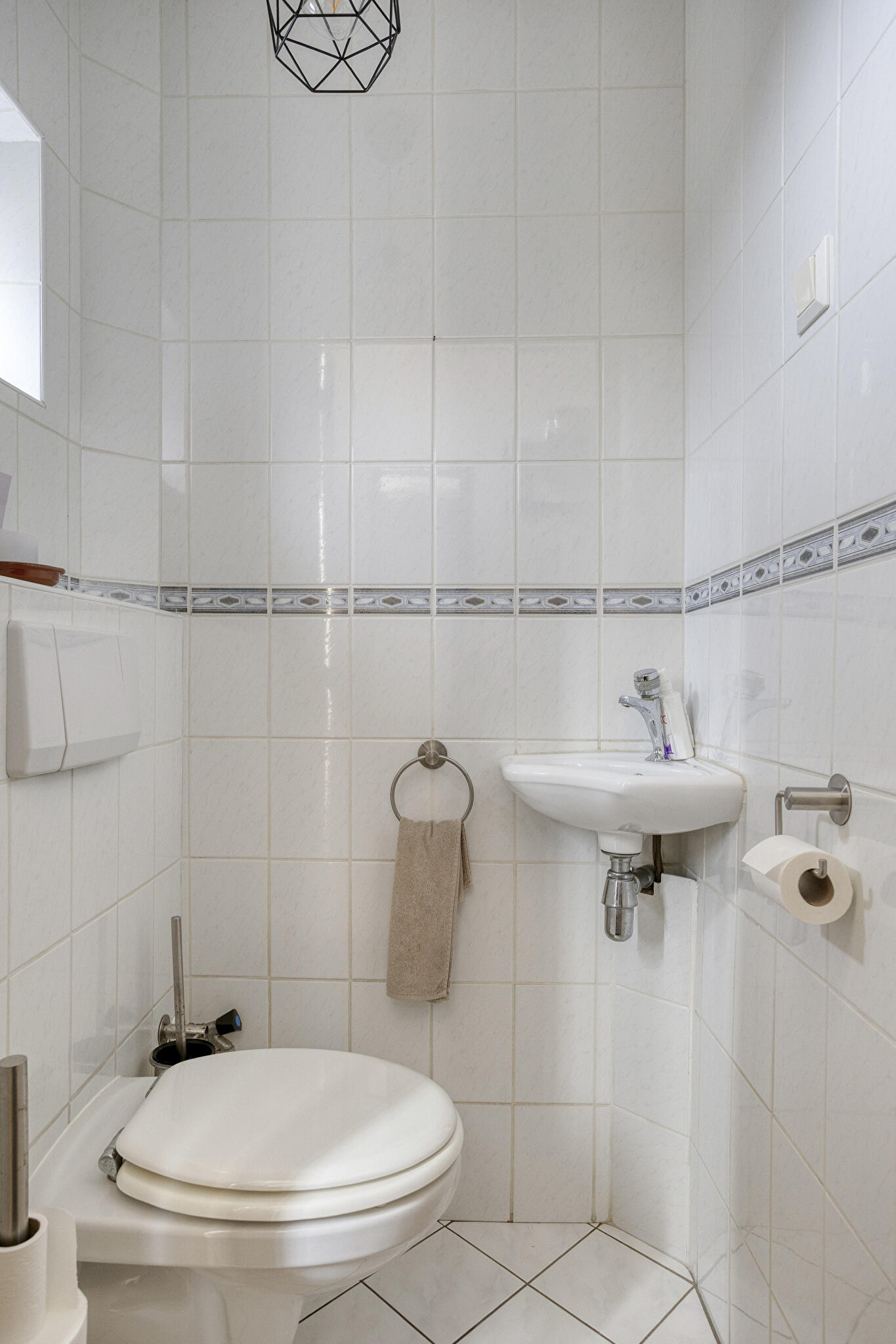 Begane grond: entree/hal met kelderruimte en trapopgang naar de verdieping, toiletruimte voorzien van wandcloset en fonteintje, lichte woonkamer voorzien van laminaatvloer en openslaande deuren naar het terras, half open keuken voorzien diverse inbouwapparatuur (o.a. 5-pits gaskookplaat, afzuigsysteem, koelkast, vaatwasser en combi-oven) en toegang tot de achtertuin.