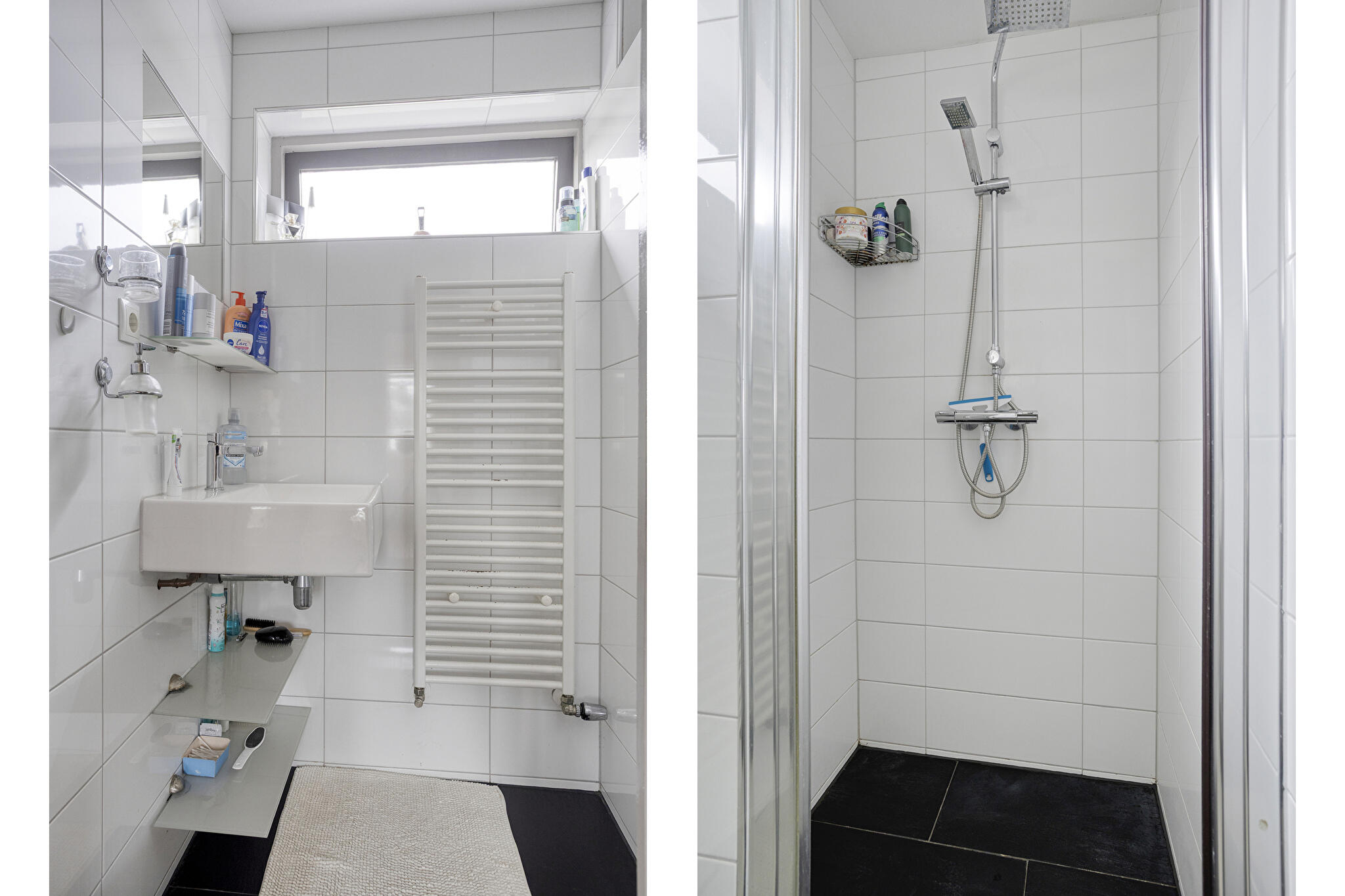 Eerste verdieping: overloop, totaal 3 slaapkamer waarvan één voorzien van witgoedaansluiting, badkamer voorzien van douche, wastafel en designradiator.