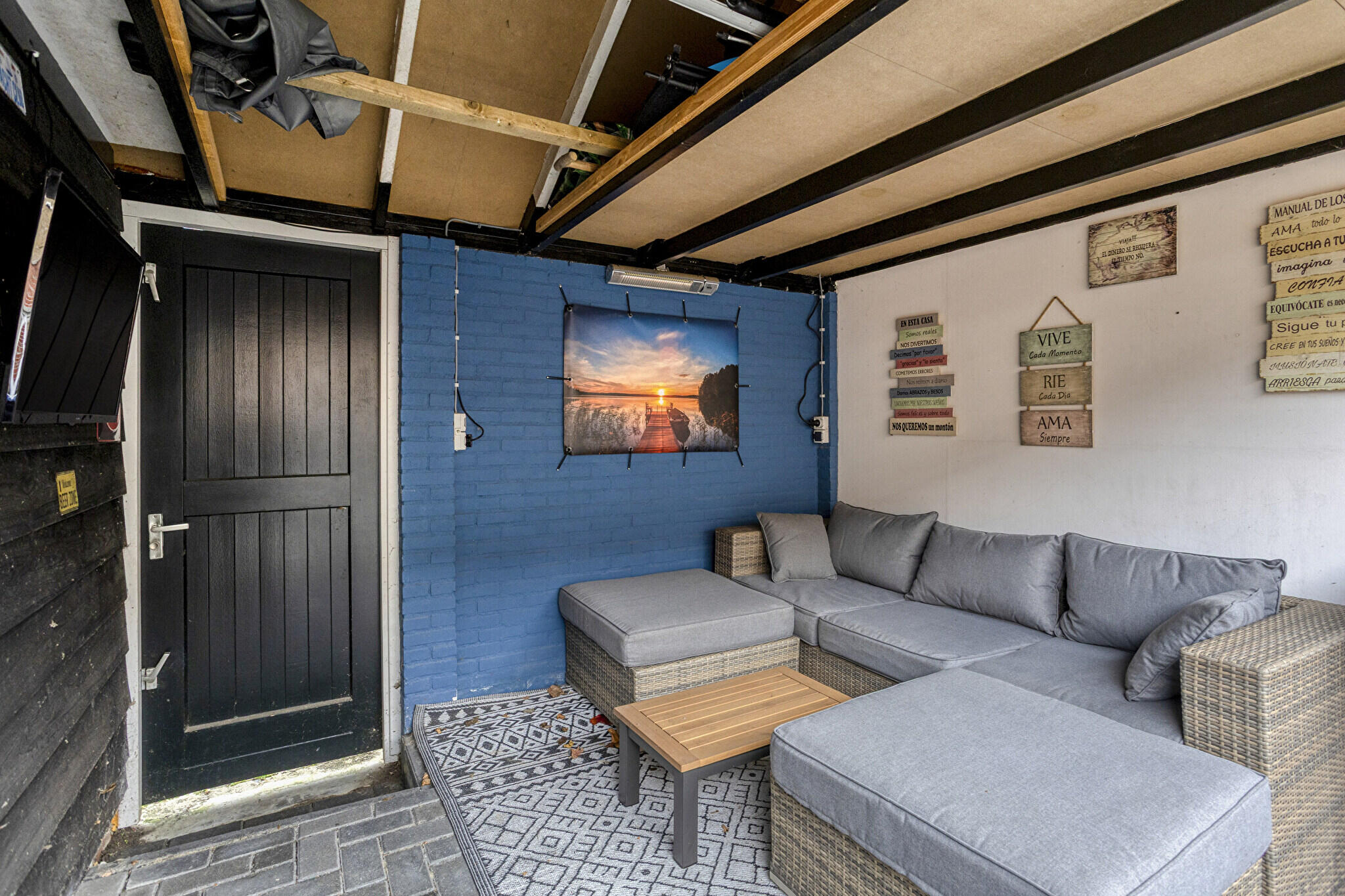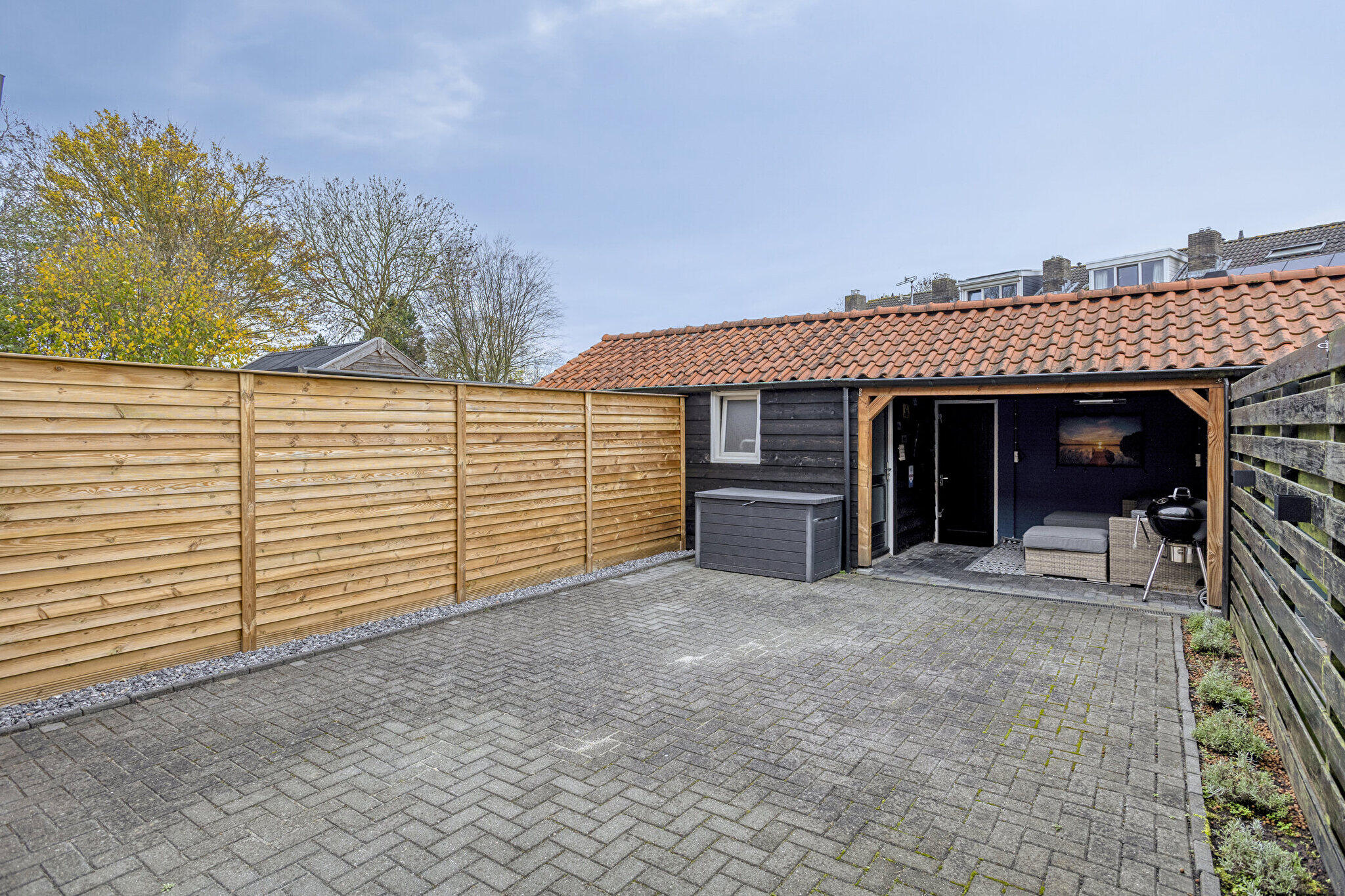 Tuin: de onderhoudsvrije achtertuin is gelegen op het oosten en heeft een eigen achterom. Achterin de tuin staat een vrijstaande houten berging met sfeervolle overkapping.