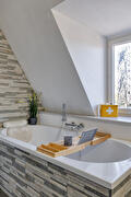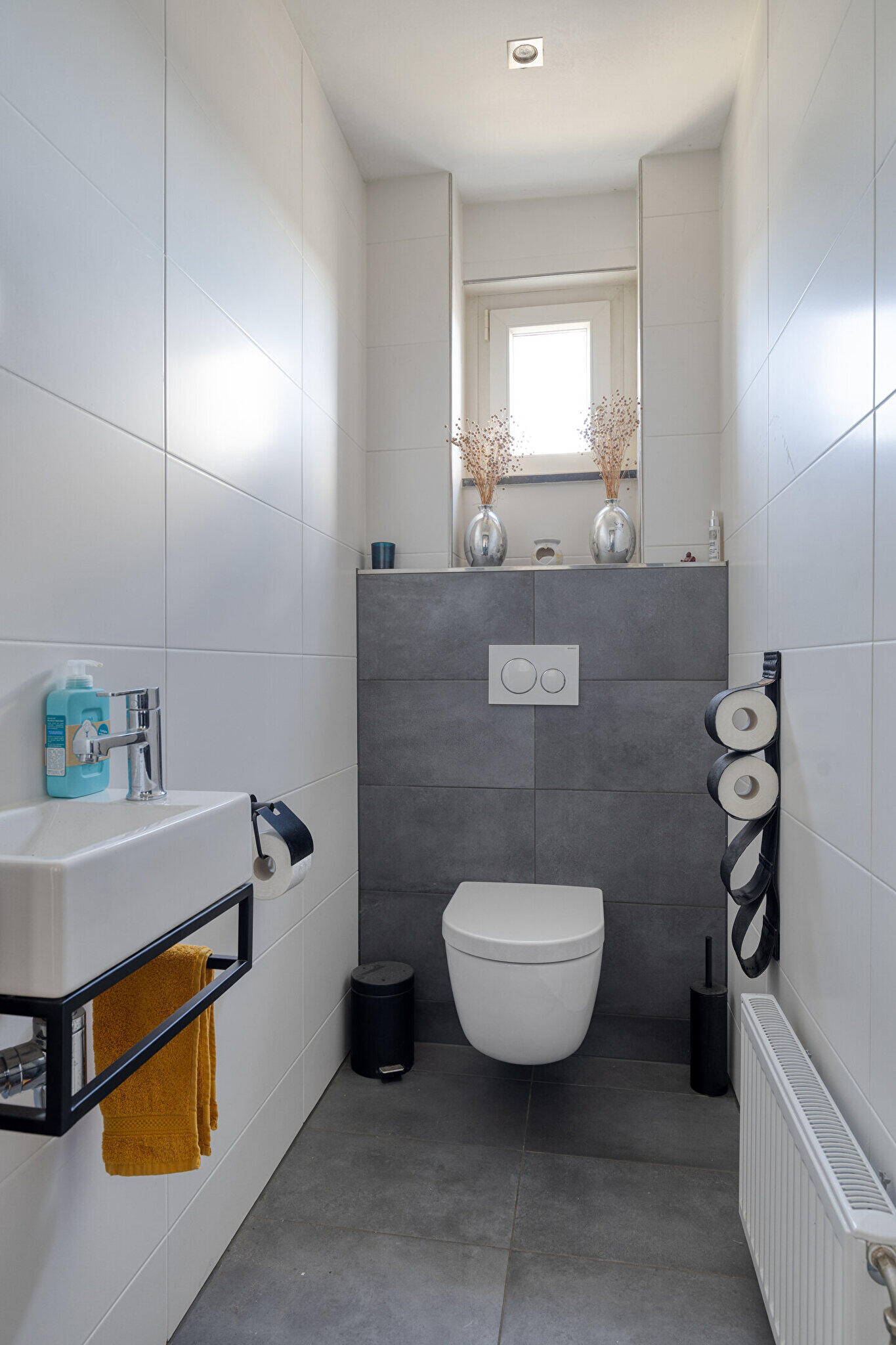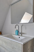 Eerste verdieping: overloop, ruime toiletruimte, 2 slaapkamers met veel vaste kast-/bergruimte, moderne badkamer met inloopdouche, ligbad, vaste wastafel met meubel en designradiator.