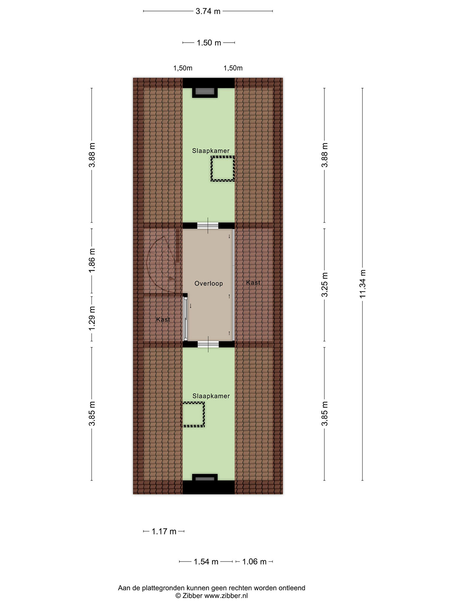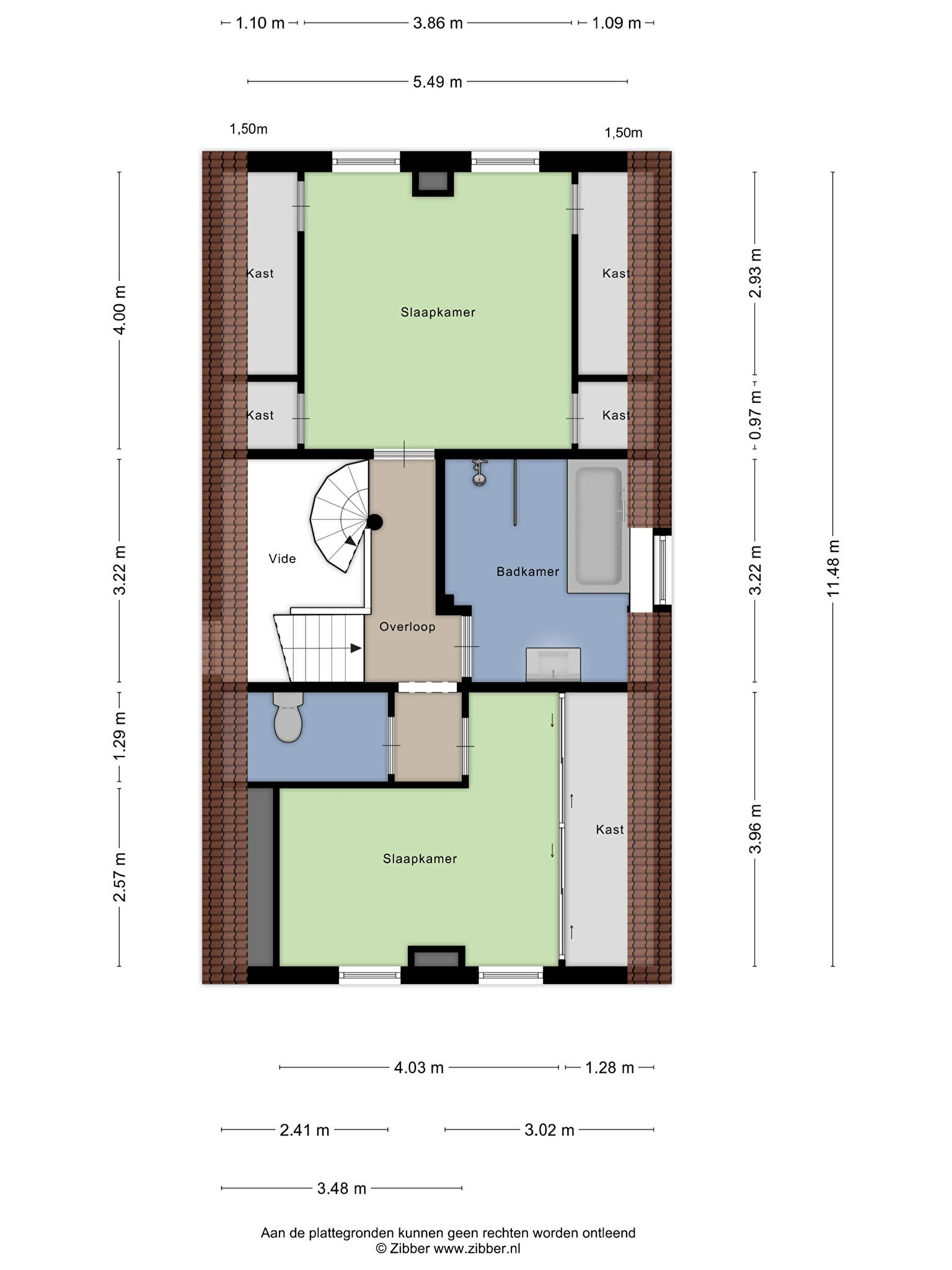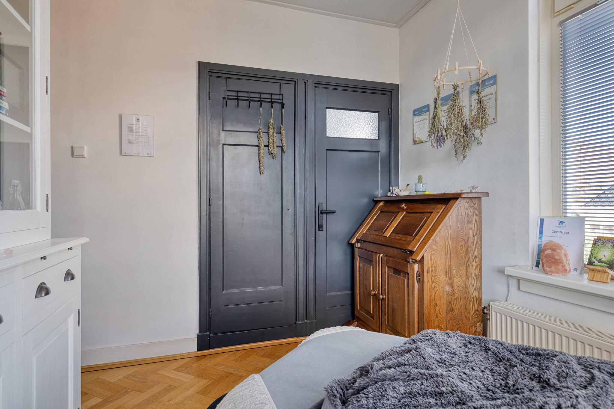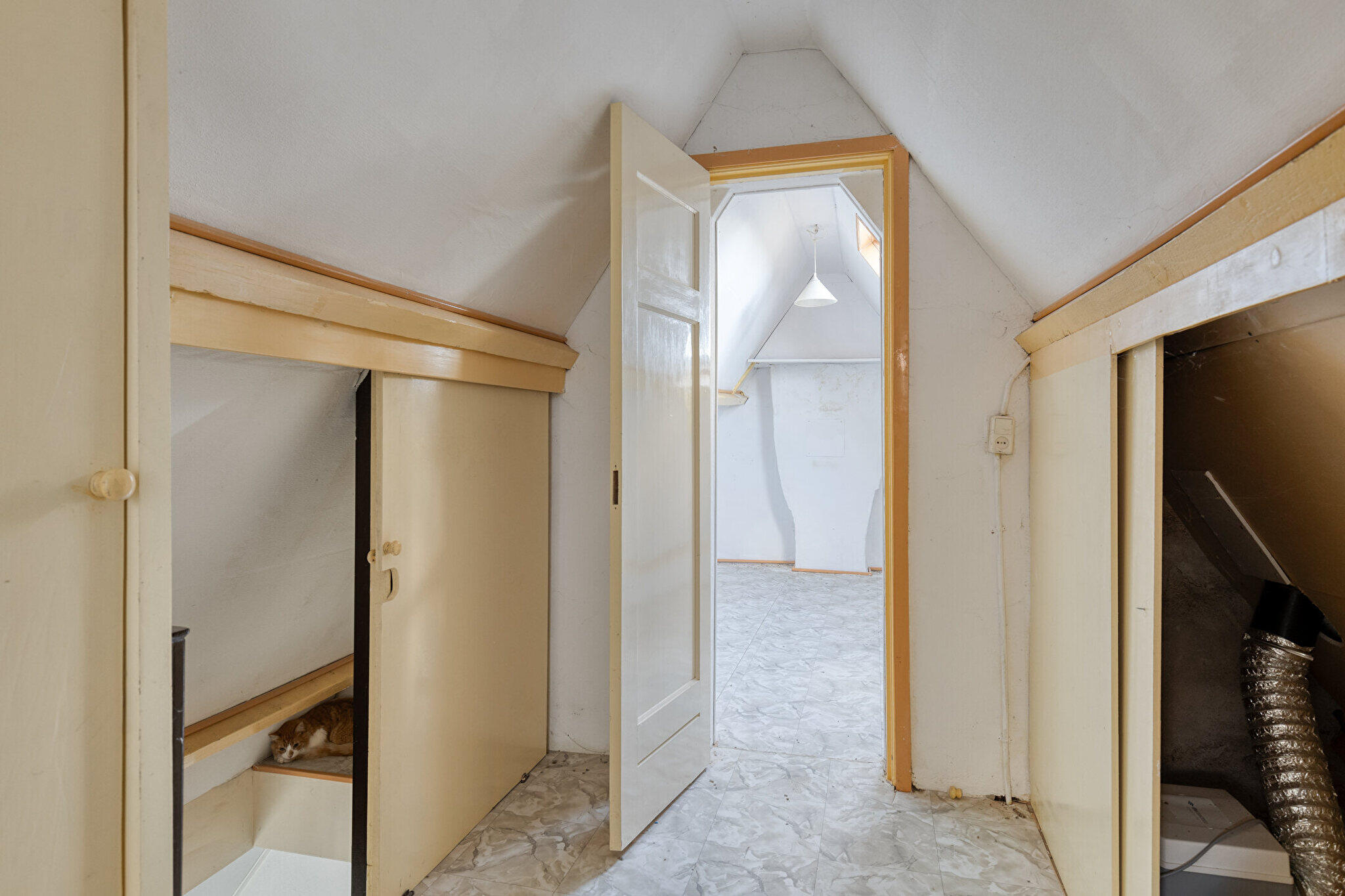 Tweede verdieping: bereikbaar middels wenteltrap, overloop met vaste kasten/knieschotten, 2 slaapkamers (beiden met dakraam).
