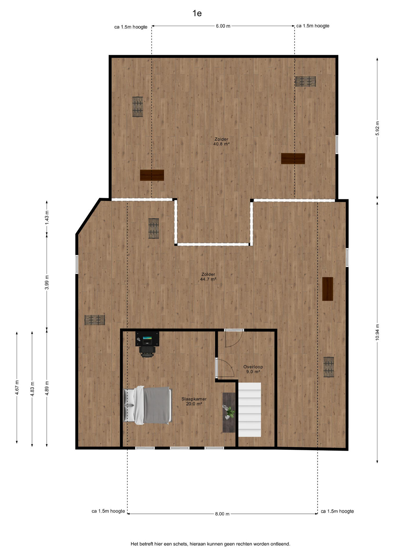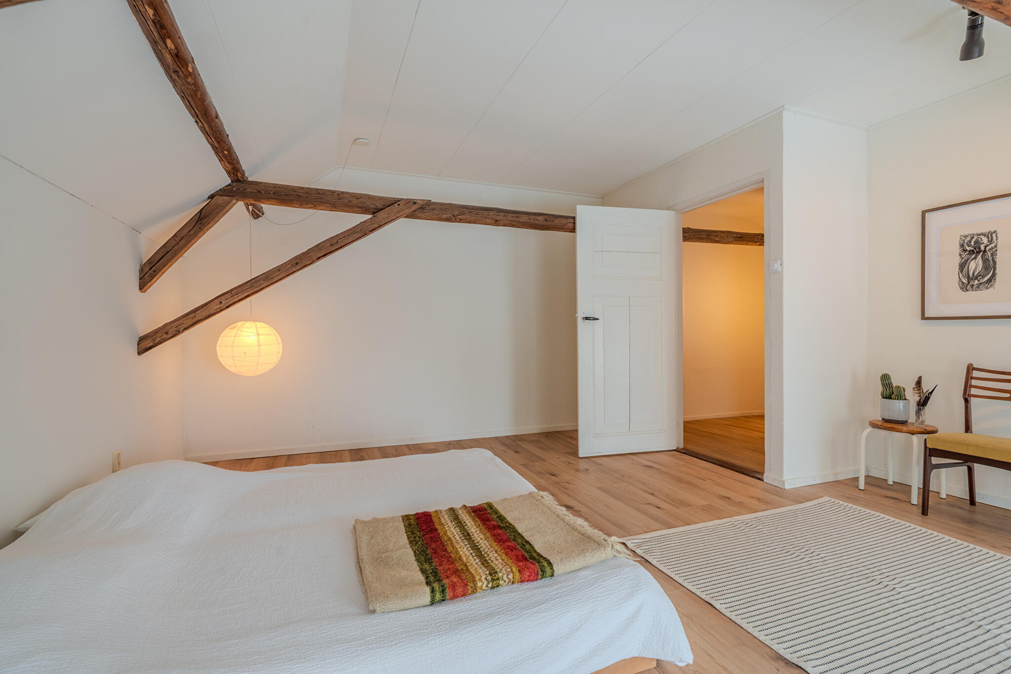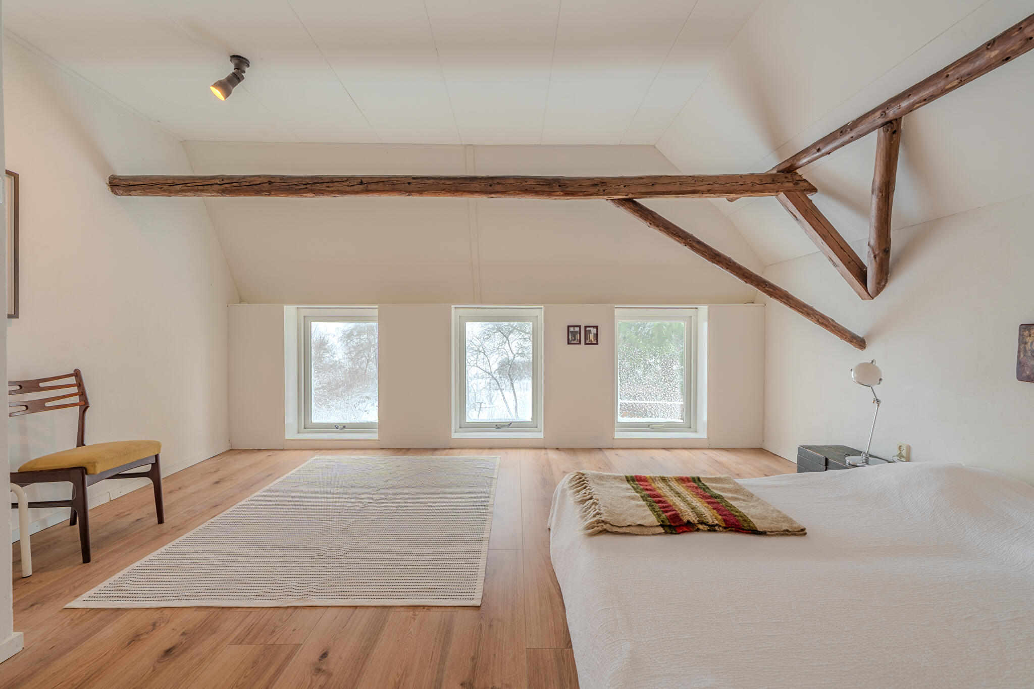 Verdieping: middels vaste trap bereikbaar, overloop, royale slaapkamer met uitzicht over de achtertuin, grote zolderruimte met diverse mogelijkheden.