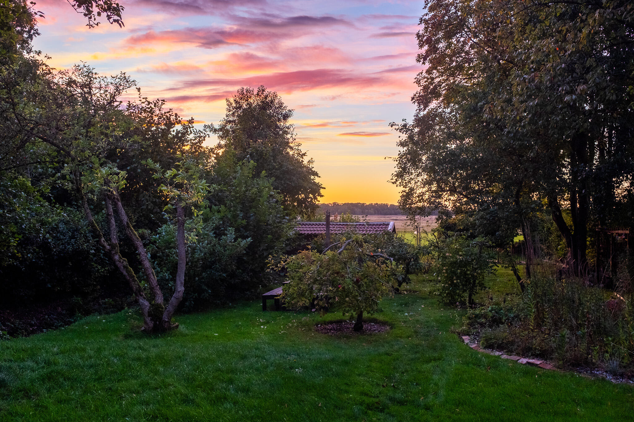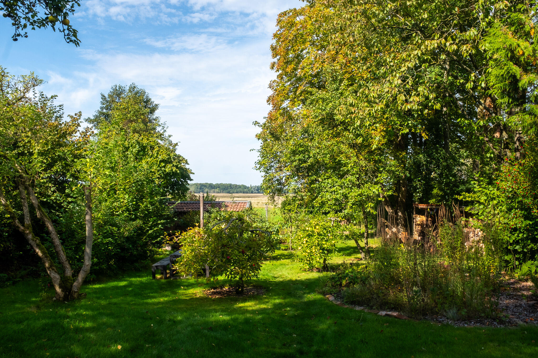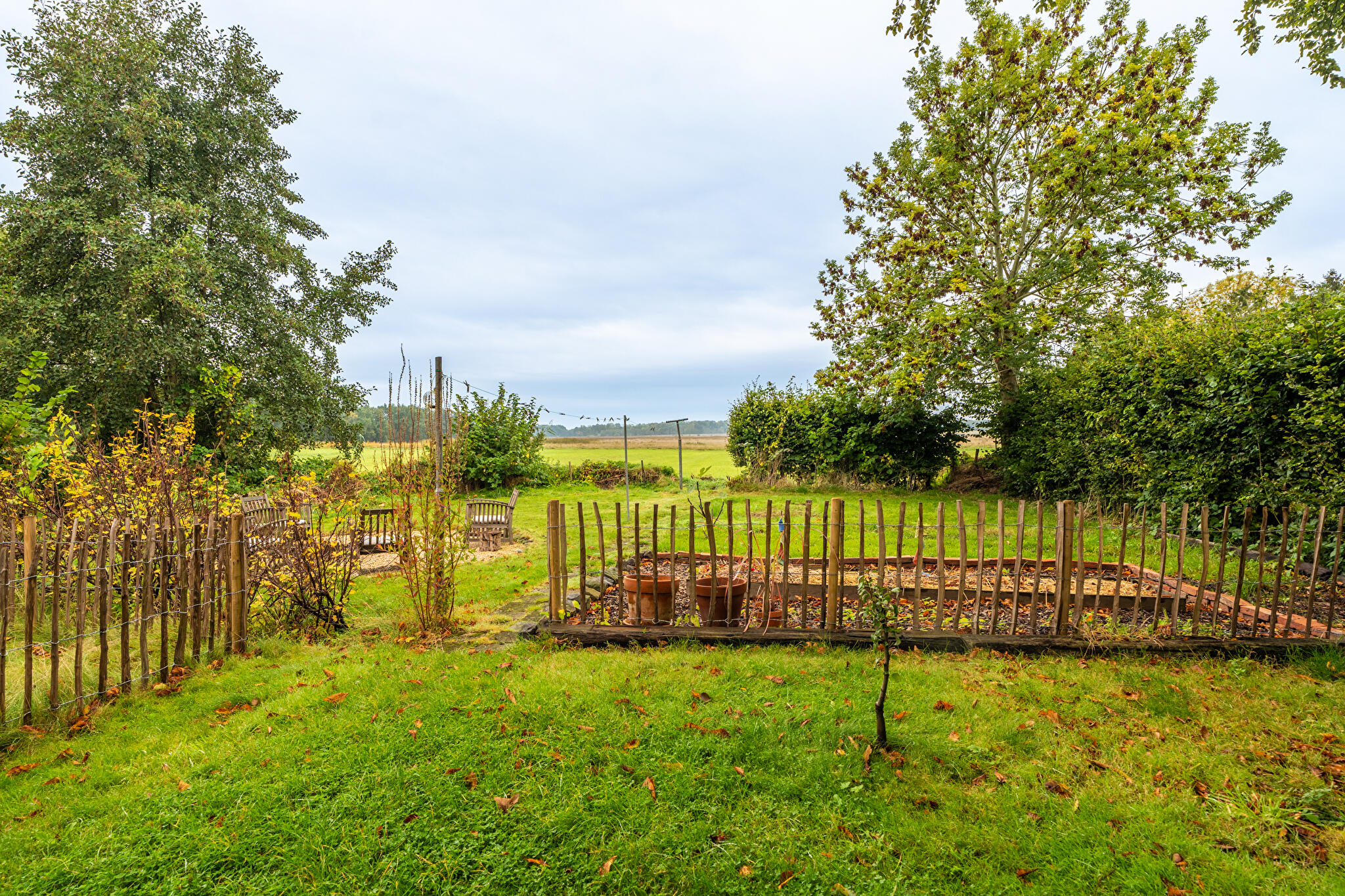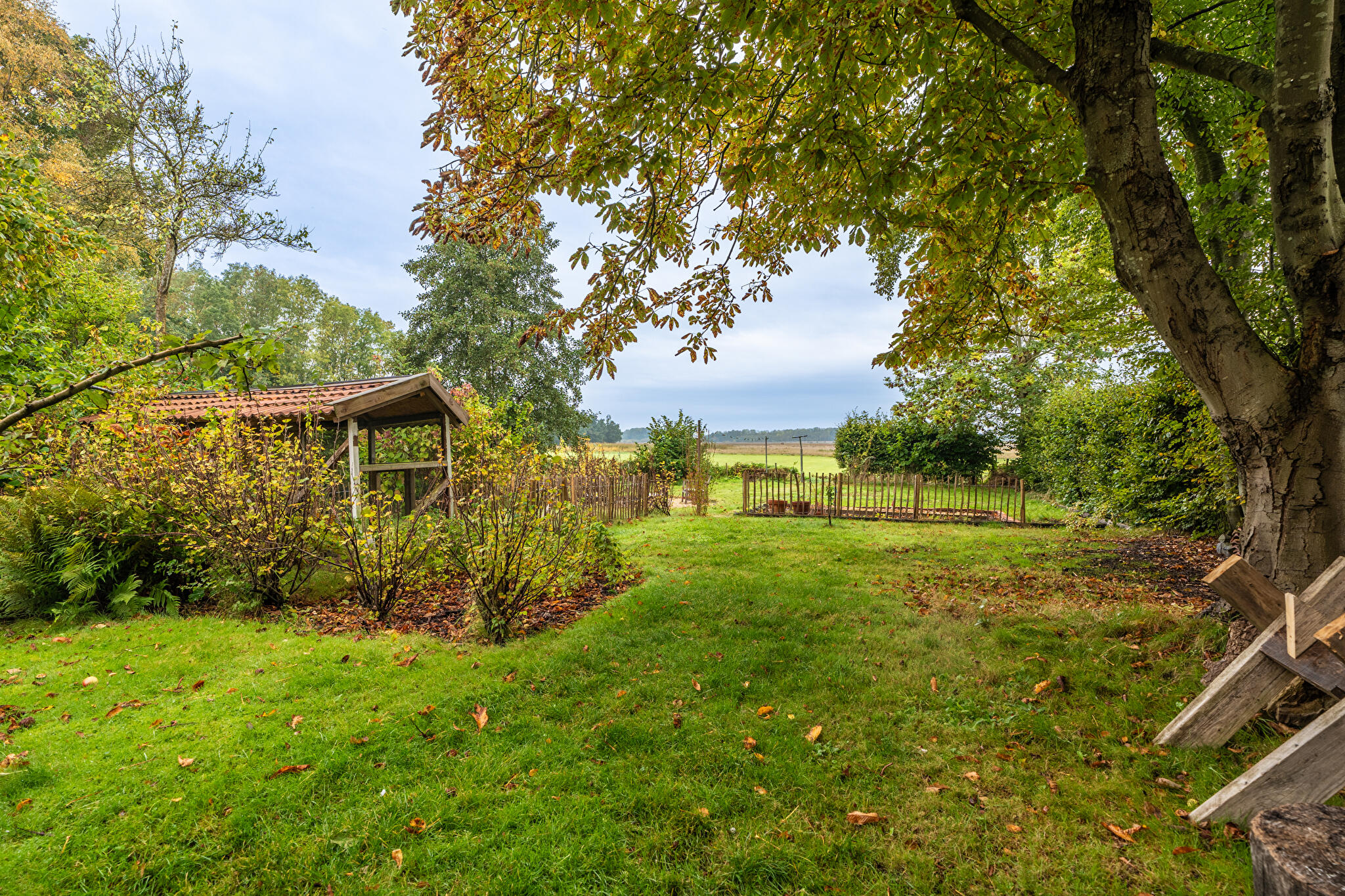 Buiten: de diepe, goed onderhouden achtertuin biedt volop mogelijkheden voor gezellige zithoekjes/terrassen, maar er is ook voldoende ruimte voor een moestuin en/of kas. Daarnaast grenst de tuin aan het natuurgebied 'De Tjamme', hier geniet u dagelijks van weidse vergezichten, fluitende vogels en de seizoenen die aan u voorbijtrekken.