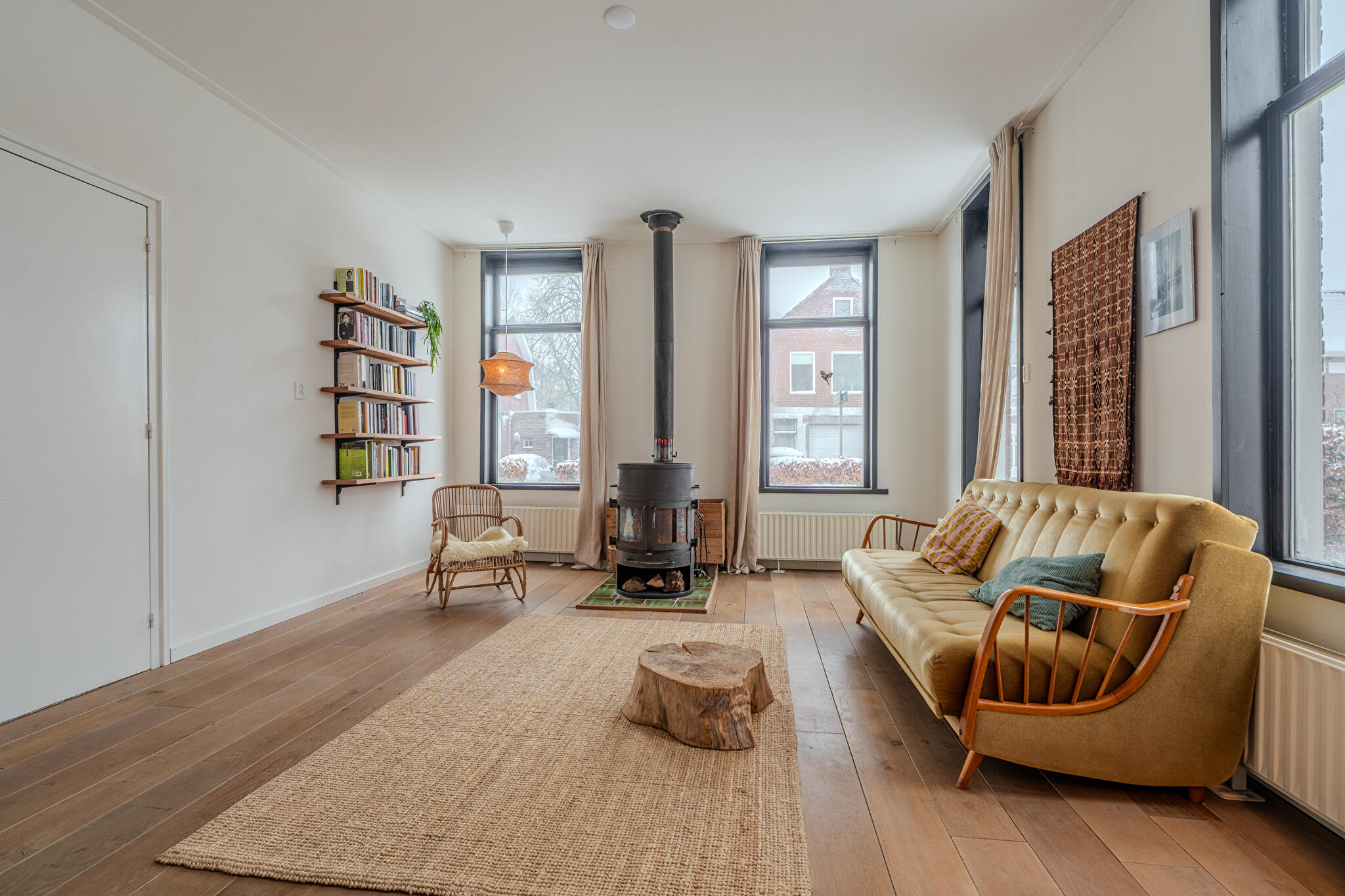Begane grond: entree aan voorzijde van de woning, hal, woonkamer voorzien van houtkachel, doorgang naar de woonkeuken met keukeninrichting voorzien van diverse inbouwapparatuur, totaal 3 slaapkamers (waarvan 1 met vaste kast), moderne toiletruimte met wandcloset en fonteintje, moderne badkamer met inloopdouche, wastafel met meubel en designradiator, open doorgang naar bijkeuken met witgoedaansluitingen, hal/gang met achter-entree, trapopgang en toegang tot de riante kelderruimte en garage.