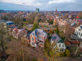 Binnen beschikt de woning over royale leefruimtes onder meer een woonkamer en suite met hoge plafonds, karakteristieke details en een warme, uitnodigende sfeer; denk aan paneeldeuren, glas-in-loodramen, sierlijsten, ruime kamers, sfeerhaard met schouw en authentieke elementen die behouden zijn gebleven. De lichtinval door de hoge ramen en schuifpui maken iedere ruimte bijzonder prettig om in te verblijven. De begane grond beschikt tevens over een woonkeuken, provisie kelder en bijkeuken. Via de statige trap bereikt u de royale overloop met vide, die zorgt voor een ruimtelijk en licht geheel. Op deze verdieping bevinden zich in totaal vier slaapkamers, waarvan drie directe toegang bieden tot het charmante balkon aan de voorzijde en/of achterzijde, 2 slaapkamers beschikken over een eigen doorgang naar de badkamer welke is voorzien van een hoekbad, toilet en bidet. Op de tweede verdieping bevindt zich een vijfde slaapkamer, met directe toegang naar de tweede badkamer, voorzien van douche, wandcloset, designradiator en wastafel met meubel. Tevens heeft deze 5e slaapkamer toegang tot het plat dak aan de achterzijde van de woning. Ook is er een ruime bergzolder, perfect voor het opbergen van seizoensspullen of het creëren van extra hobbyruimte.