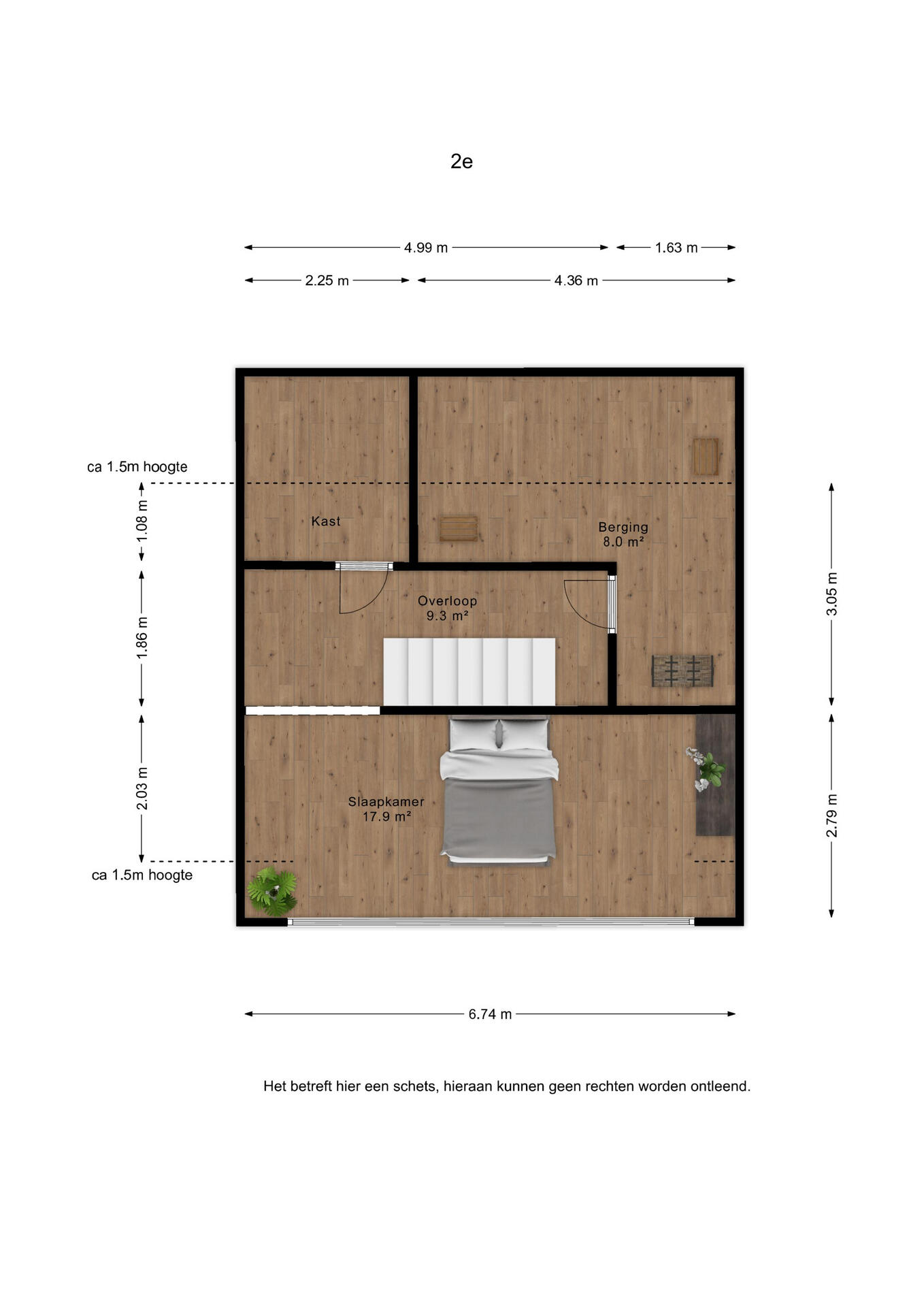 Tweede verdieping: bereikbaar middels vaste trap, ruime overloop, nog 2 slaapkamers waarvan 1 slaapkamer met brede (kunststof)dakkapel, bergruimte.