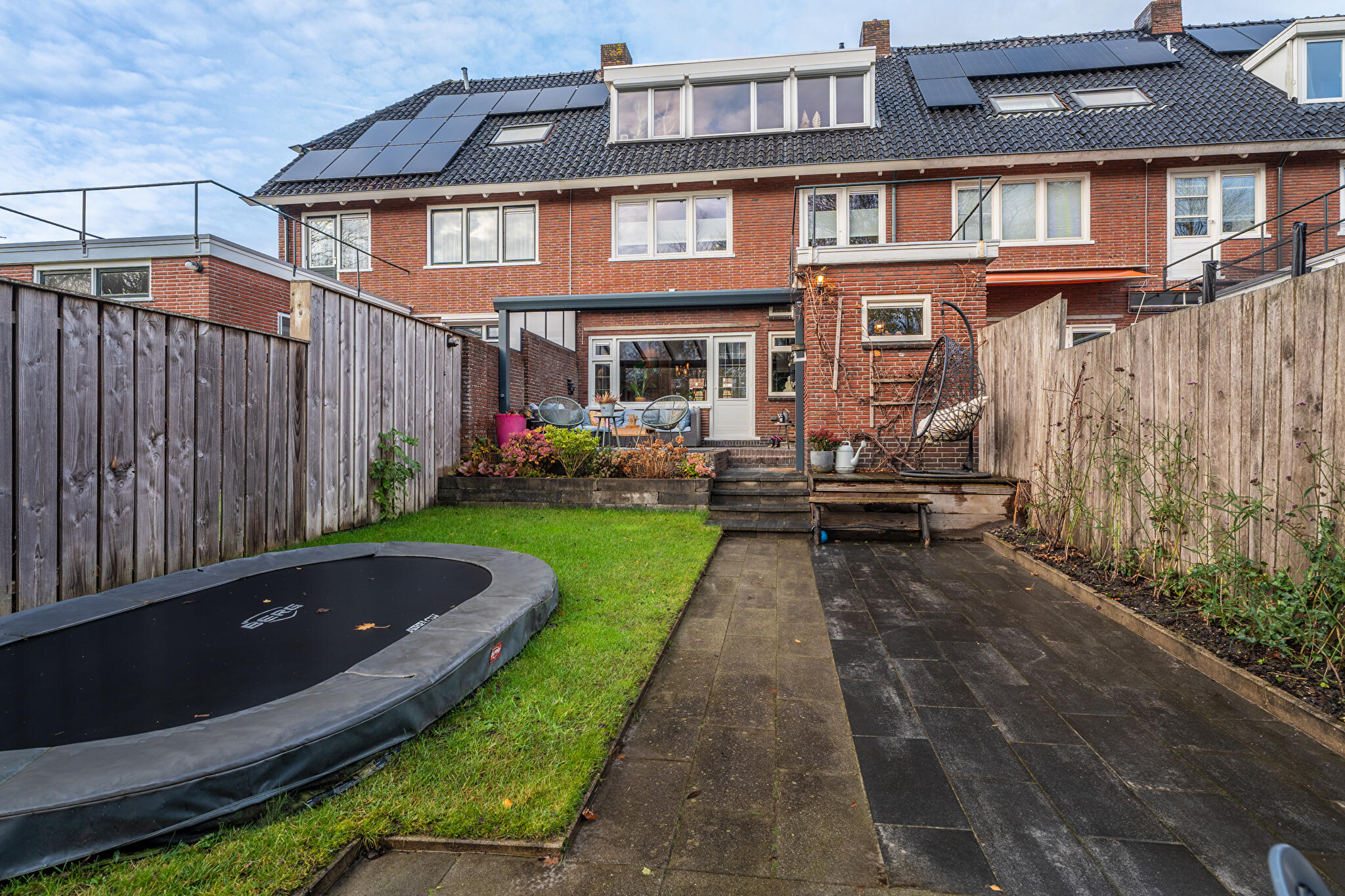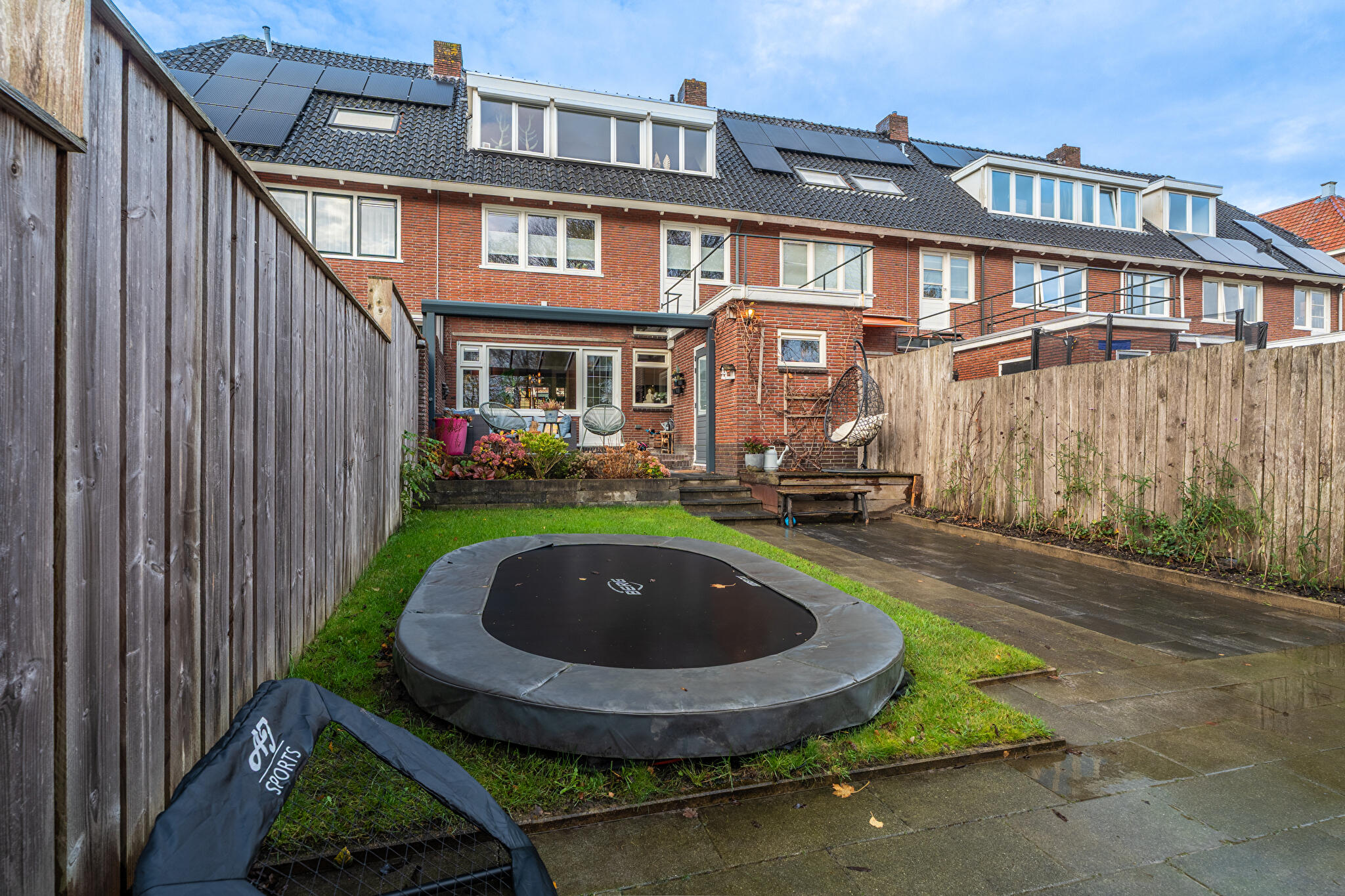 Binnen vind je maar liefst vijf slaapkamers, waardoor er ruimte genoeg is voor een gezin, thuiswerk of hobby’s. Buiten geniet je van een verzorgde, besloten stadstuin op het zuiden – een heerlijke plek voor relaxte zomerdagen. Extra pluspunt: de vrijstaande stenen berging, ideaal voor fietsen, tuinspullen en opslag.