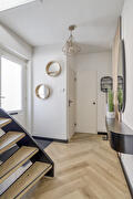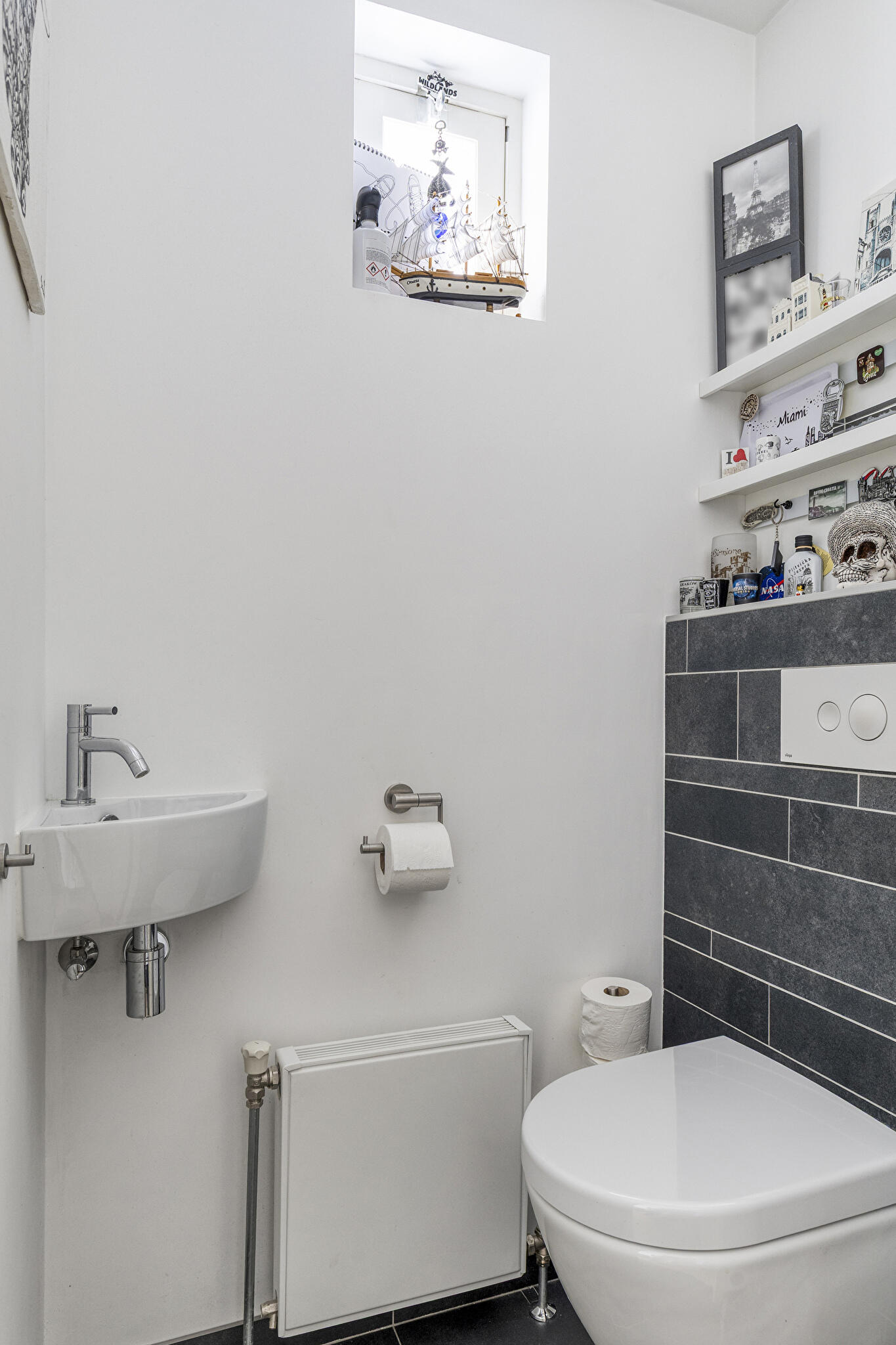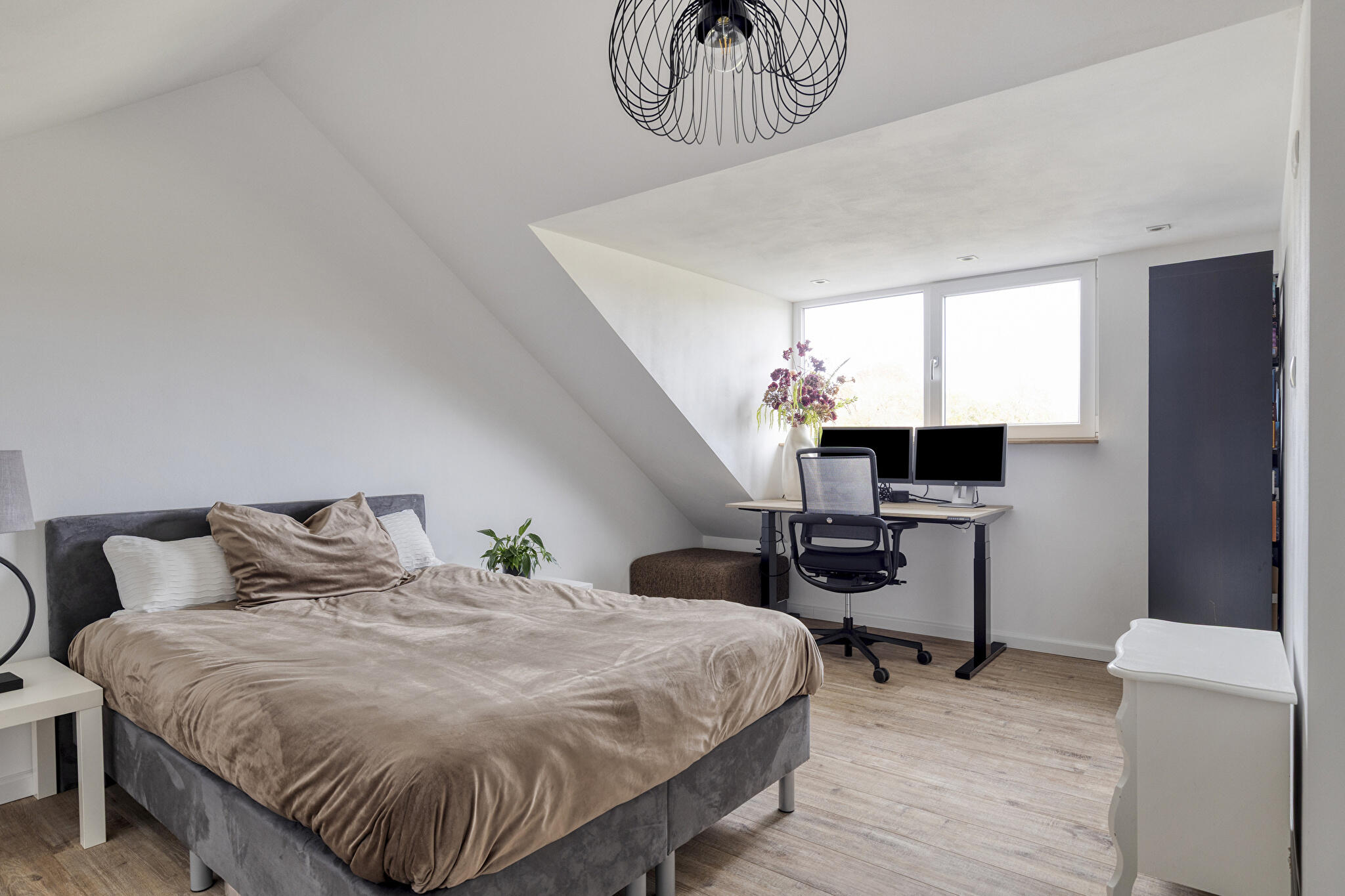 Eerste verdieping: overloop, totaal 3 ruime slaapkamers, moderne badkamer voorzien van douche, wastafel met inloopdouche en tweede wandcloset.
