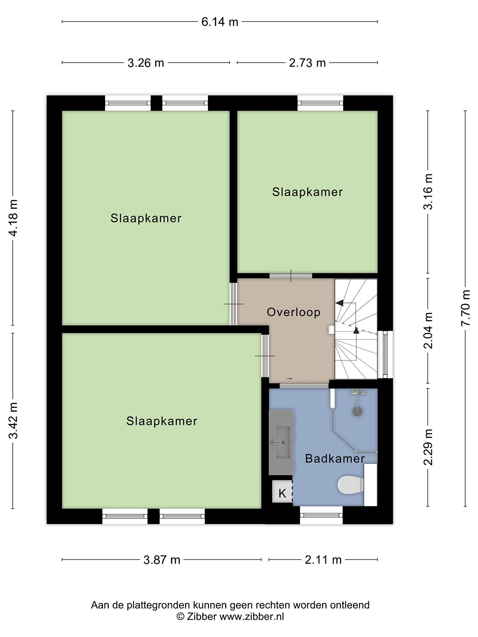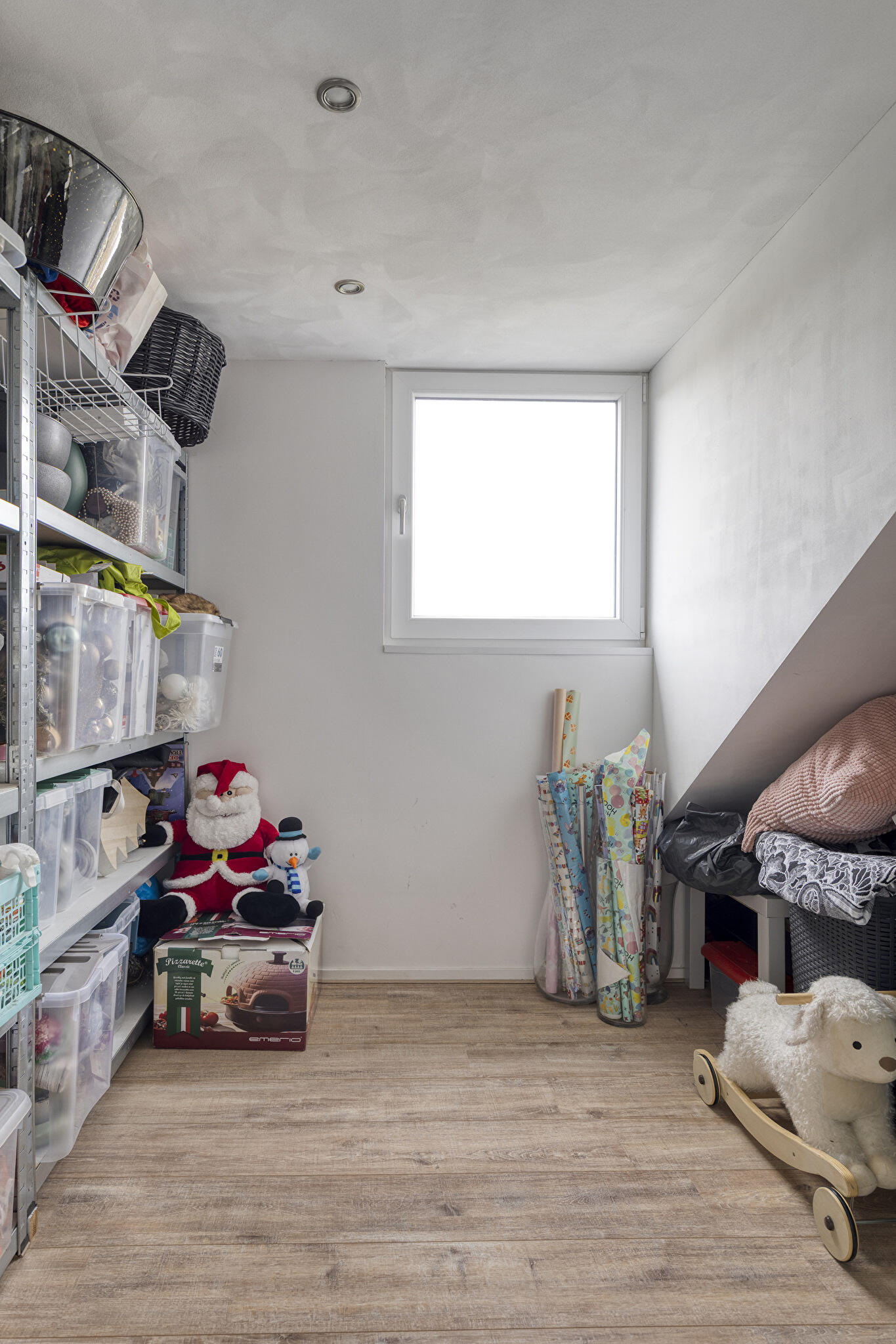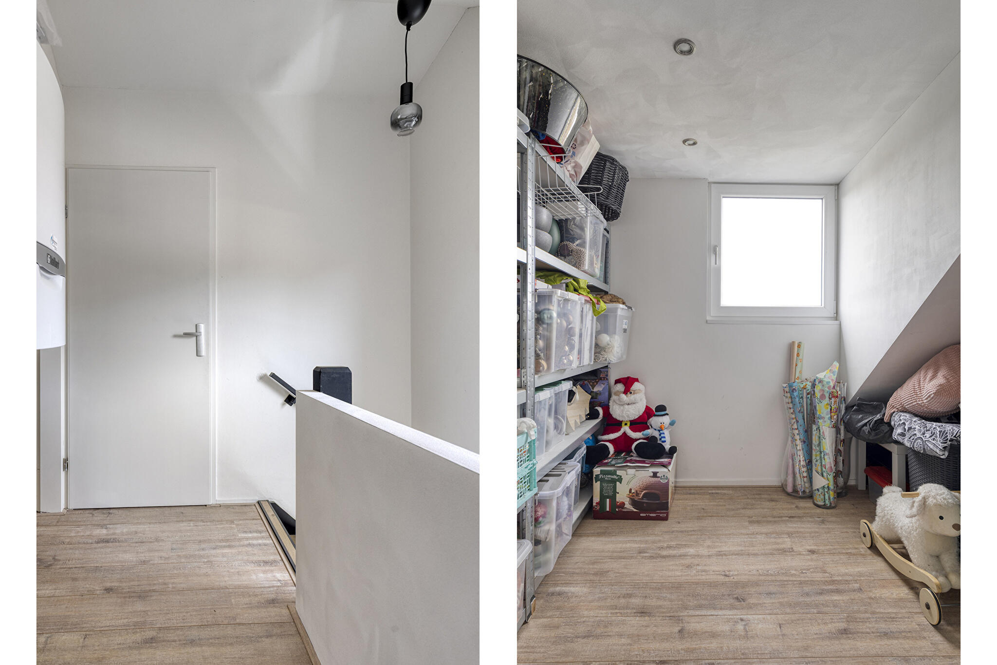 Tweede verdieping: via een vaste trap bereikbaar, overloop met toegang tot twee slaapkamers, of te gebruiken als een praktische werk- of hobbyruimte. De dakkapel zorgt voor extra licht en ruimte en extra bergruimte achter de knieschotten.
