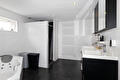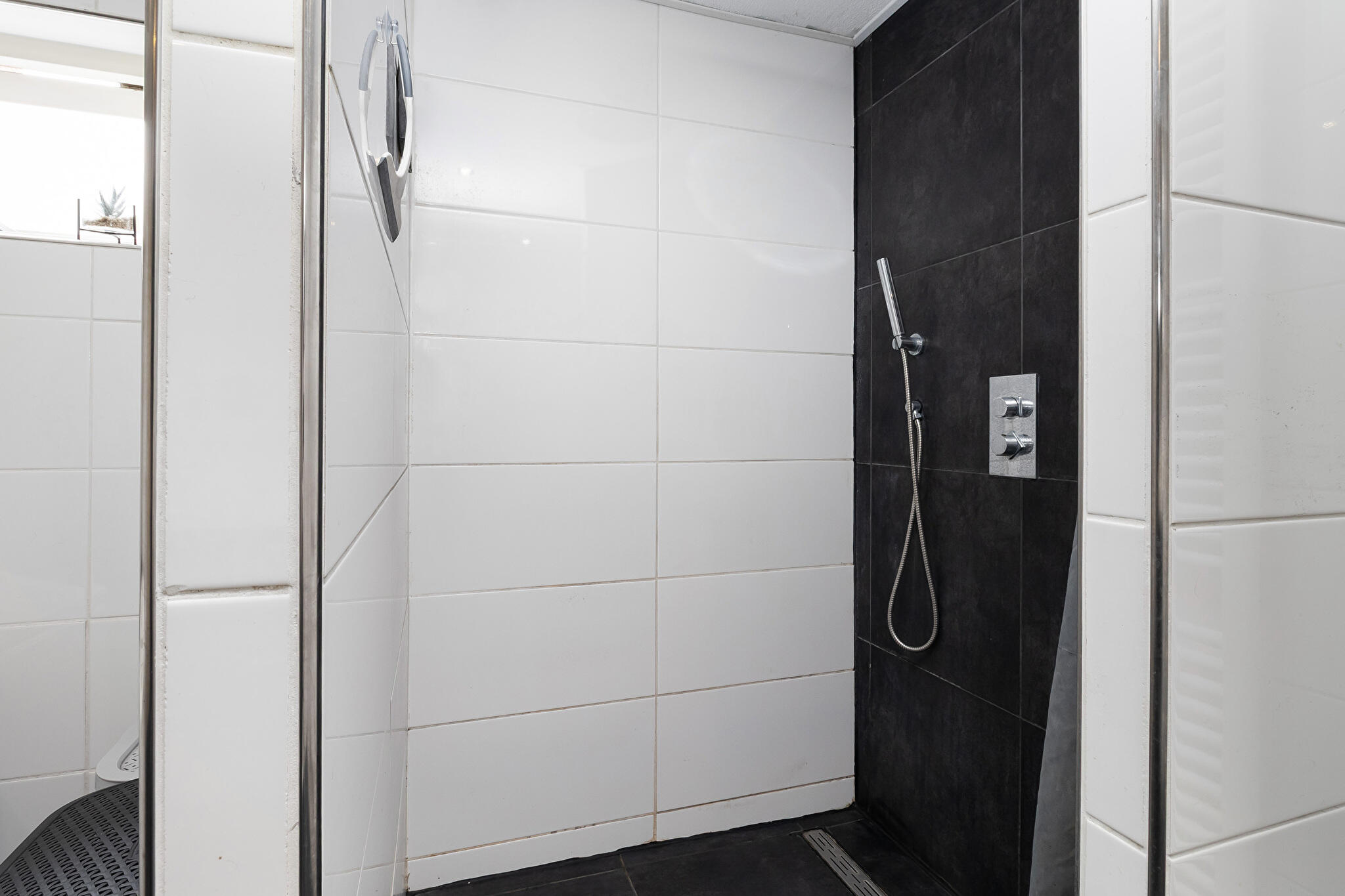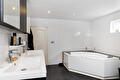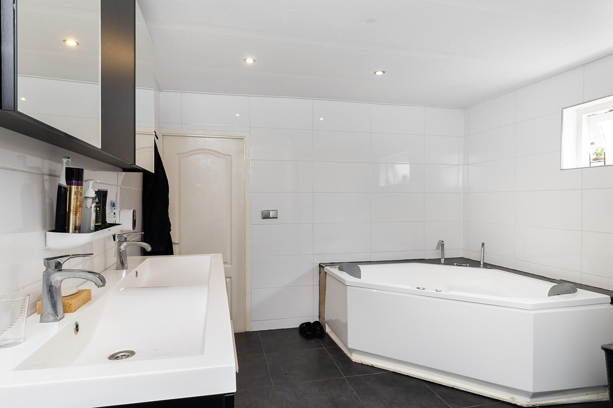 - bijzonder ruime en moderne badkamer met o.a. een inloopdouche, een royaal ligbad met whirlpool, een wastafelmeubel met dubbele wastafel en en handdoekenradiator;