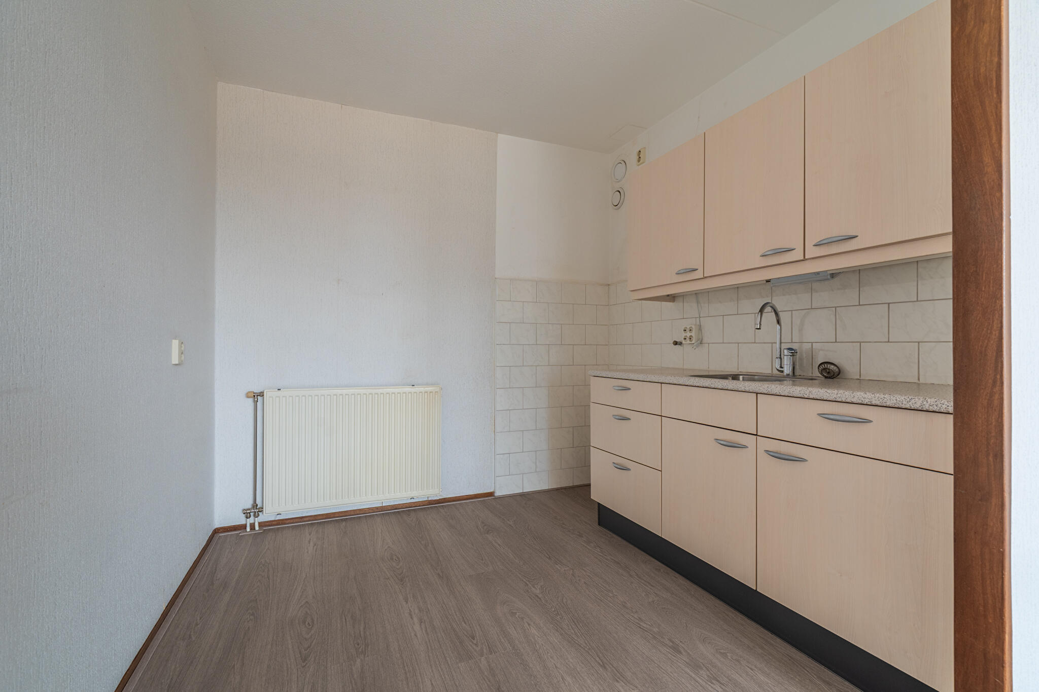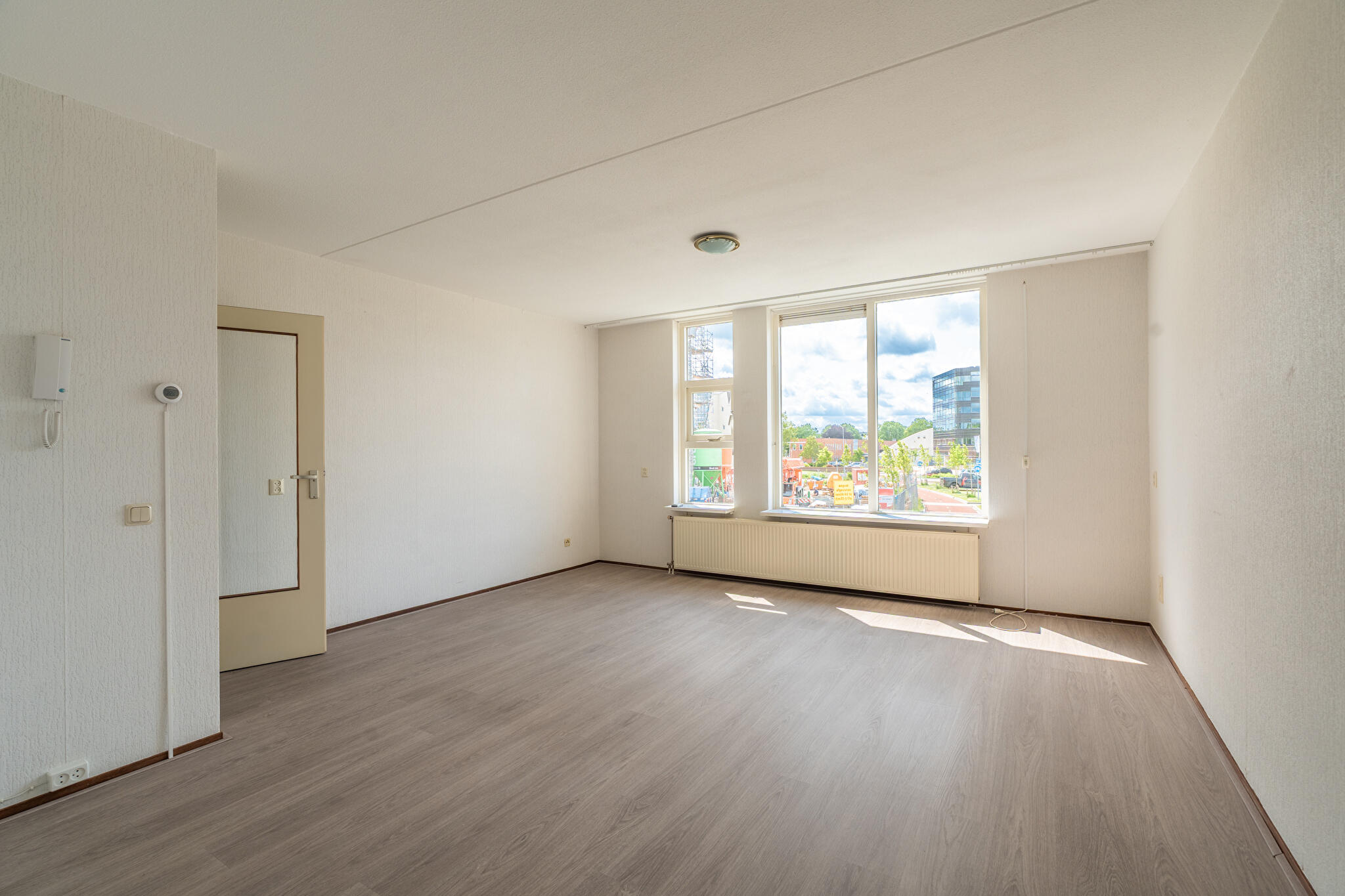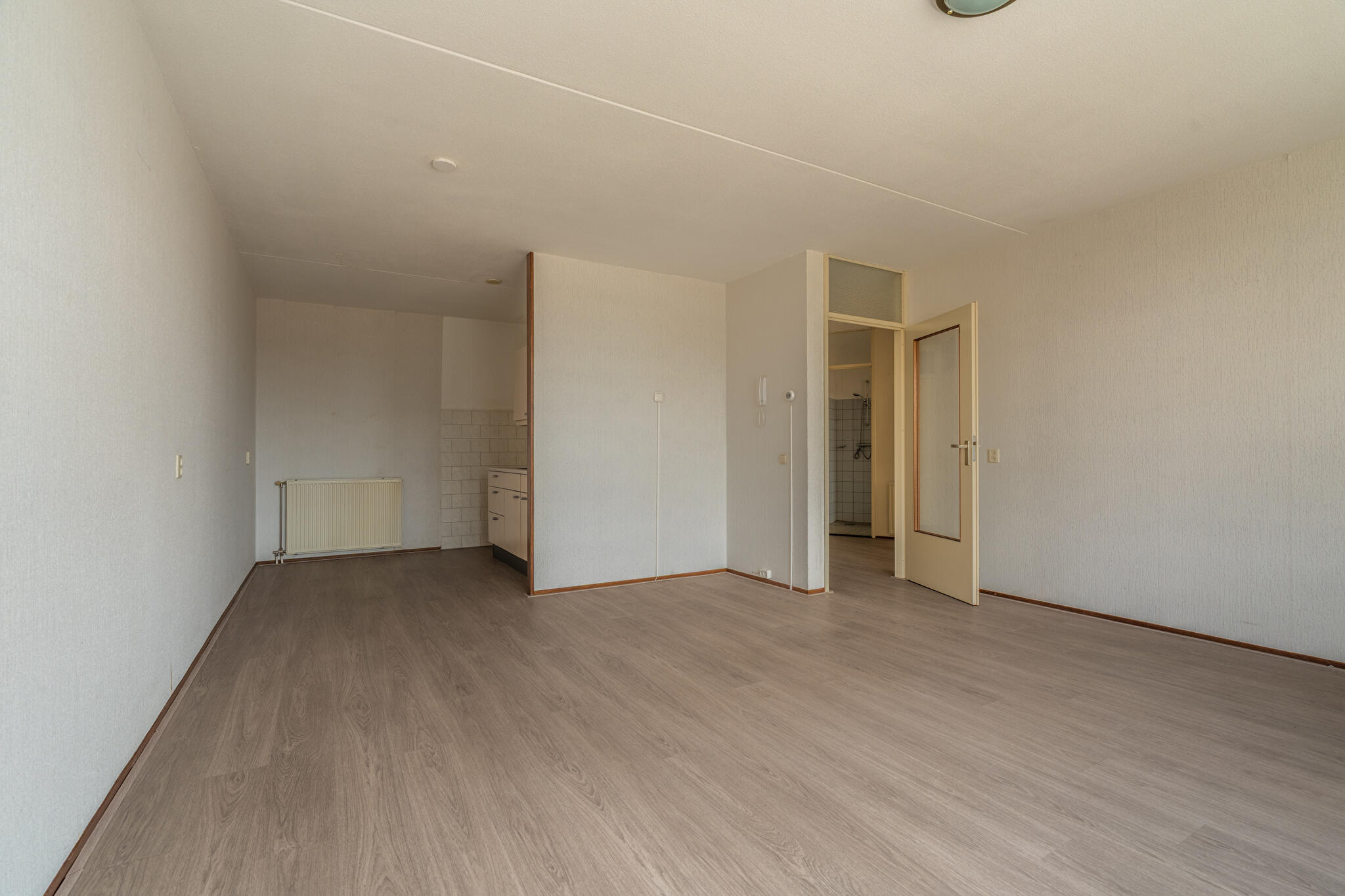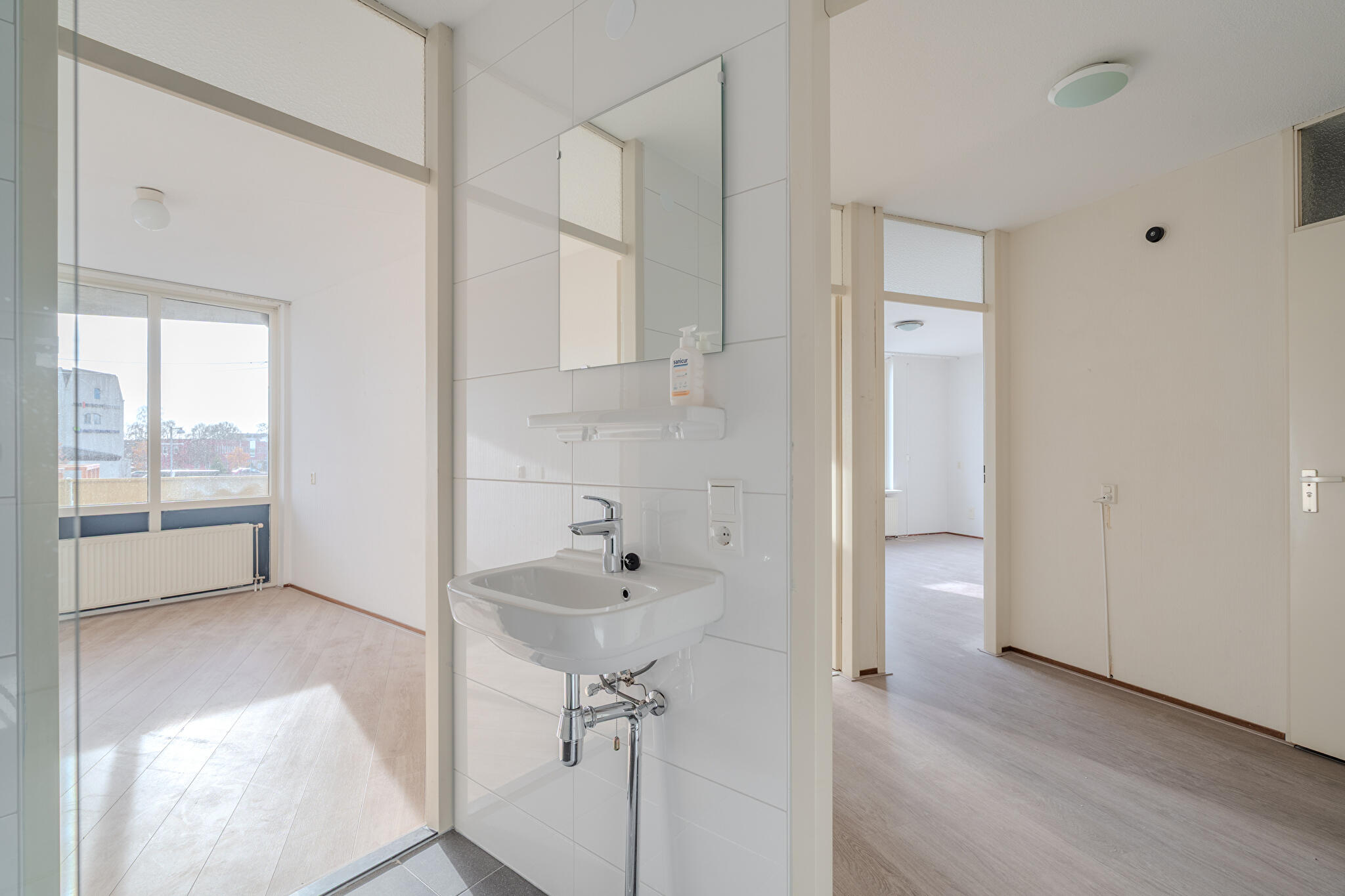 Indeling appartement: entree/hal, apart toilet, bijkeuken/berging, royale en lichte woonkamer met open keuken, badkamer met douche, wastafel en aansluiting voor de wasmachine, slaapkamer met aparte doorgang naar de badkamer en een tweede slaapkamer met doorgang naar het balkon. Het appartement is voorzien van een laminaatvloer.