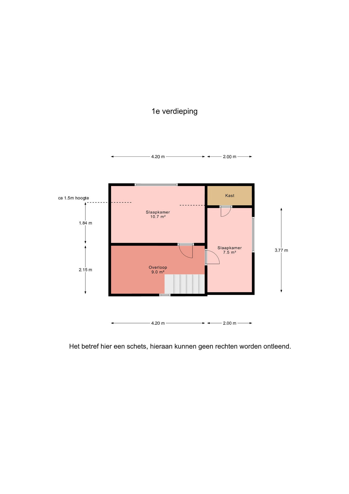 Verdieping: overloop, totaal twee slaapkamers, waarvan één voorzien van vaste kast en een dakkapel aan de voorzijde.