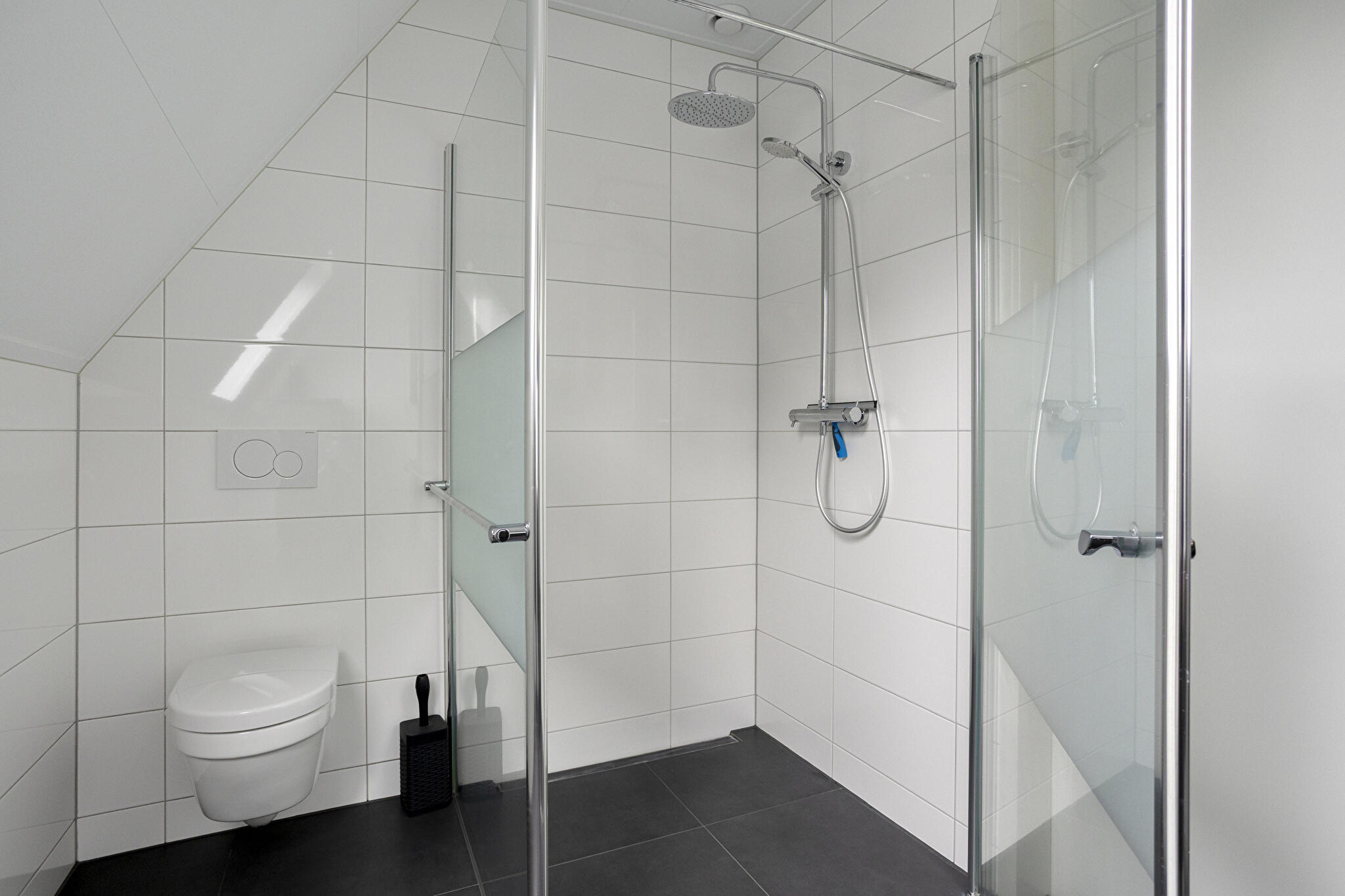 Eerste verdieping: overloop, totaal 4 slaapkamers waarvan 1 met inloopkast, berging, leuke badkamer voorzien van inloopdouche, wastafel en 2e toilet.