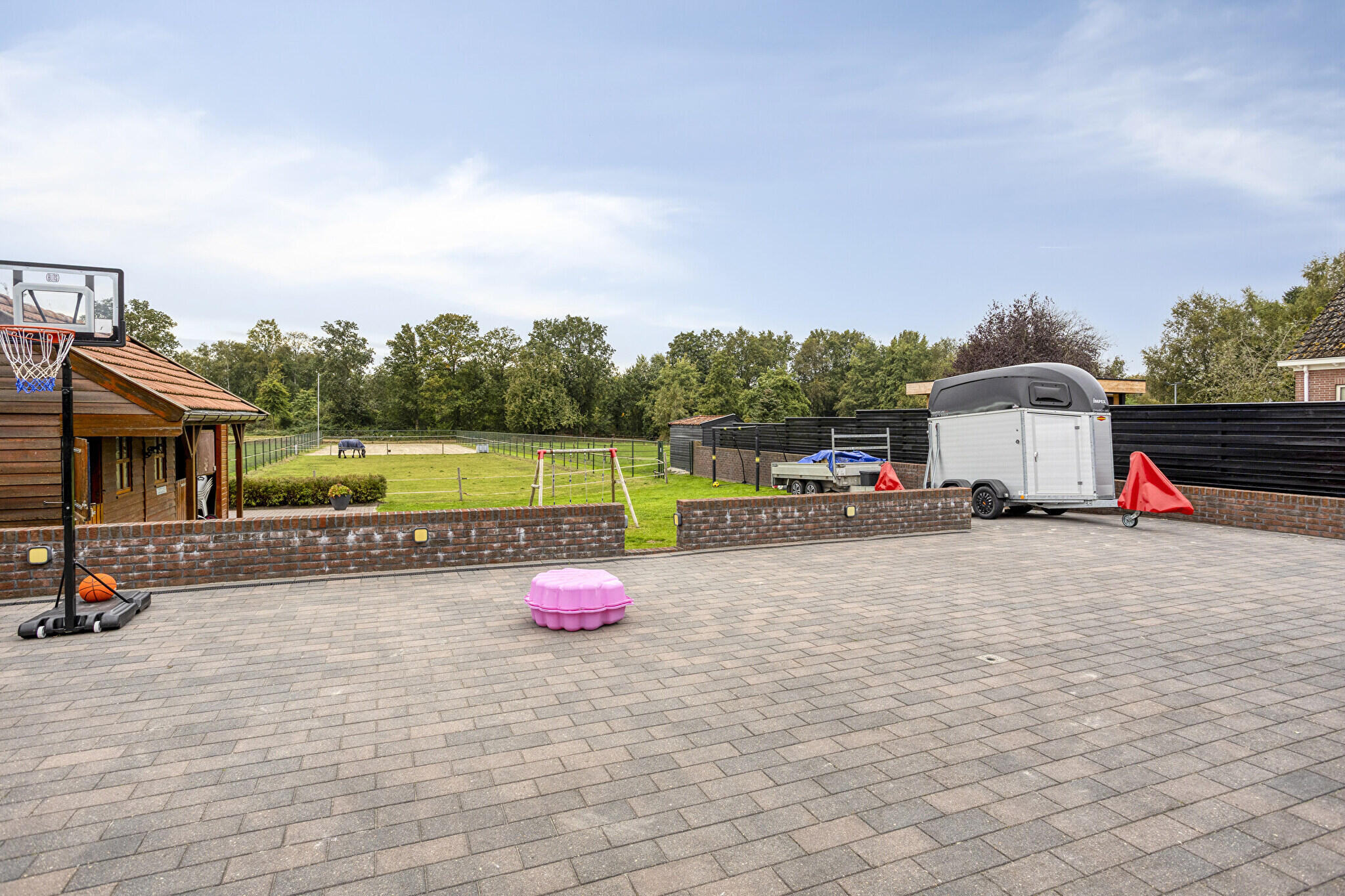 Het perceel beschikt over stallen, ideaal voor het houden van paarden of kleinvee. Daarnaast is er een rijbak met verlichting, zodat u direct van uw hobby kunt genieten.