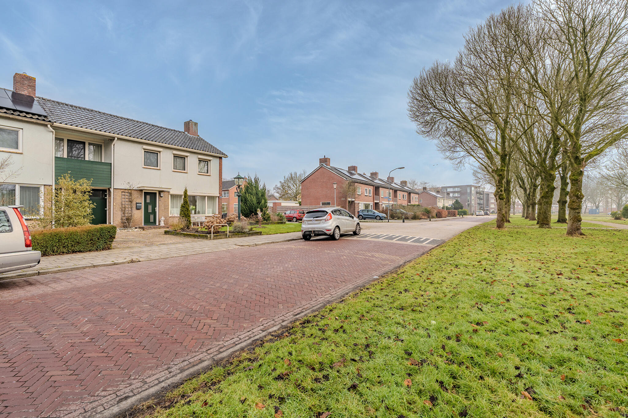 Aan park, aan rustige weg, in woonwijk, vrij uitzicht